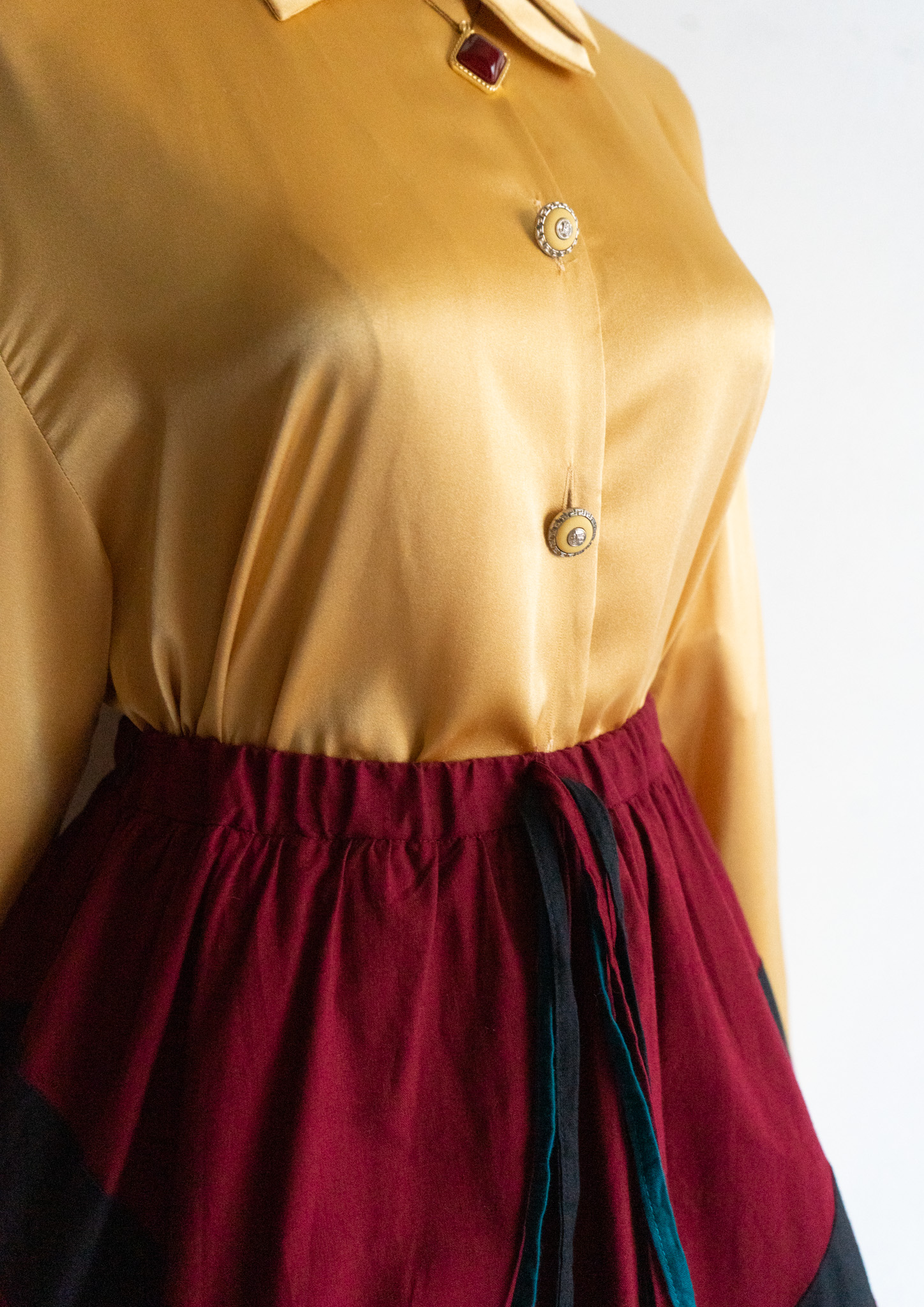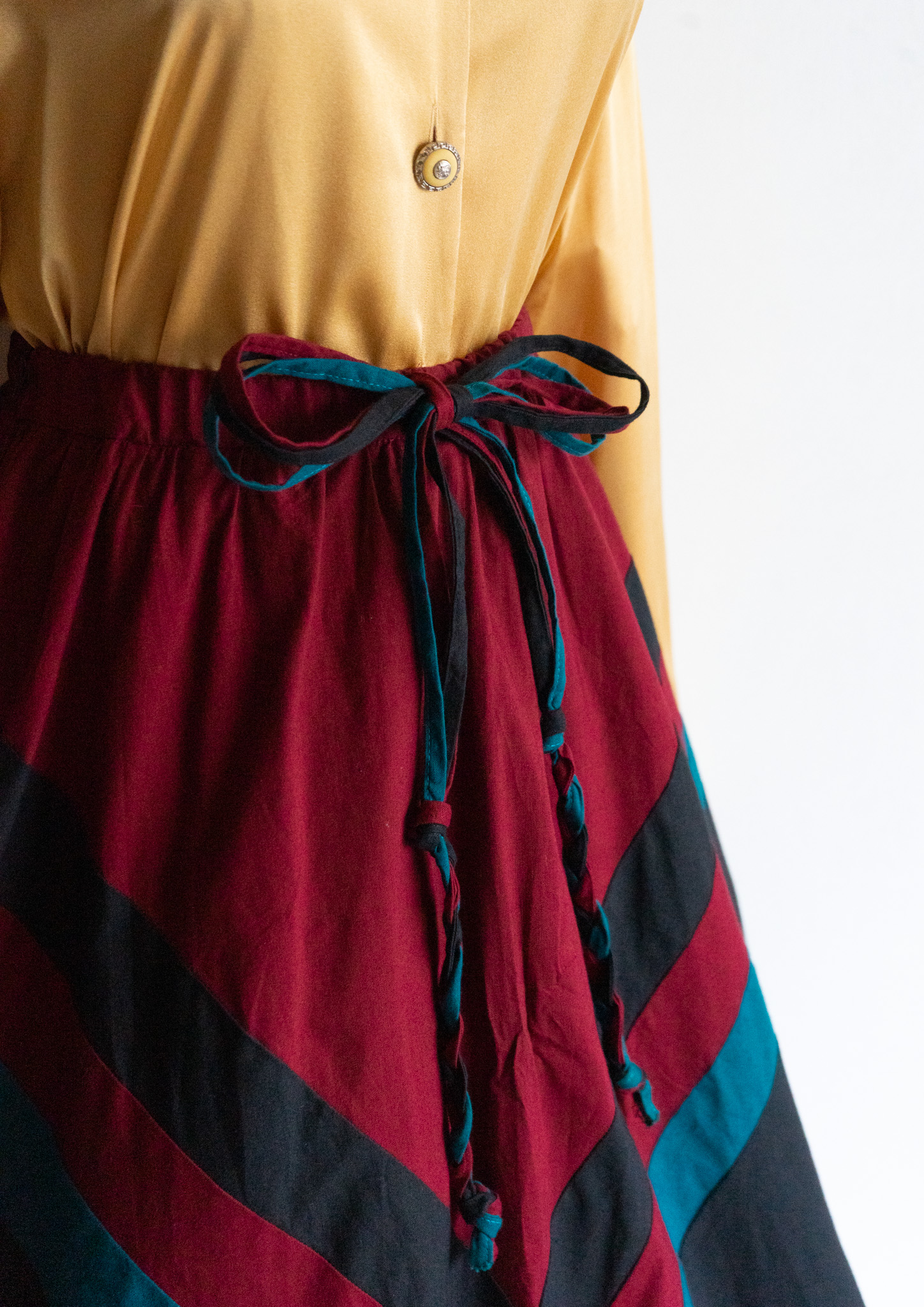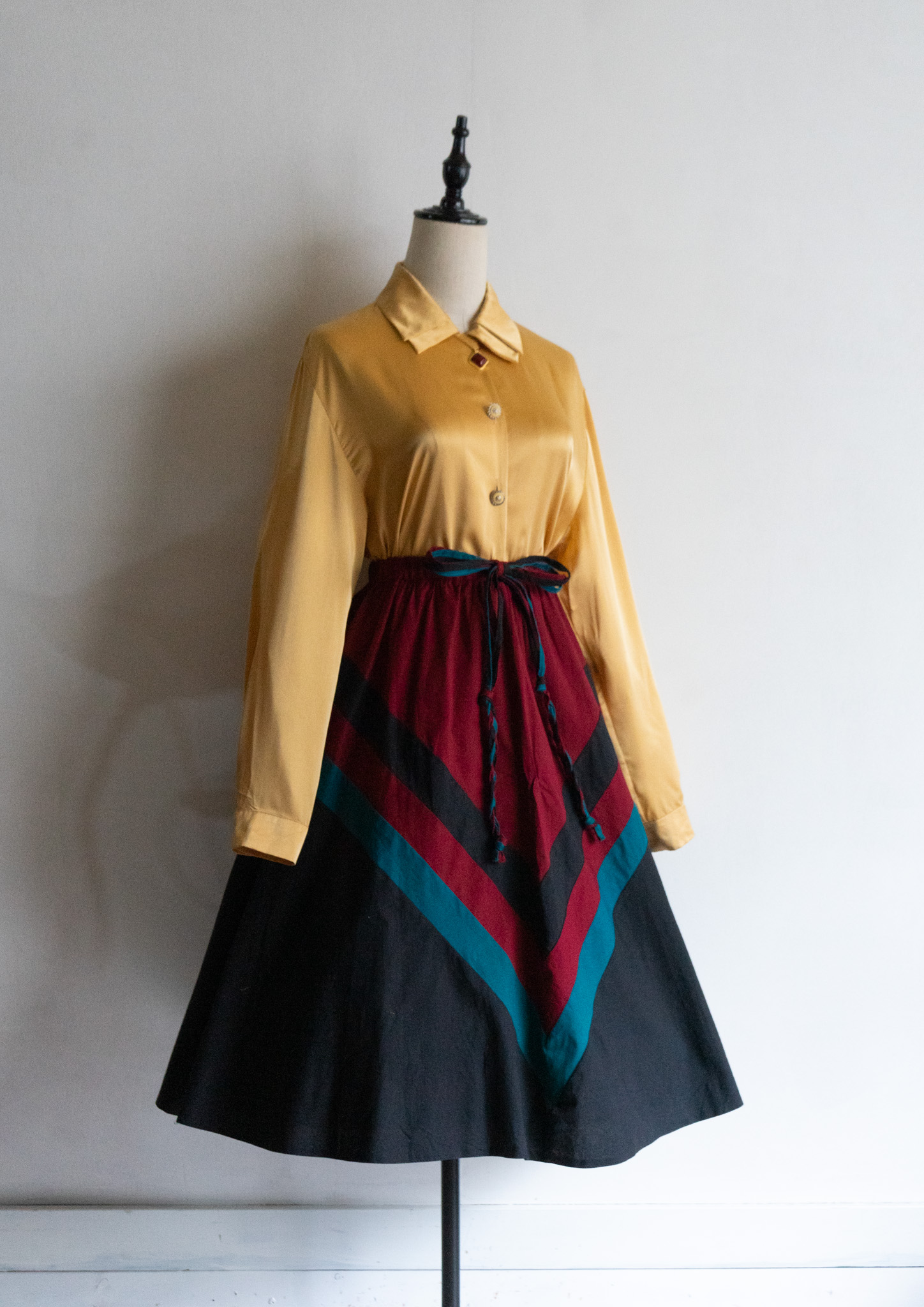 80's Bordeaux × Turquoise Art Pattern Skirt