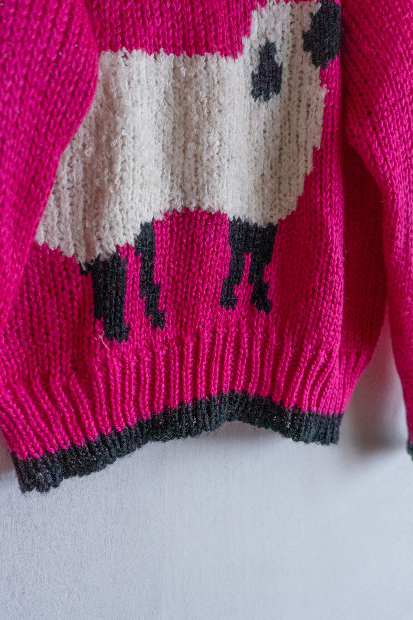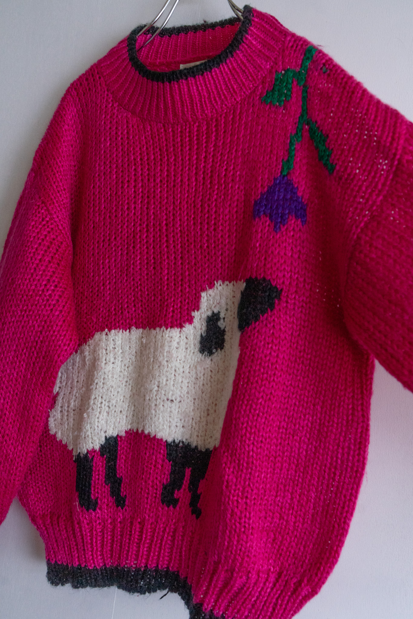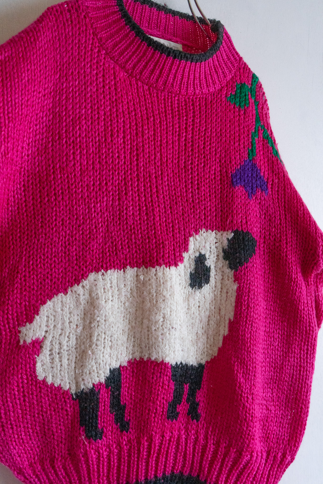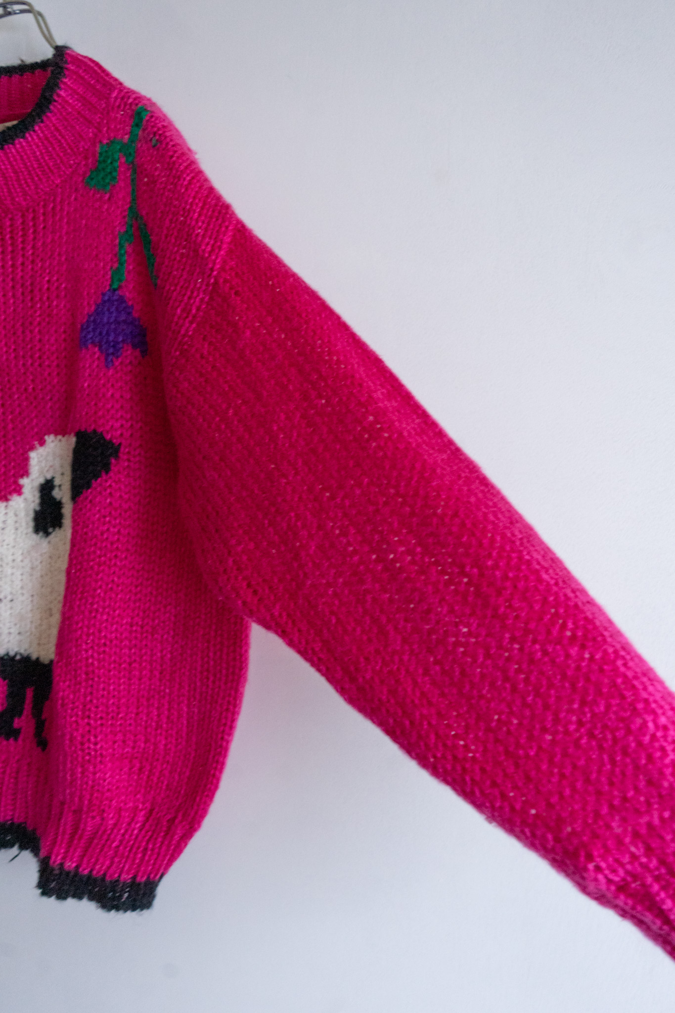 80's Sheep & Flower Pattern Vivid Pink Sweater
