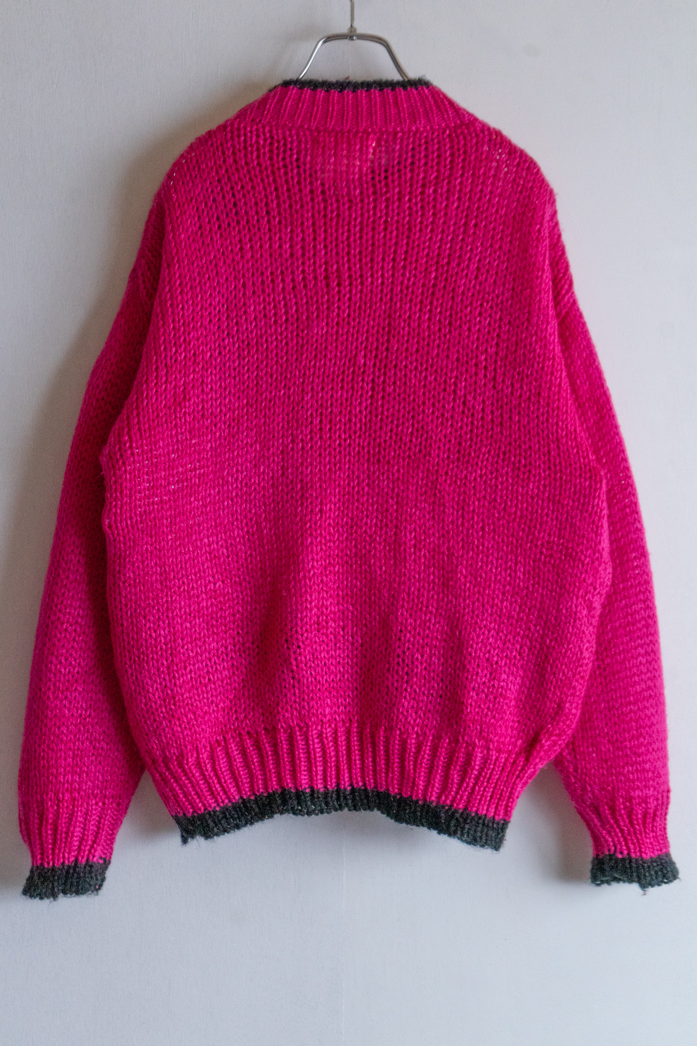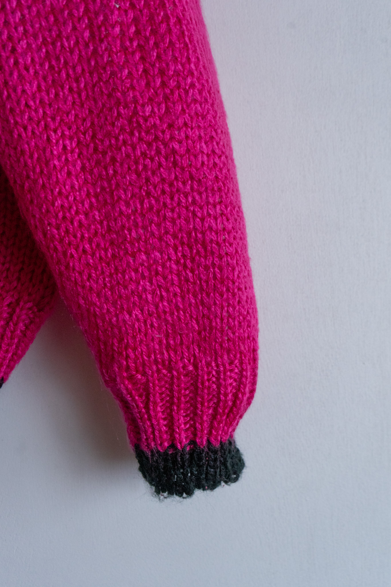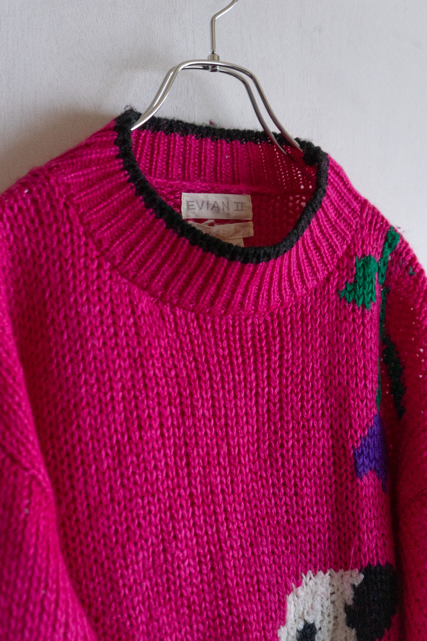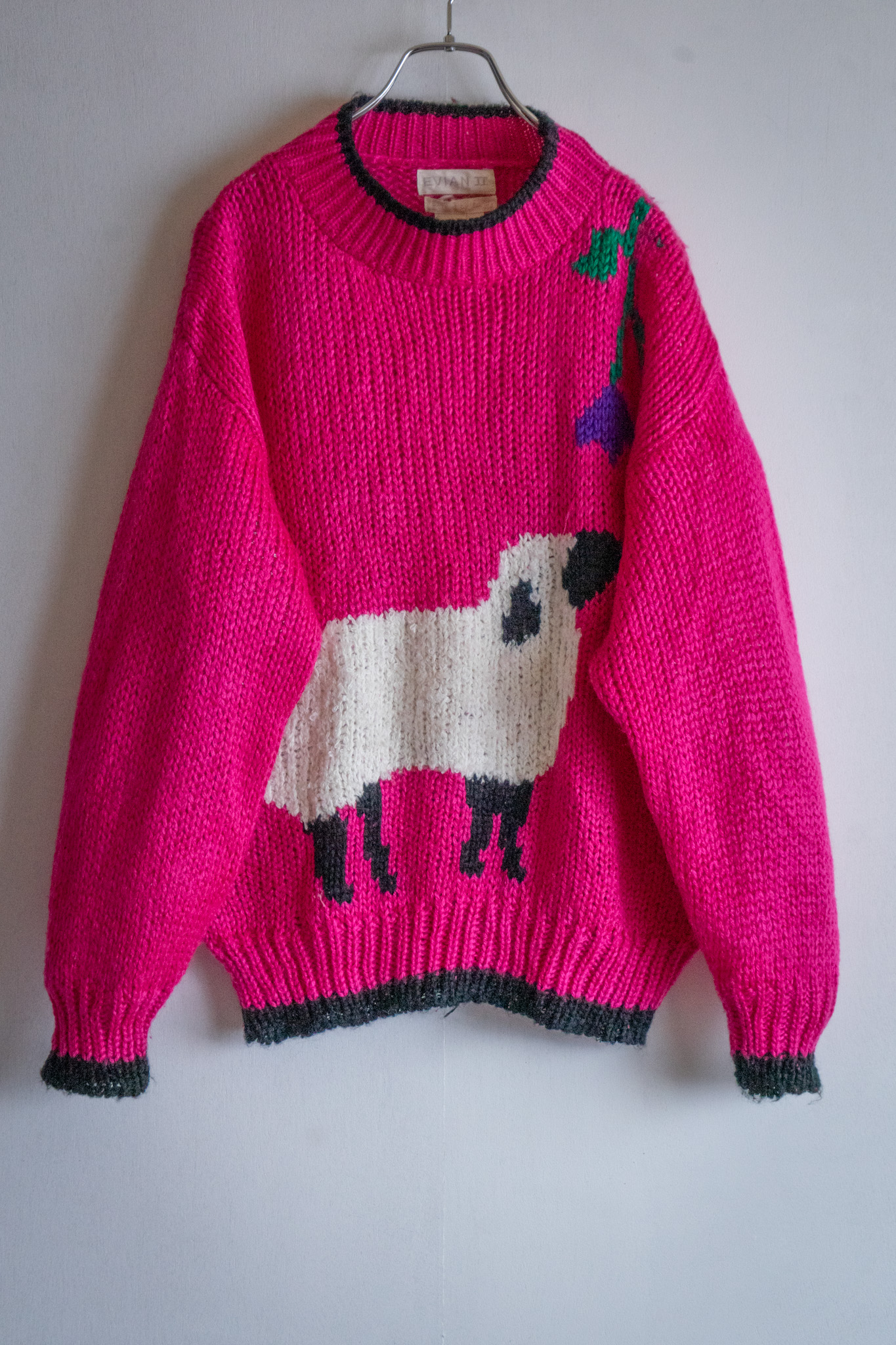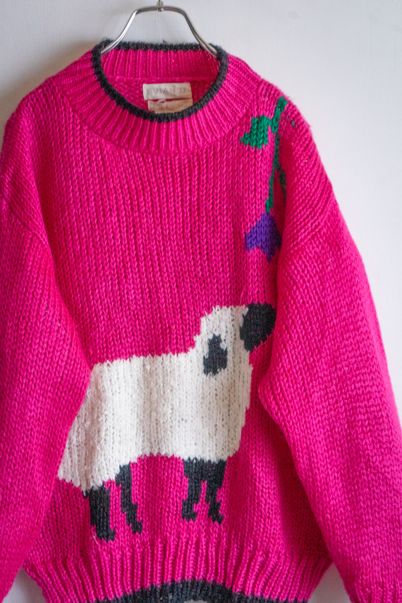 80's Sheep & Flower Pattern Vivid Pink Sweater