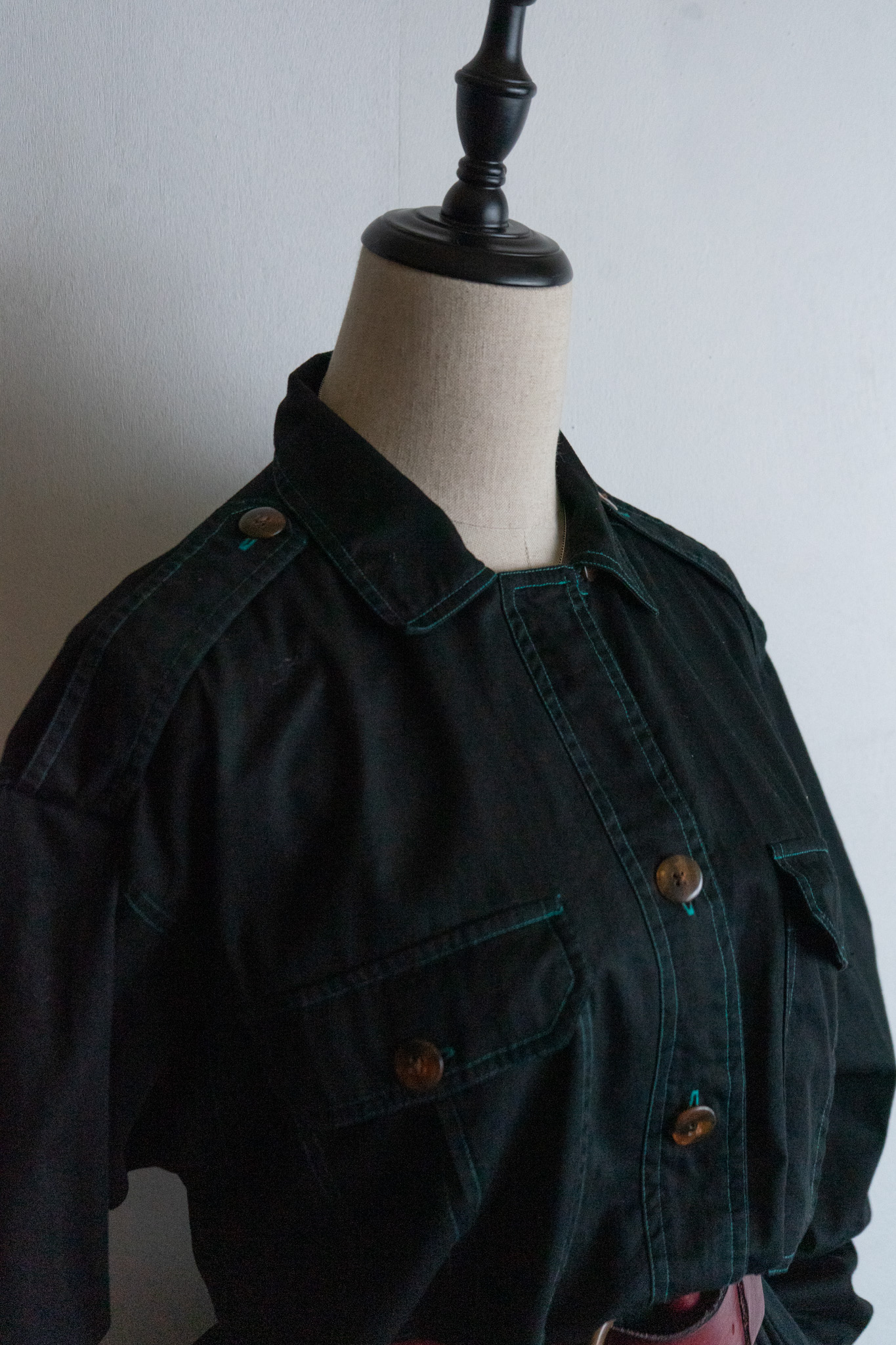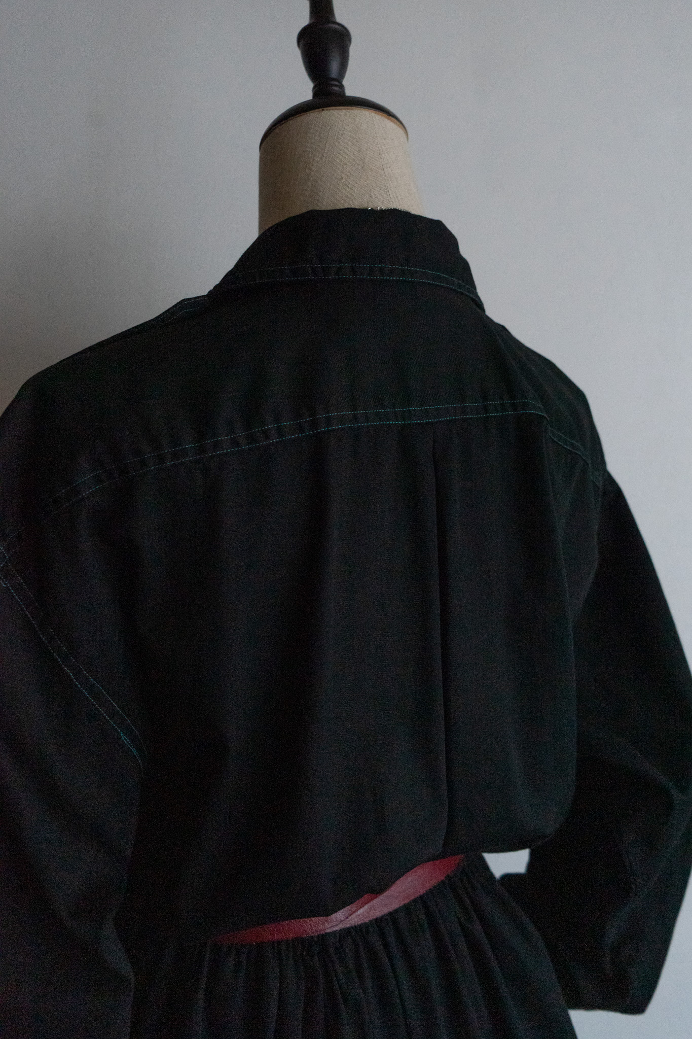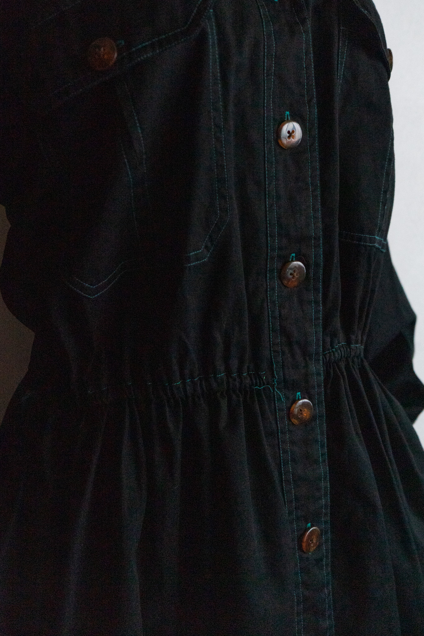 90's Turquoise Stitch Black Over dye Shirts Dress