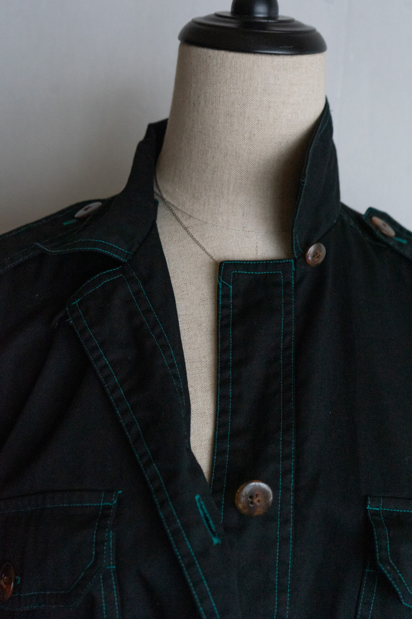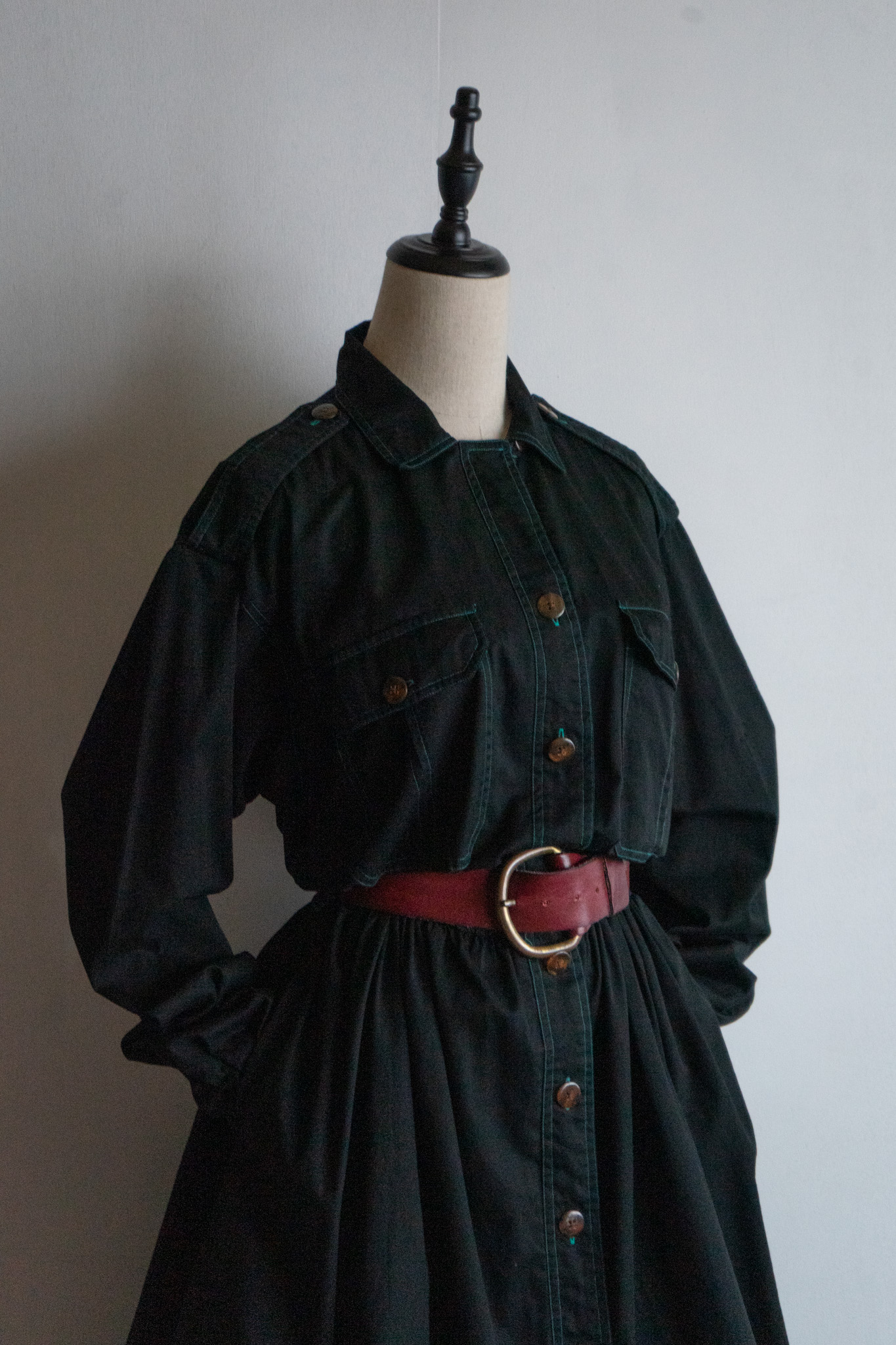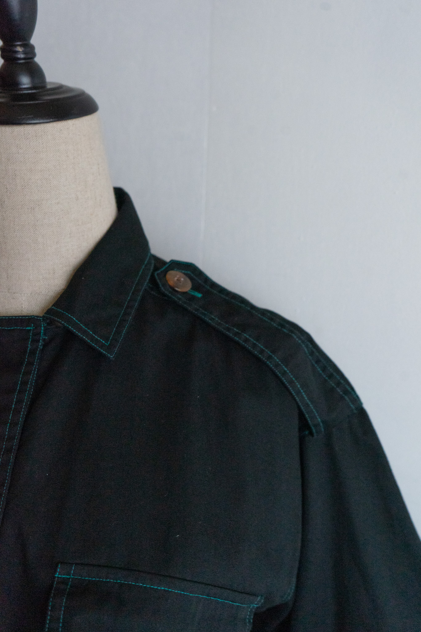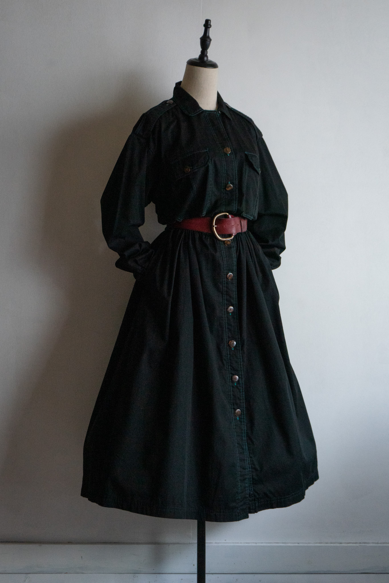 90's Turquoise Stitch Black Over dye Shirts Dress