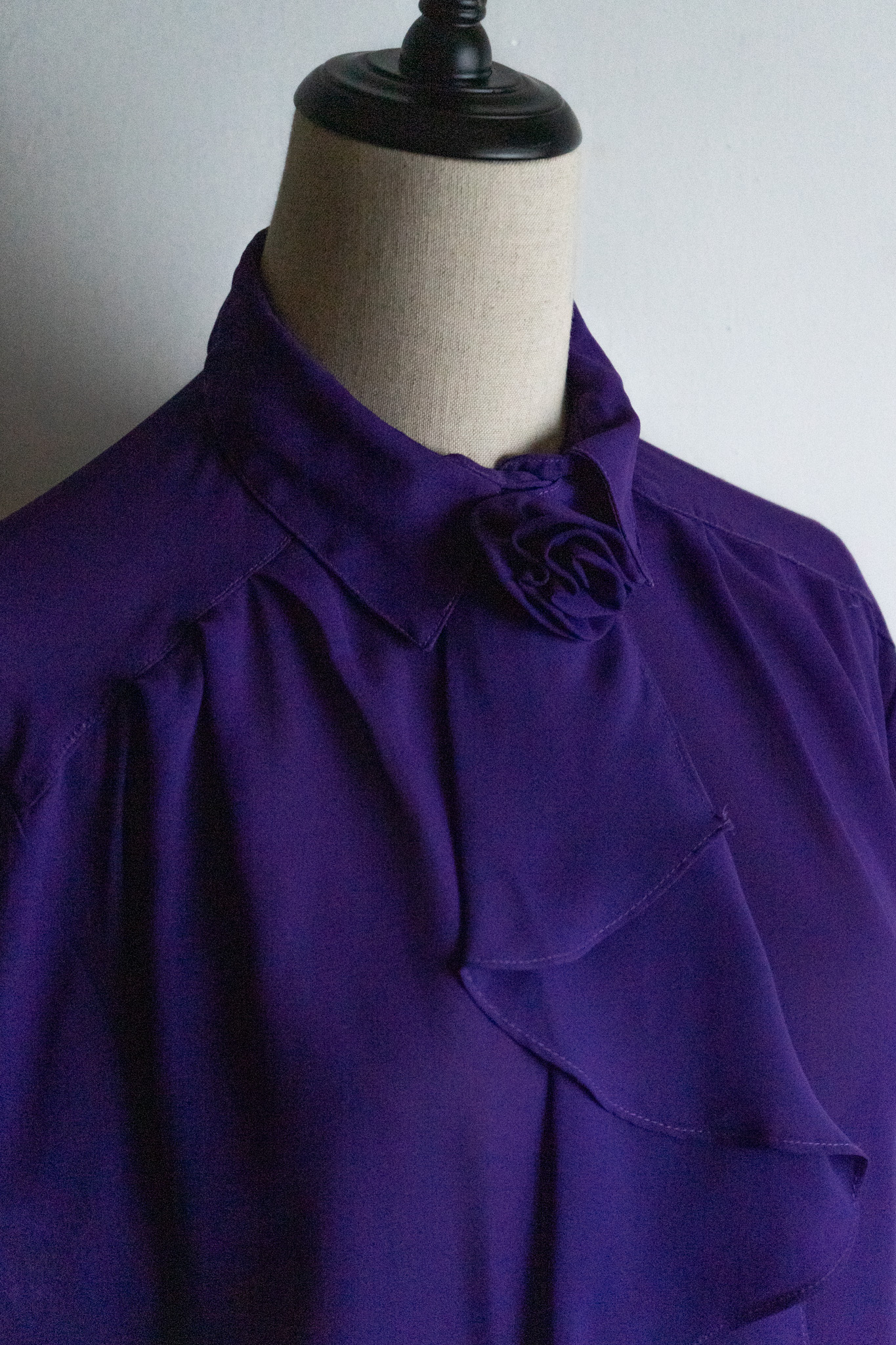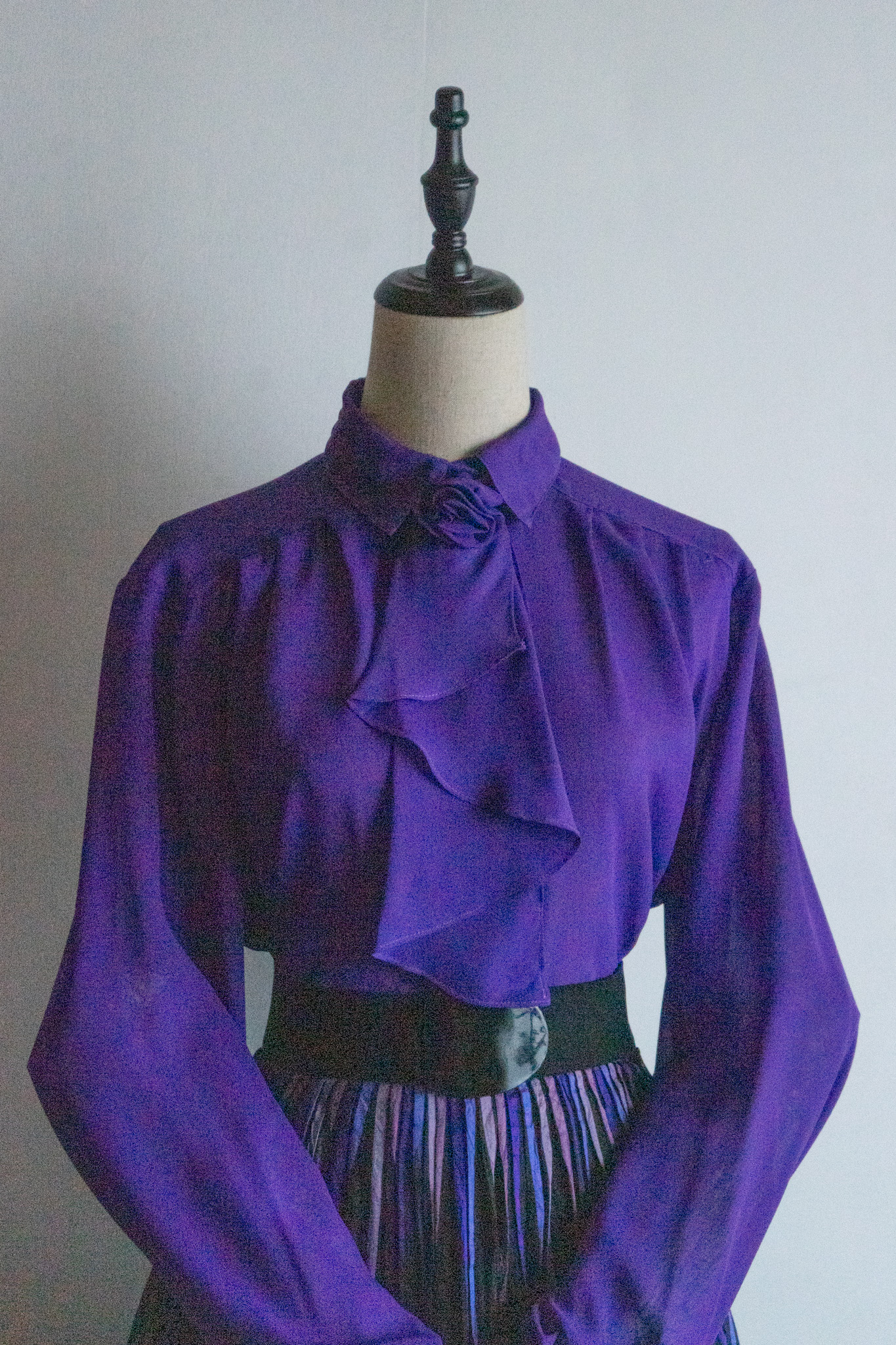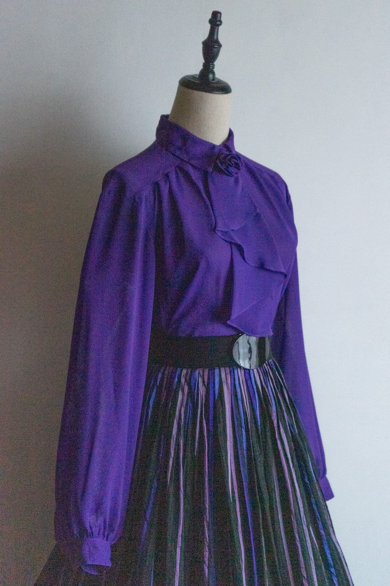 80~90's LESLIE FAY Peplum Design Colorful Botanical Pattern Blouse