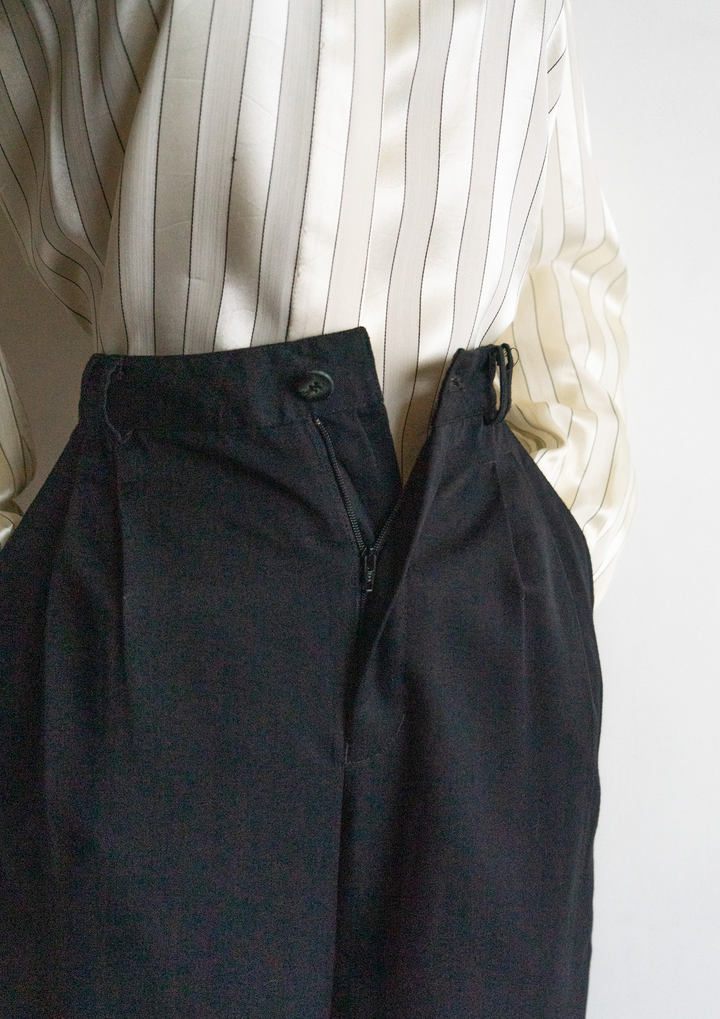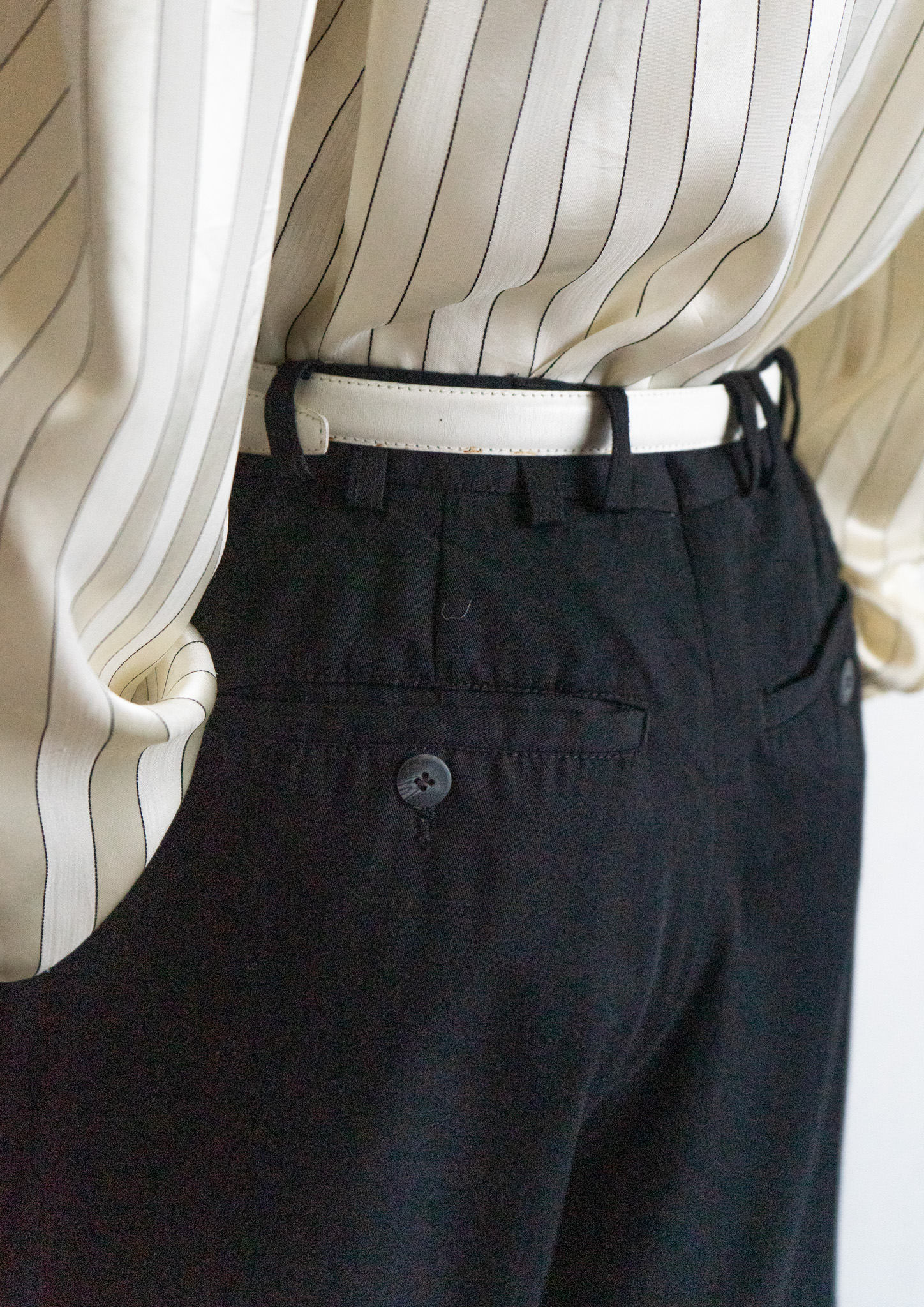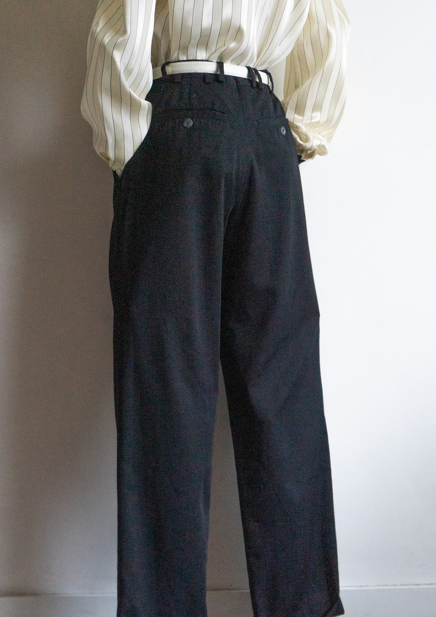 80~90's Euro White Stitch Design Black Over dye Tuck Pants