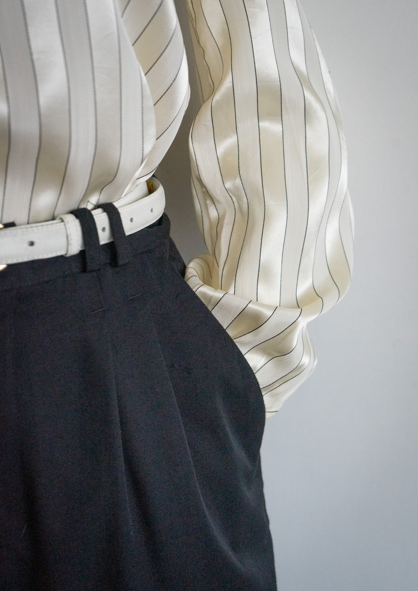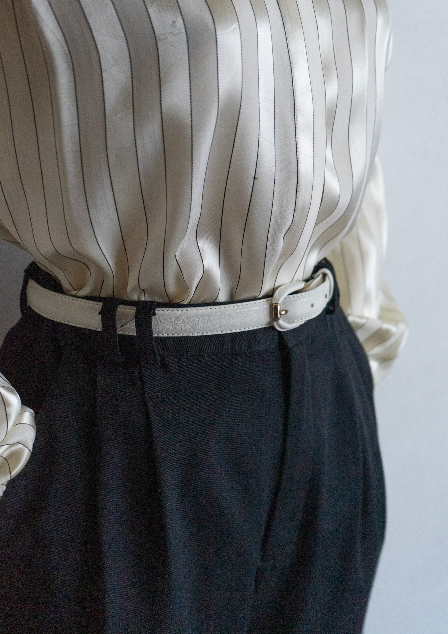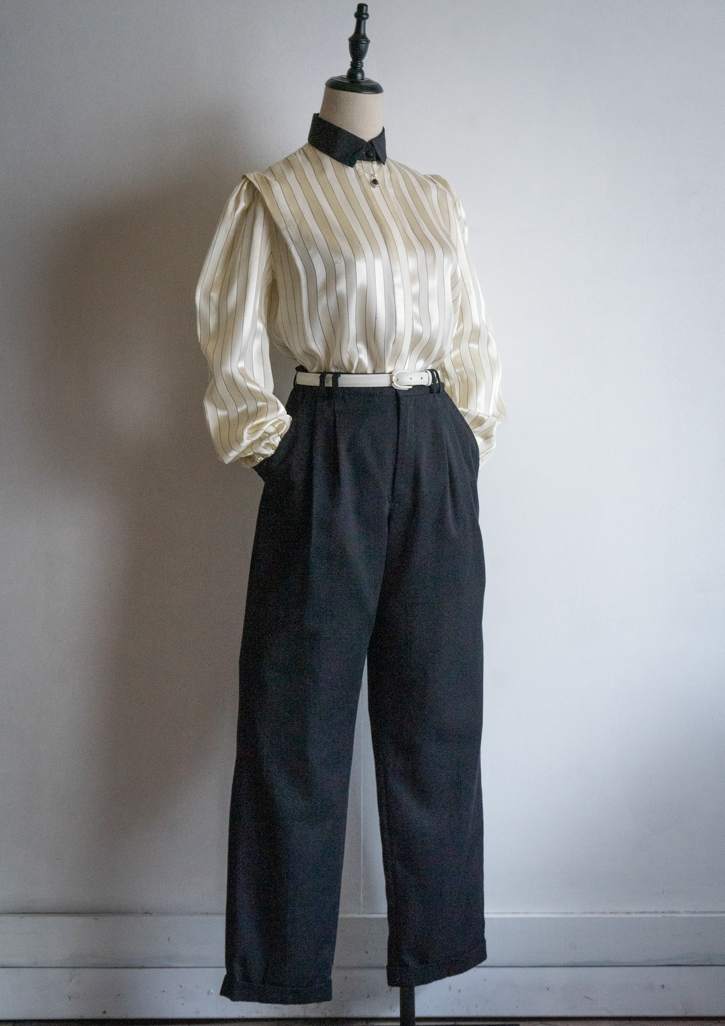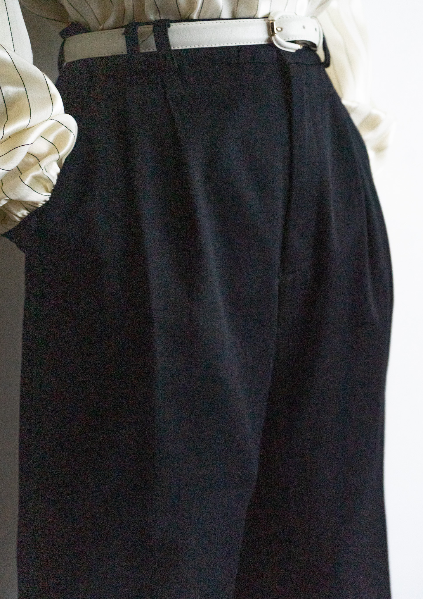 80~90's Euro White Stitch Design Black Over dye Tuck Pants
