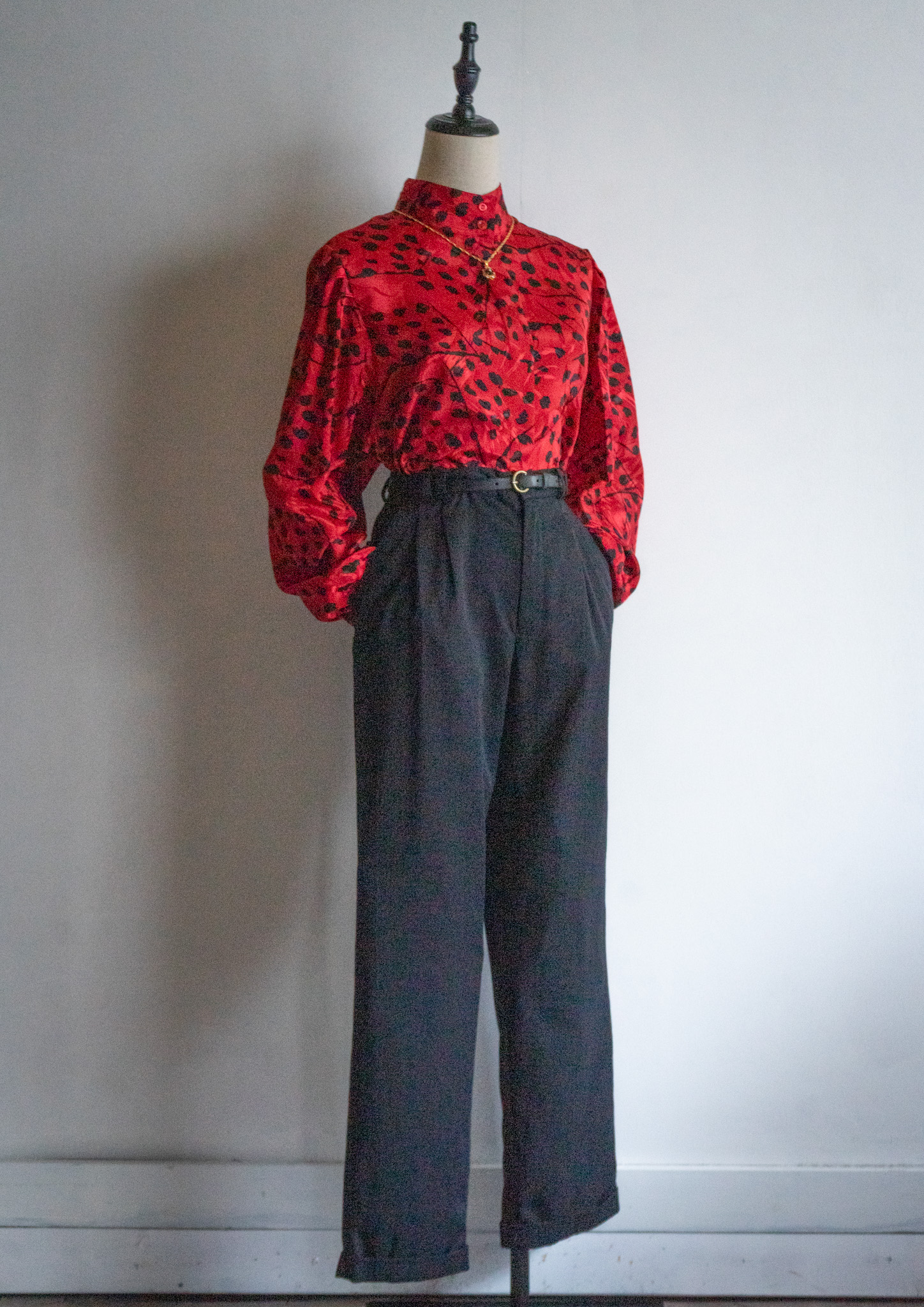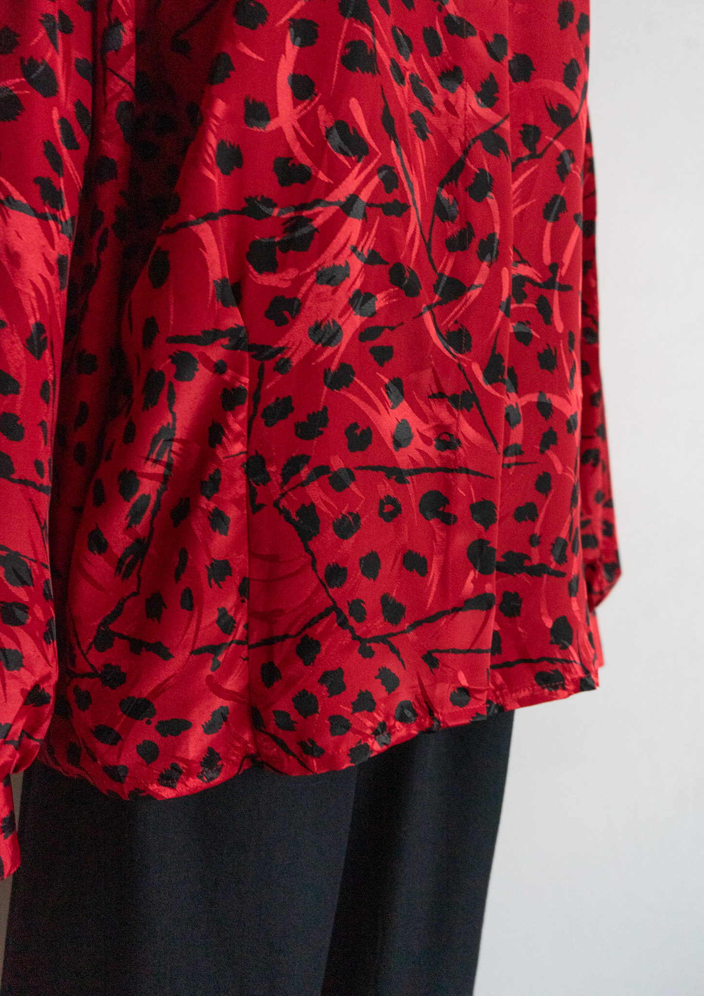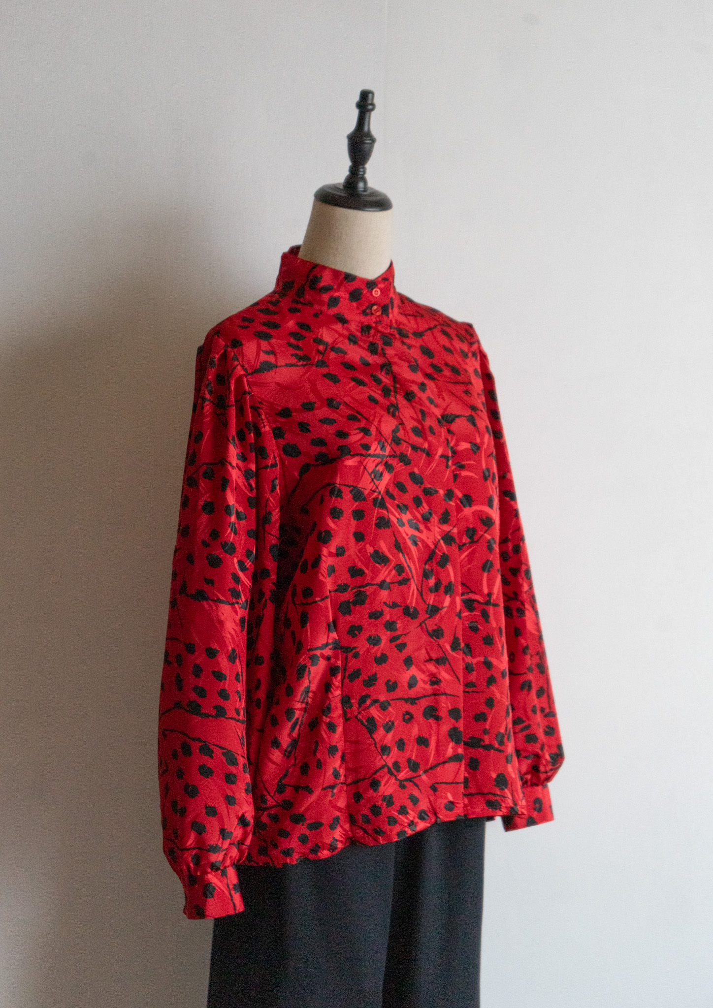 80~90's Euro C&A Black Art Pattern Glossy Red Blouse