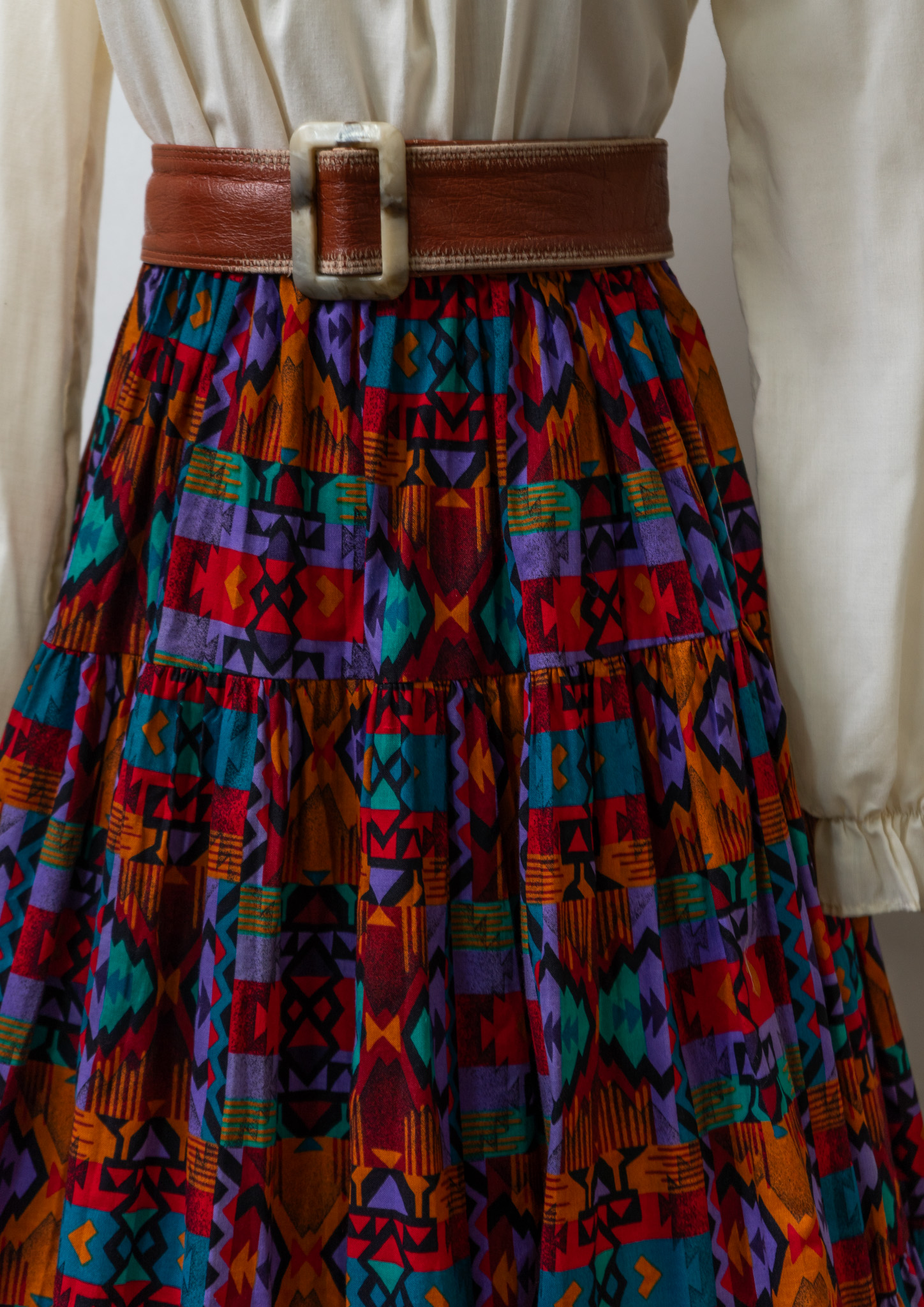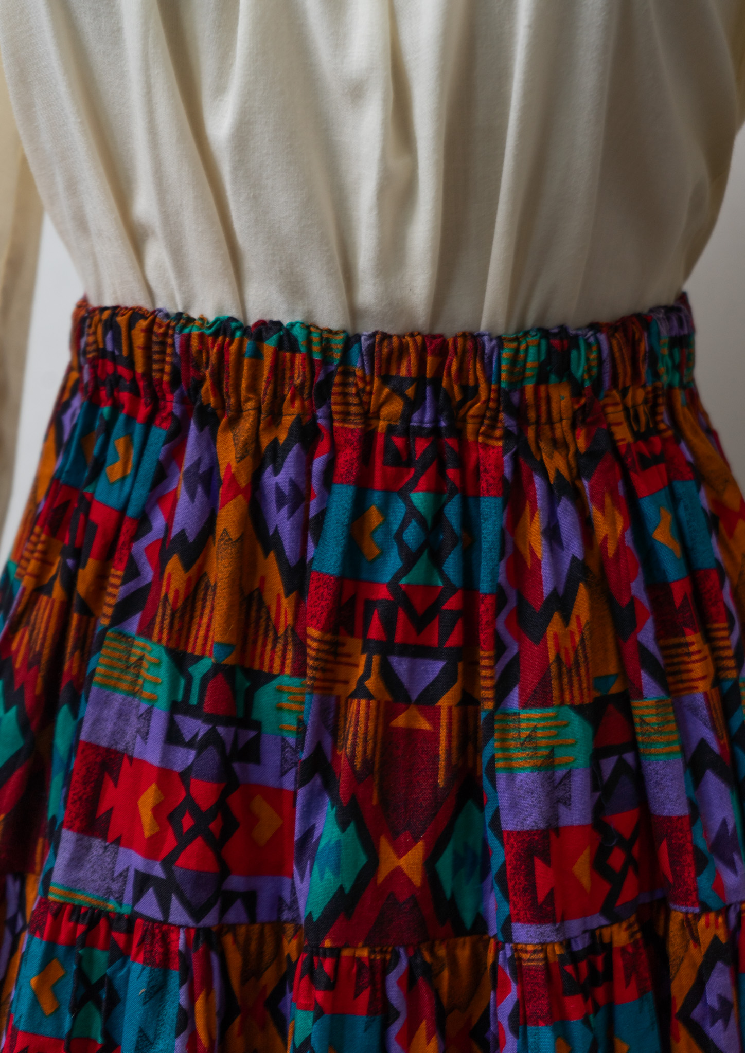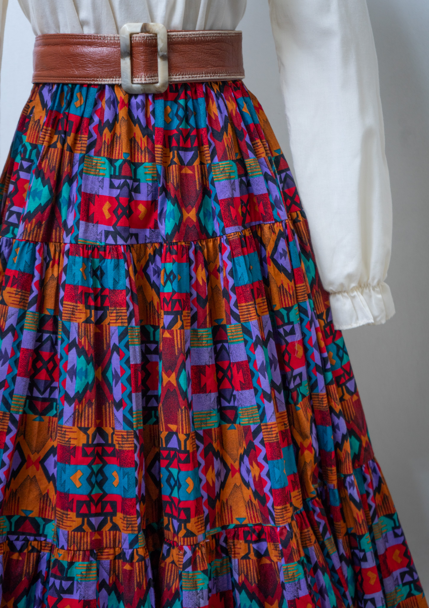 80's Dead Stock Colorful Native Pattern Tiered Skirt