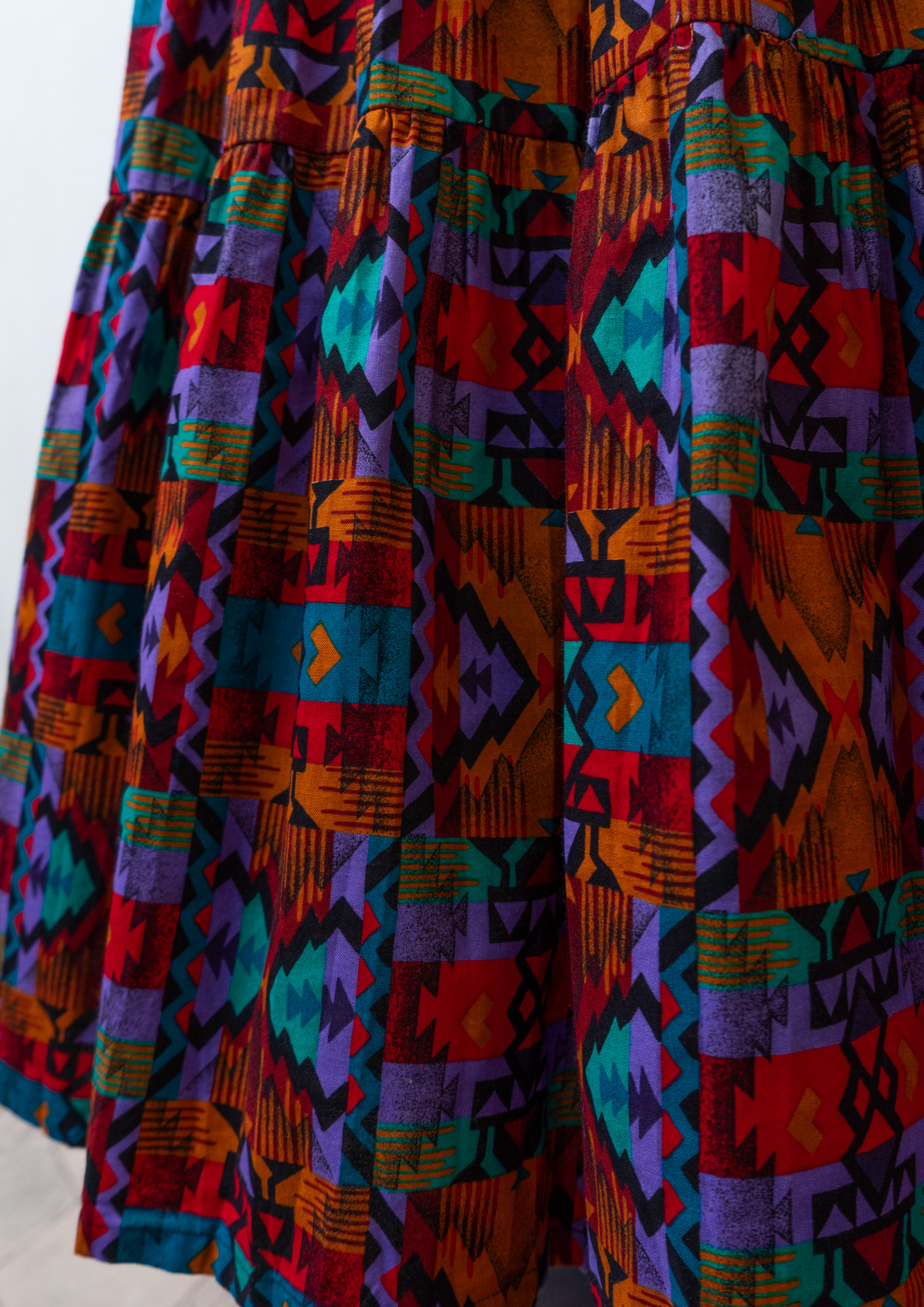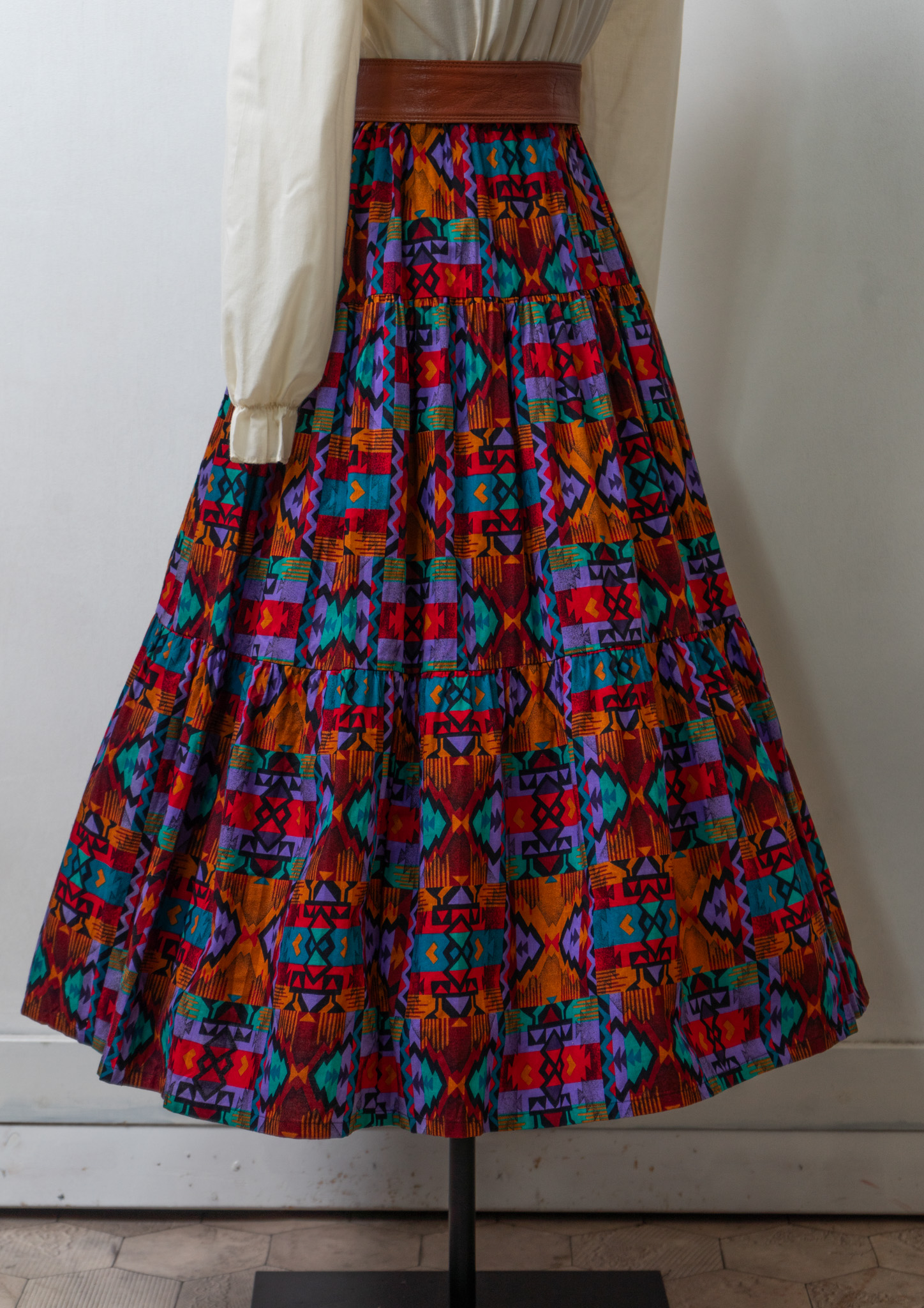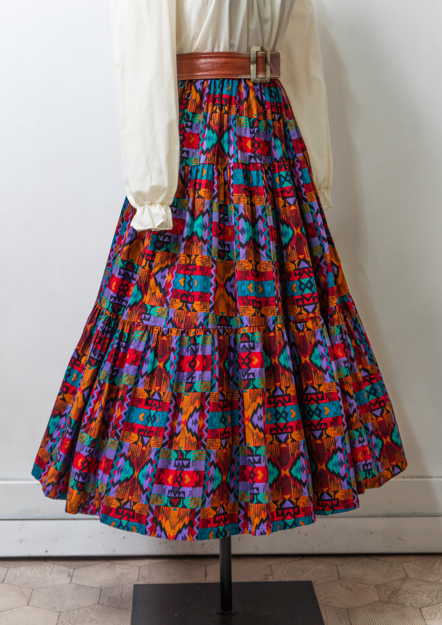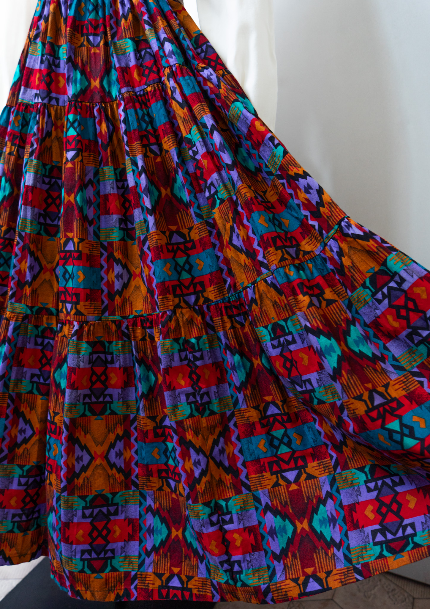 80's Dead Stock Colorful Native Pattern Tiered Skirt