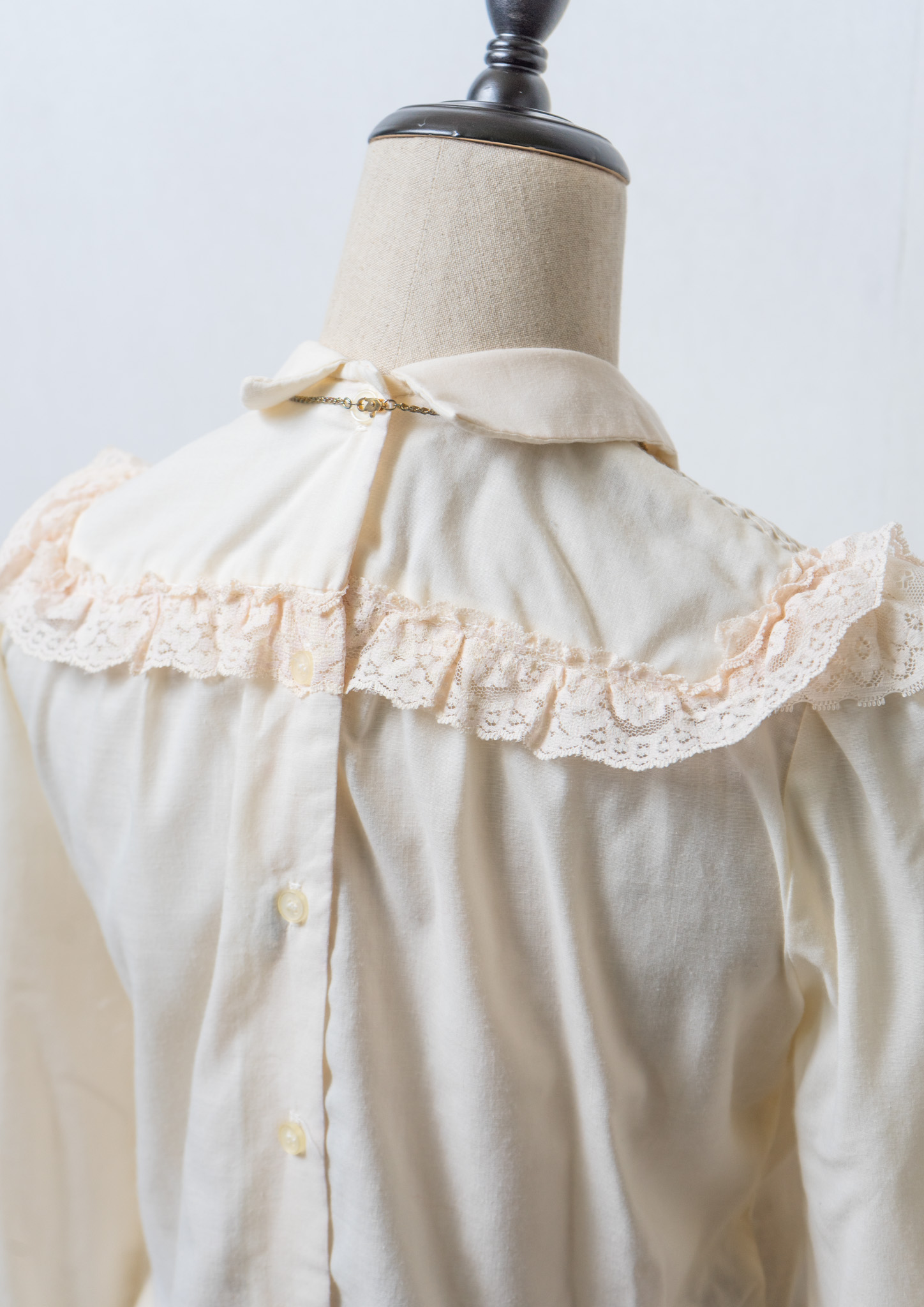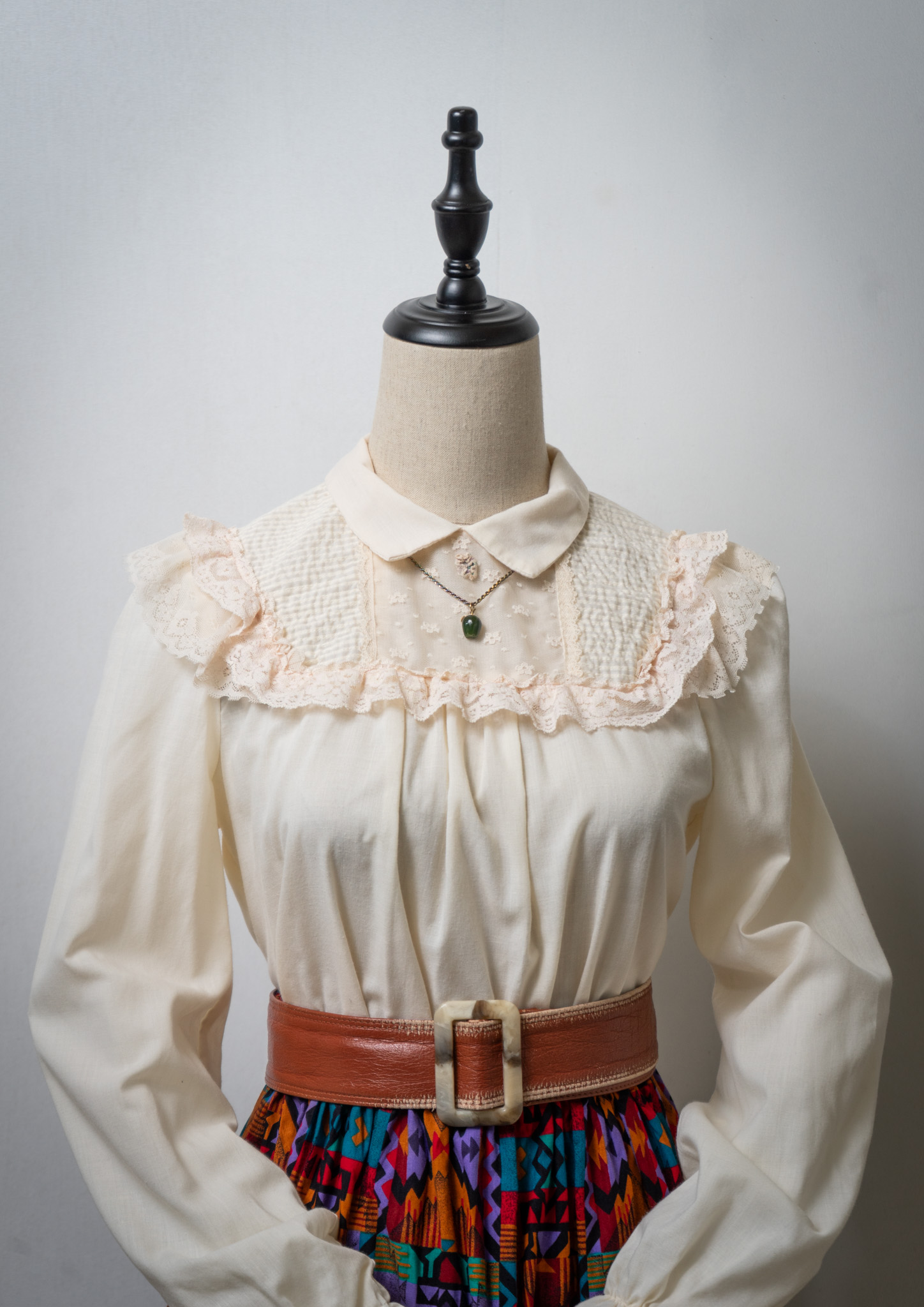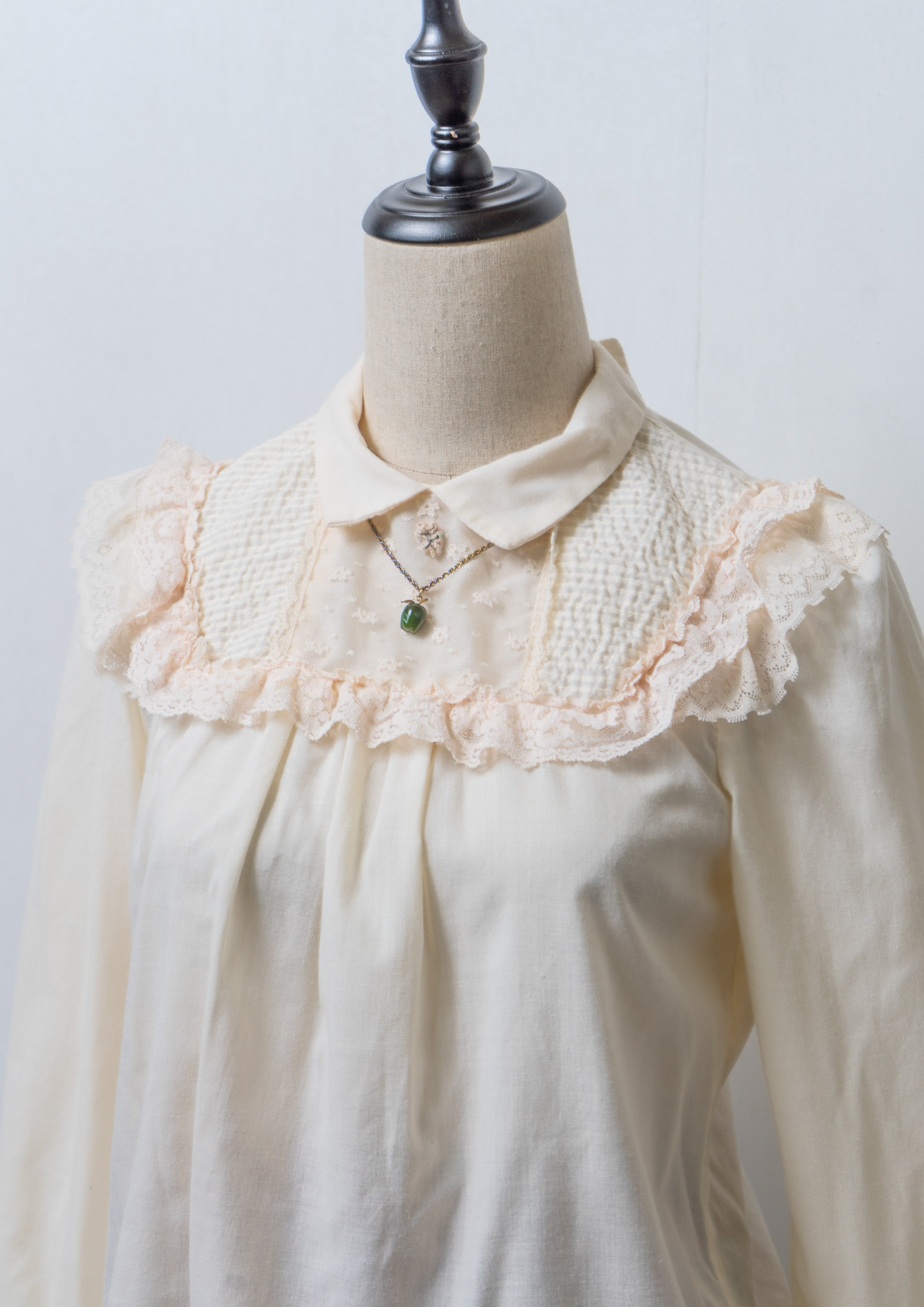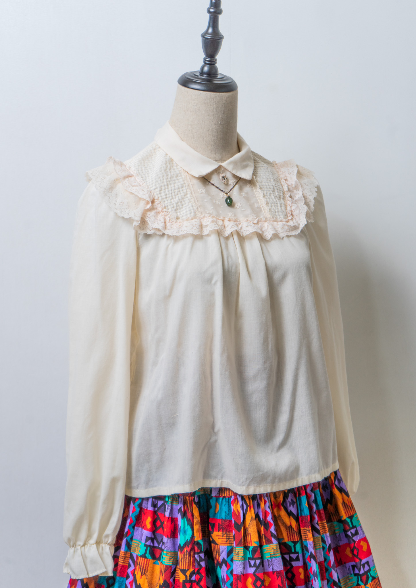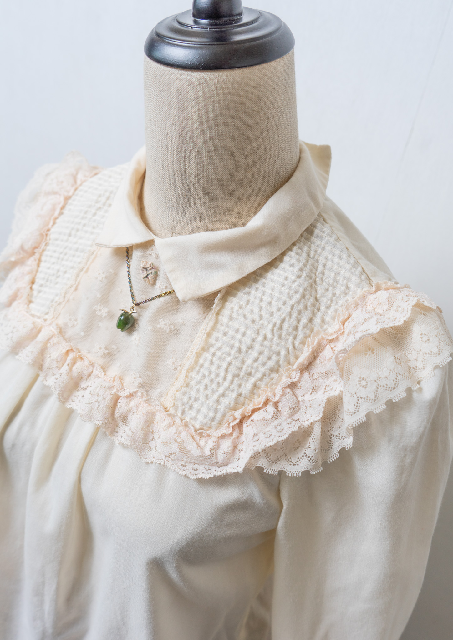70's Flower Lace × Pin tuck Design Ivory Blouse