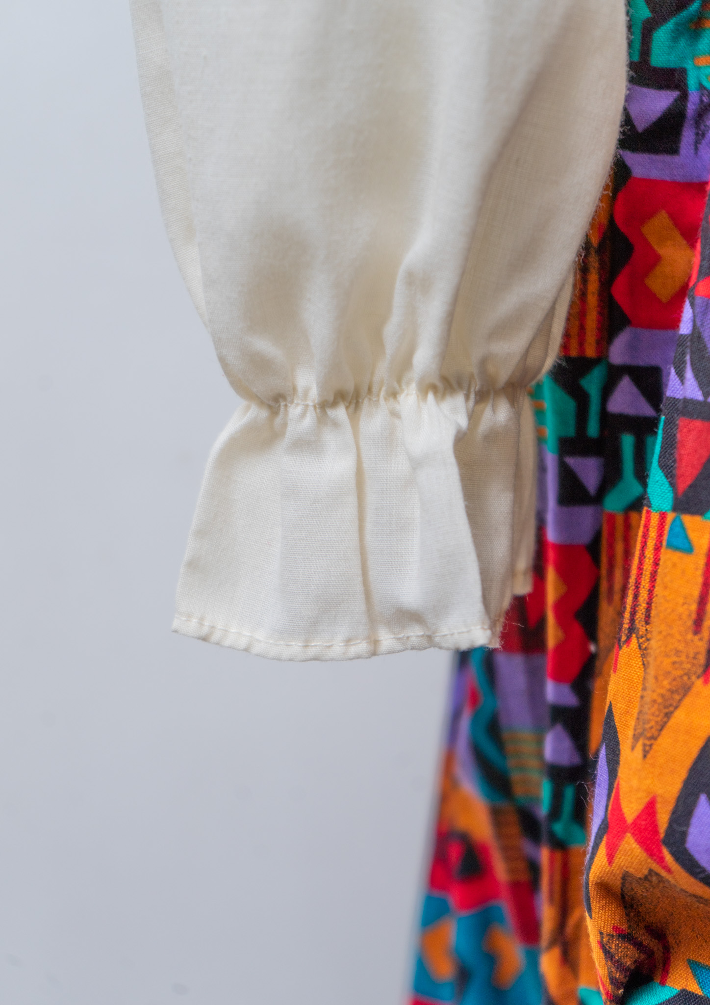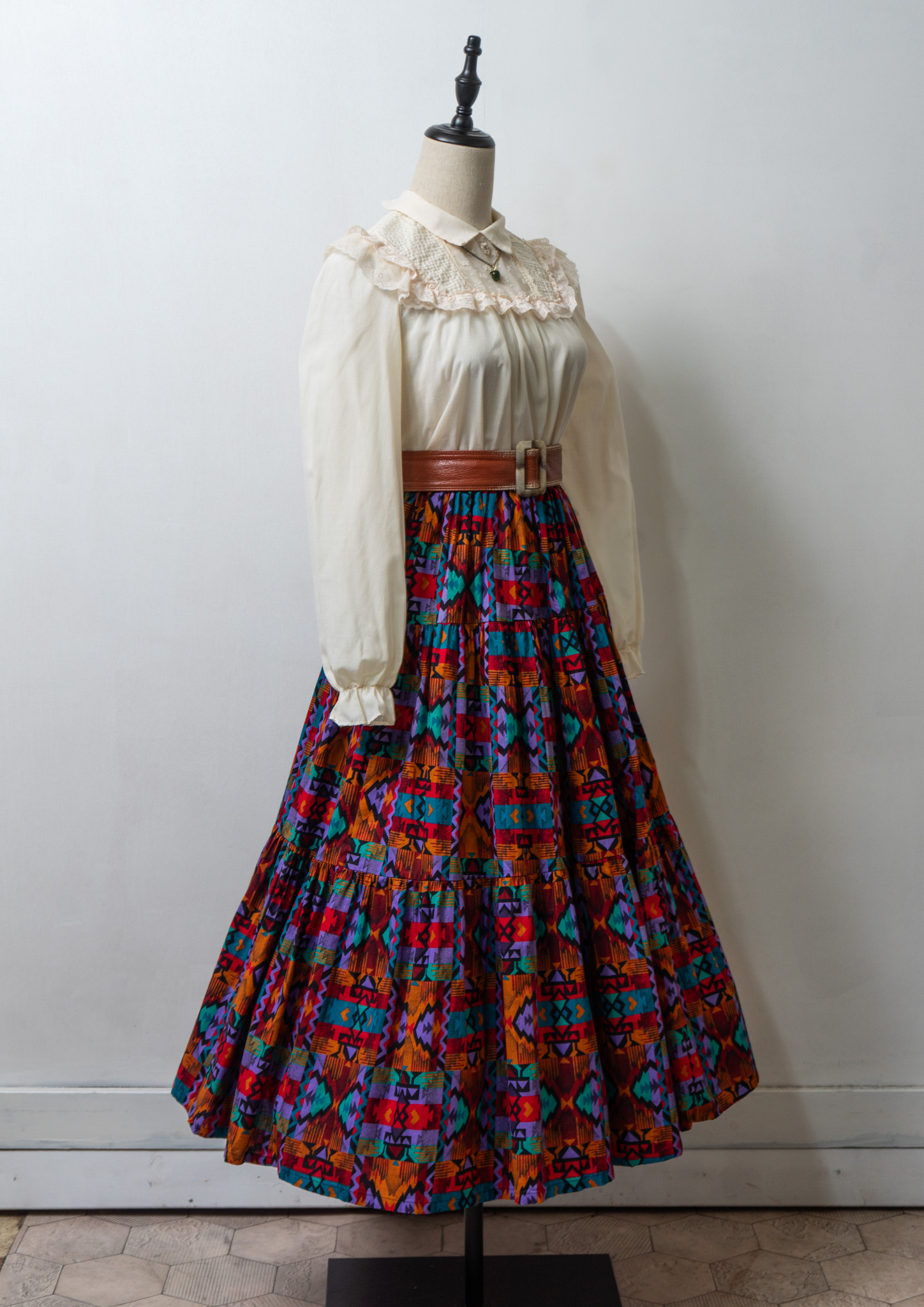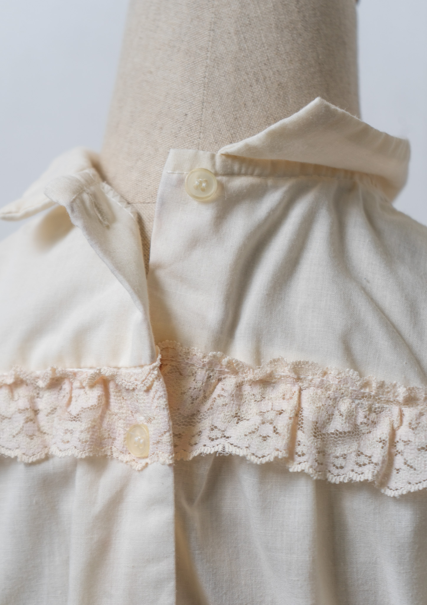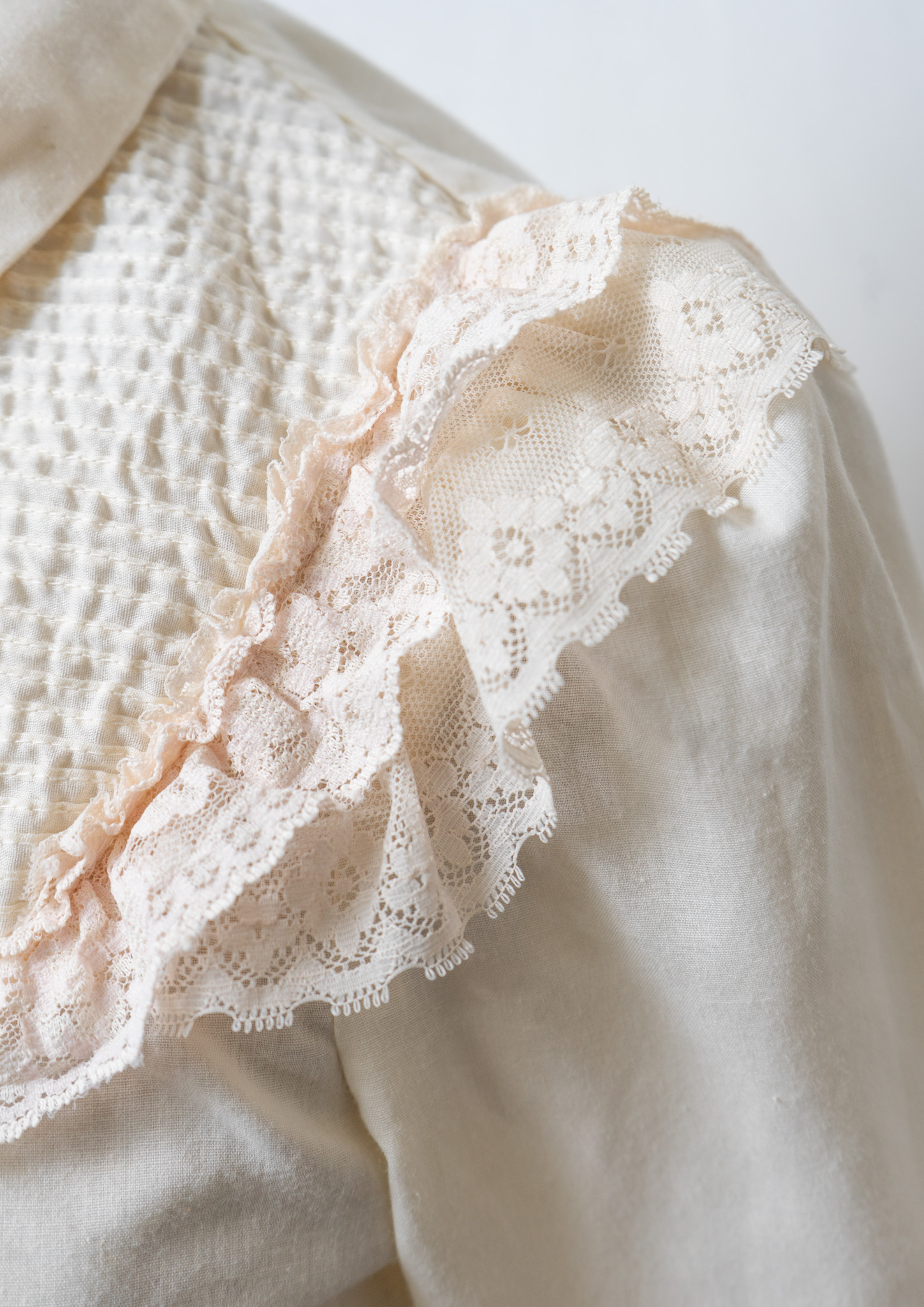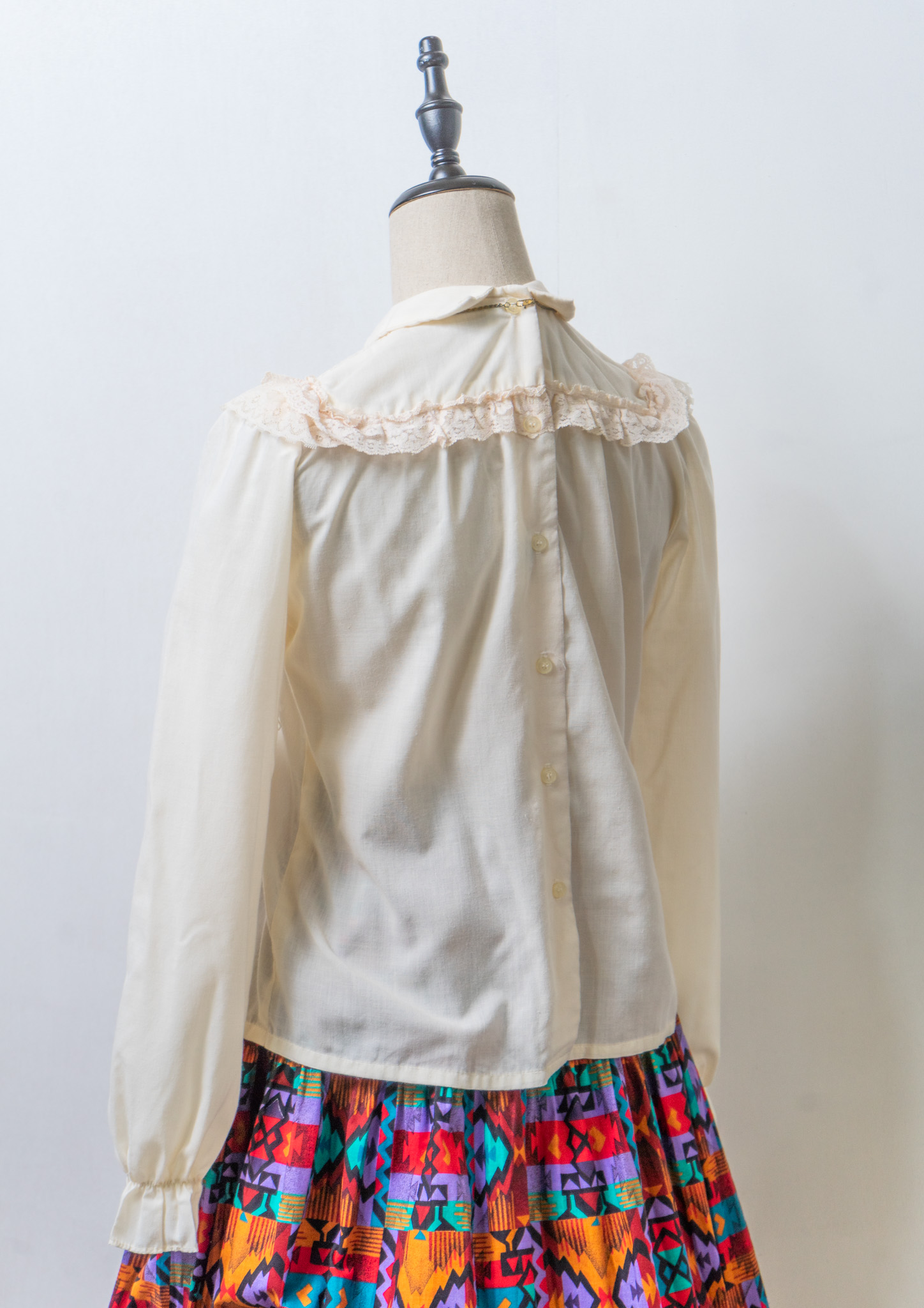70's Flower Lace × Pin tuck Design Ivory Blouse