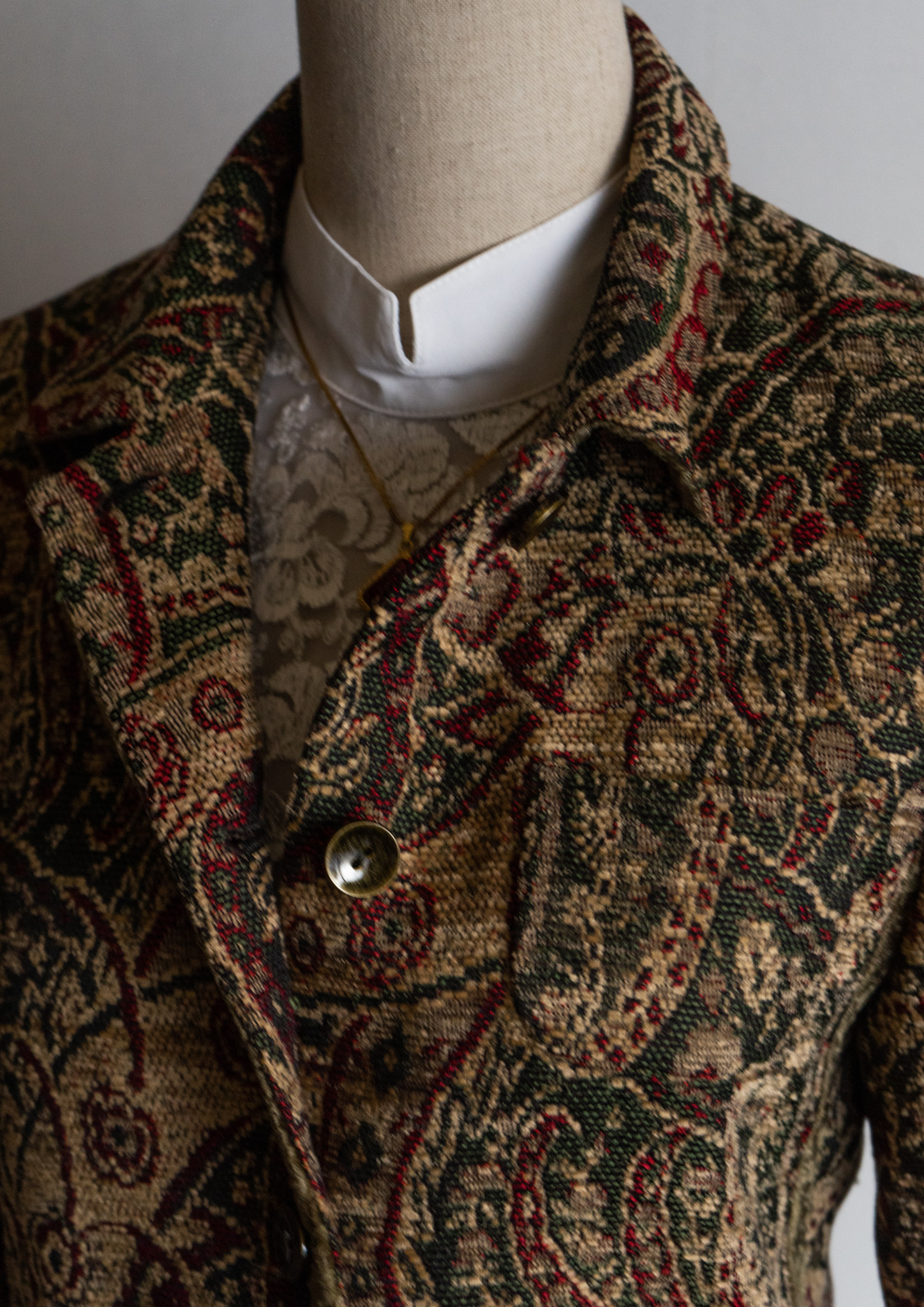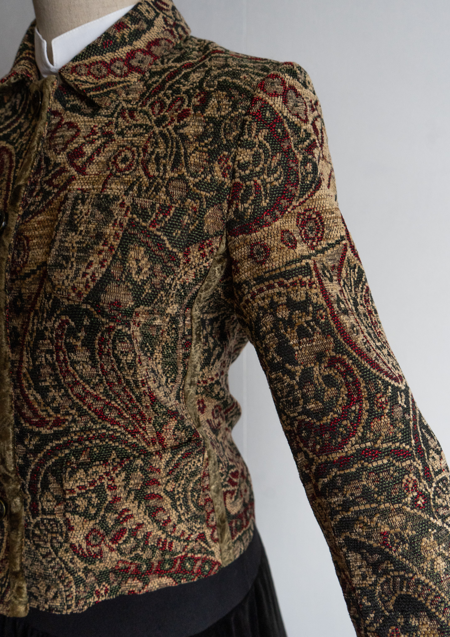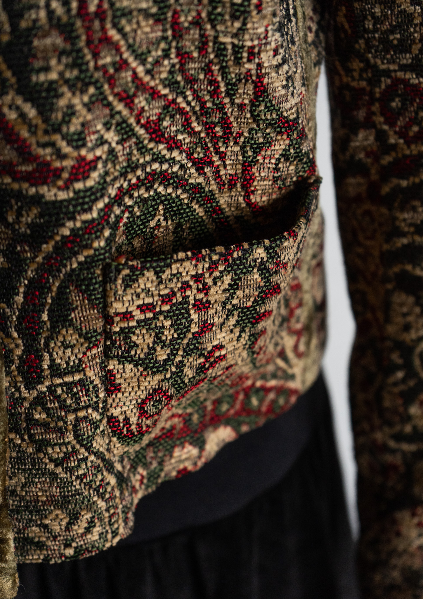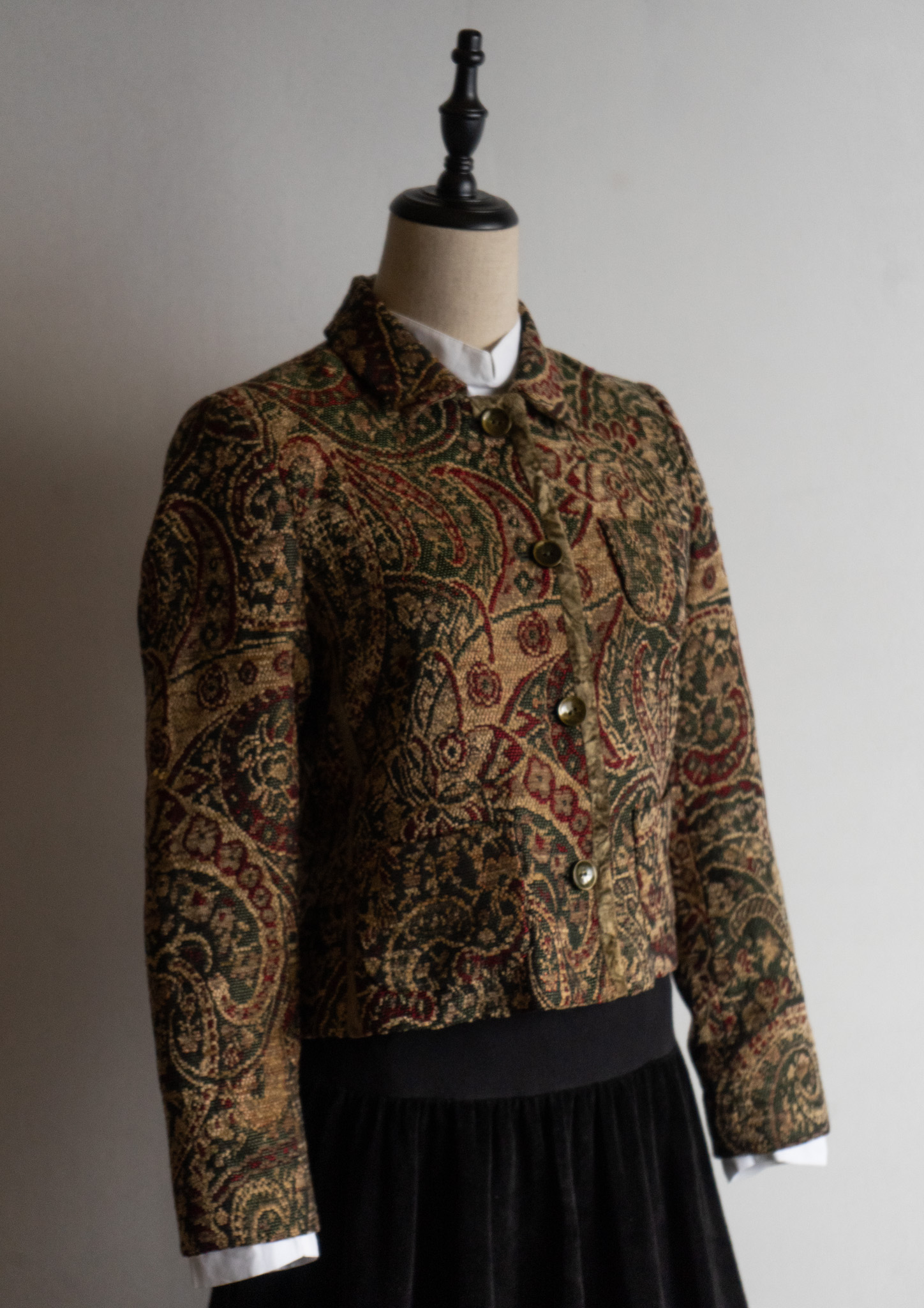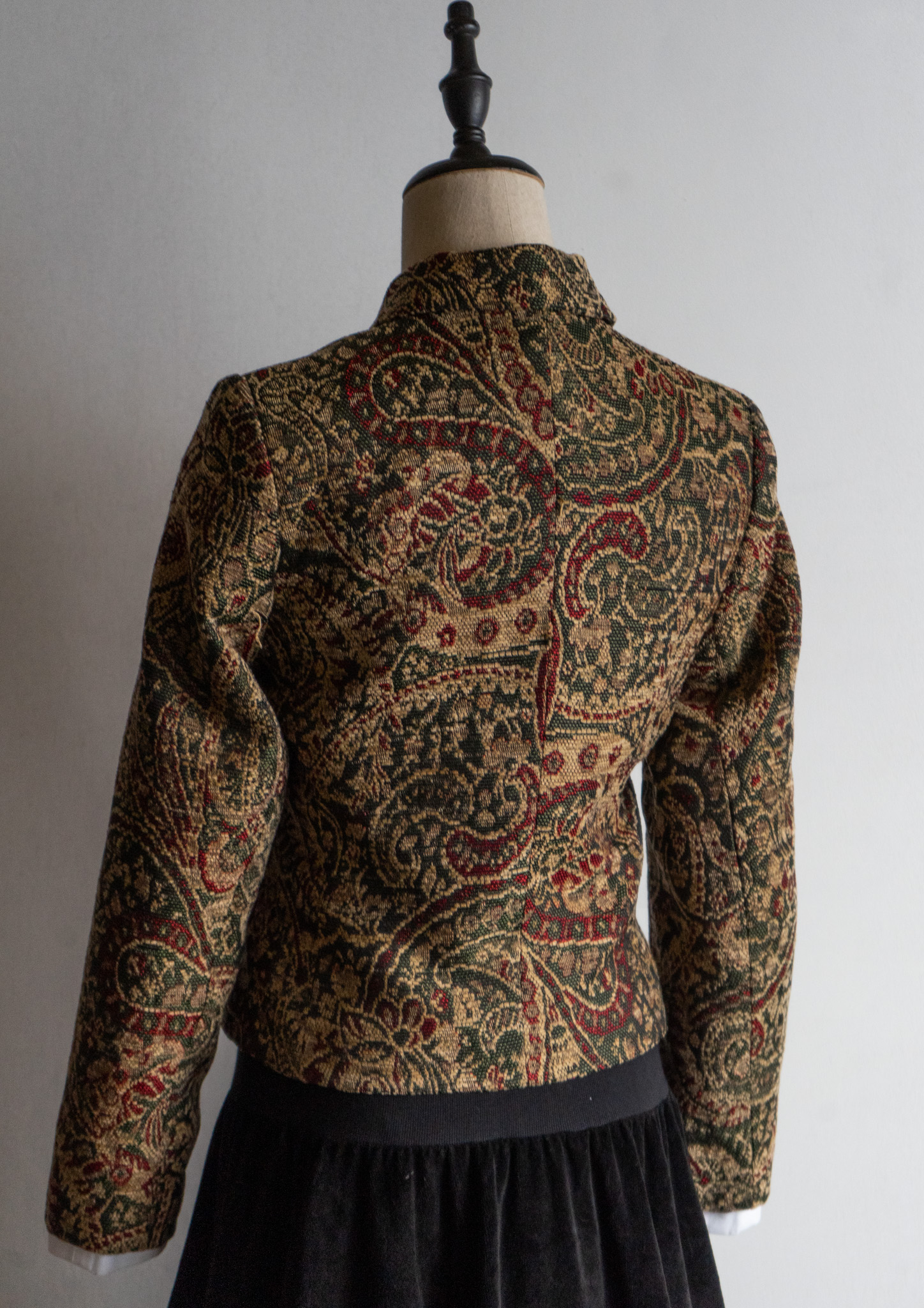 80's Dark Green × Beige Paisley Pattern Gobelins Jacket