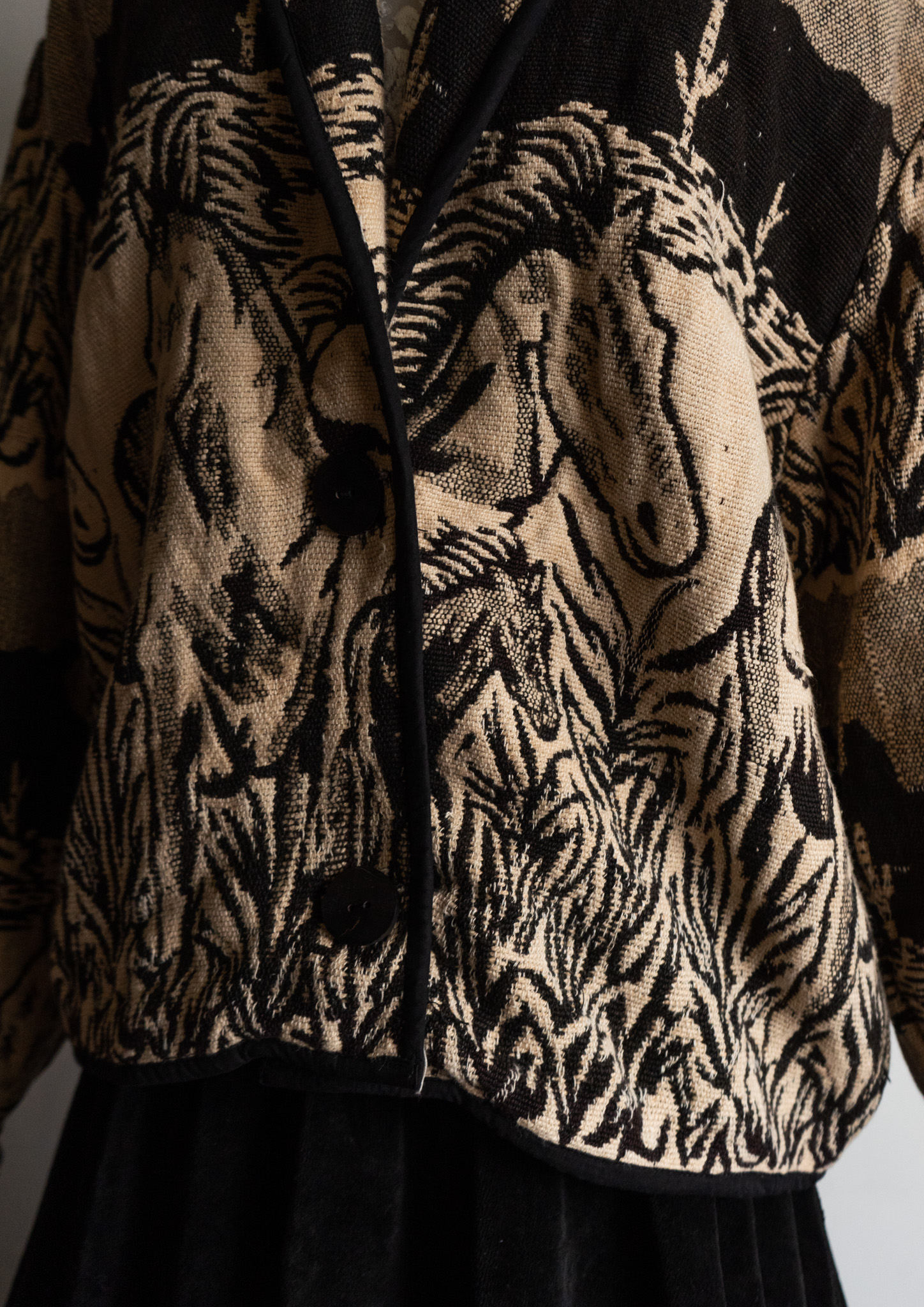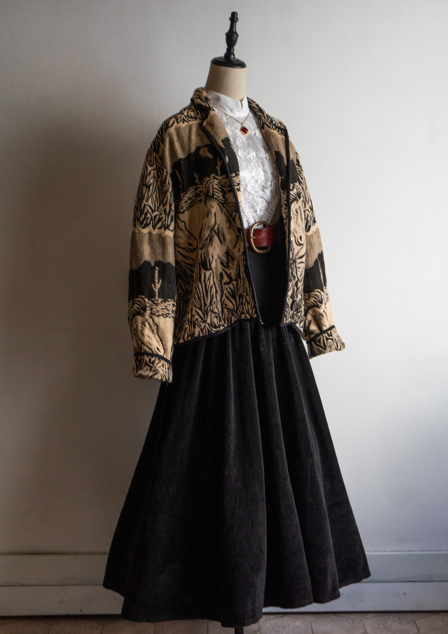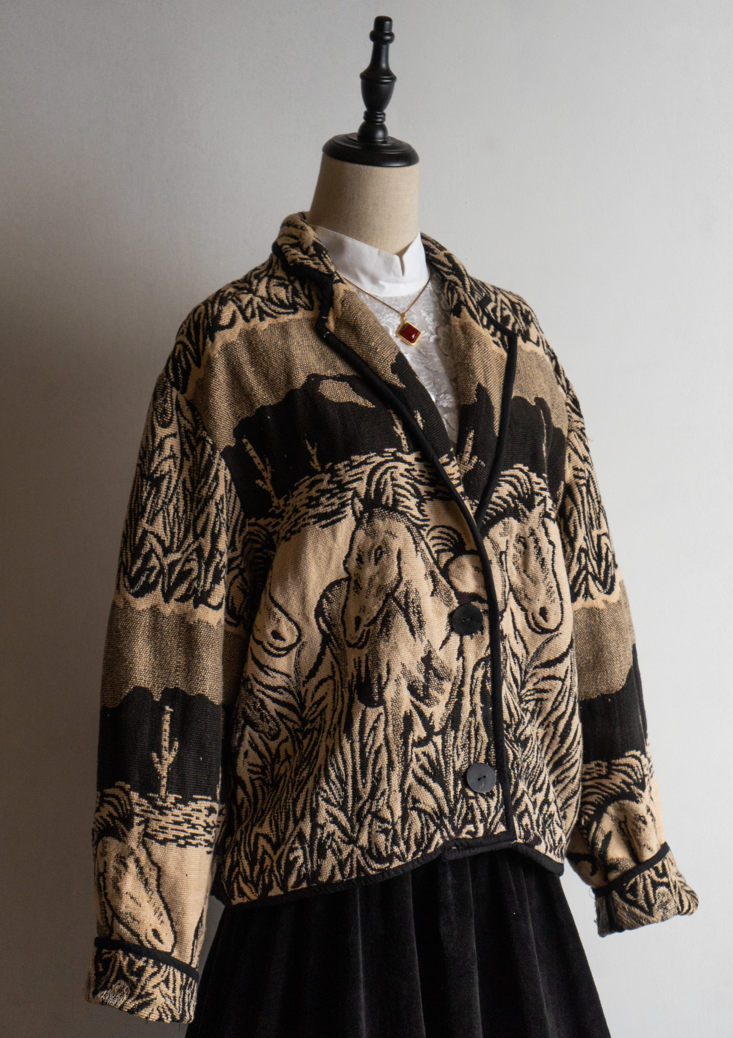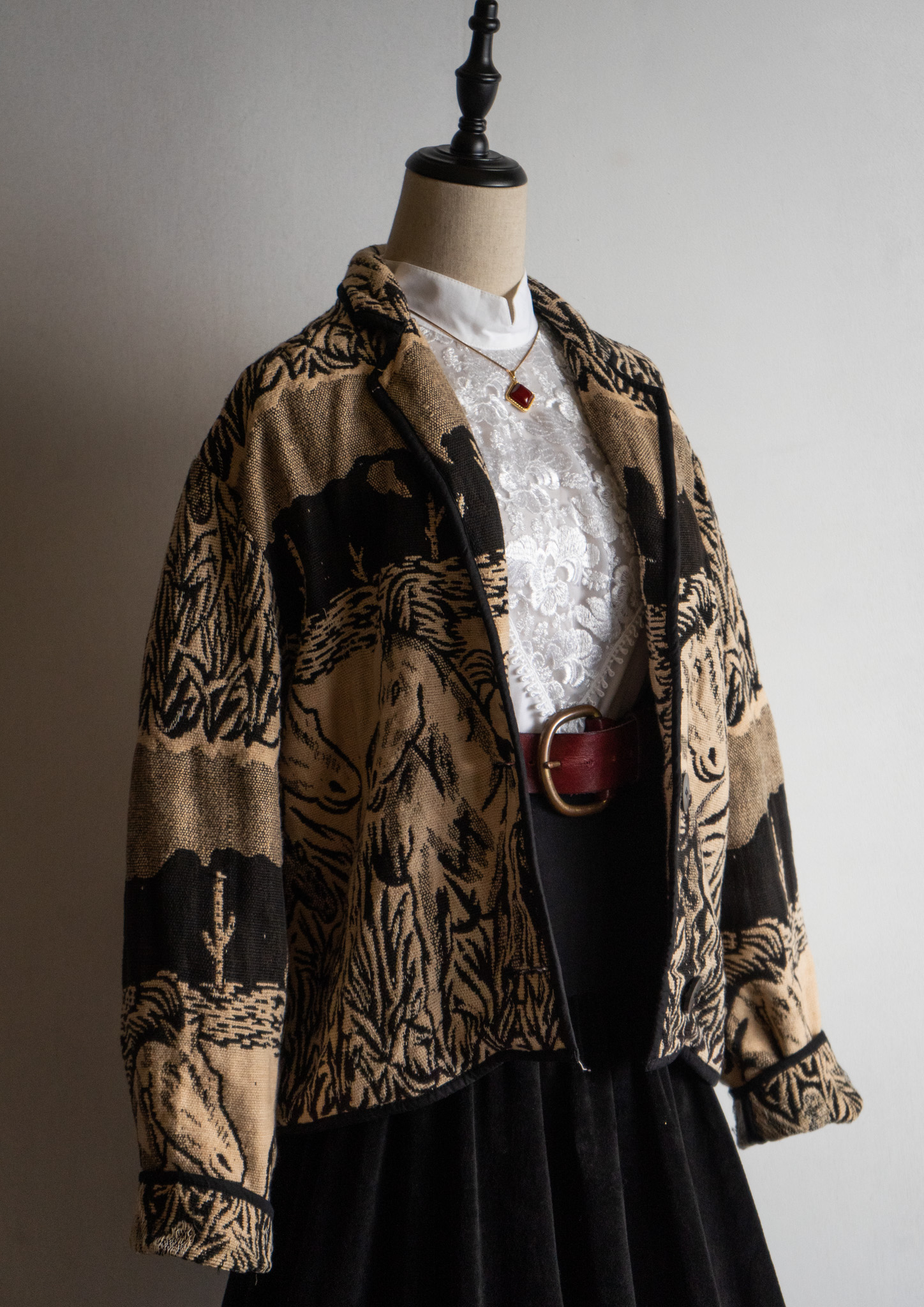 80's Double Pocket Design Point Leopard Pattern Black Wool Jacket