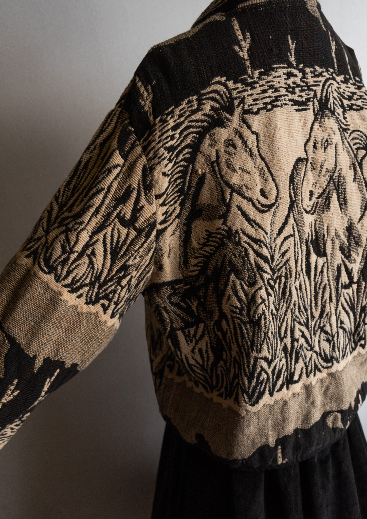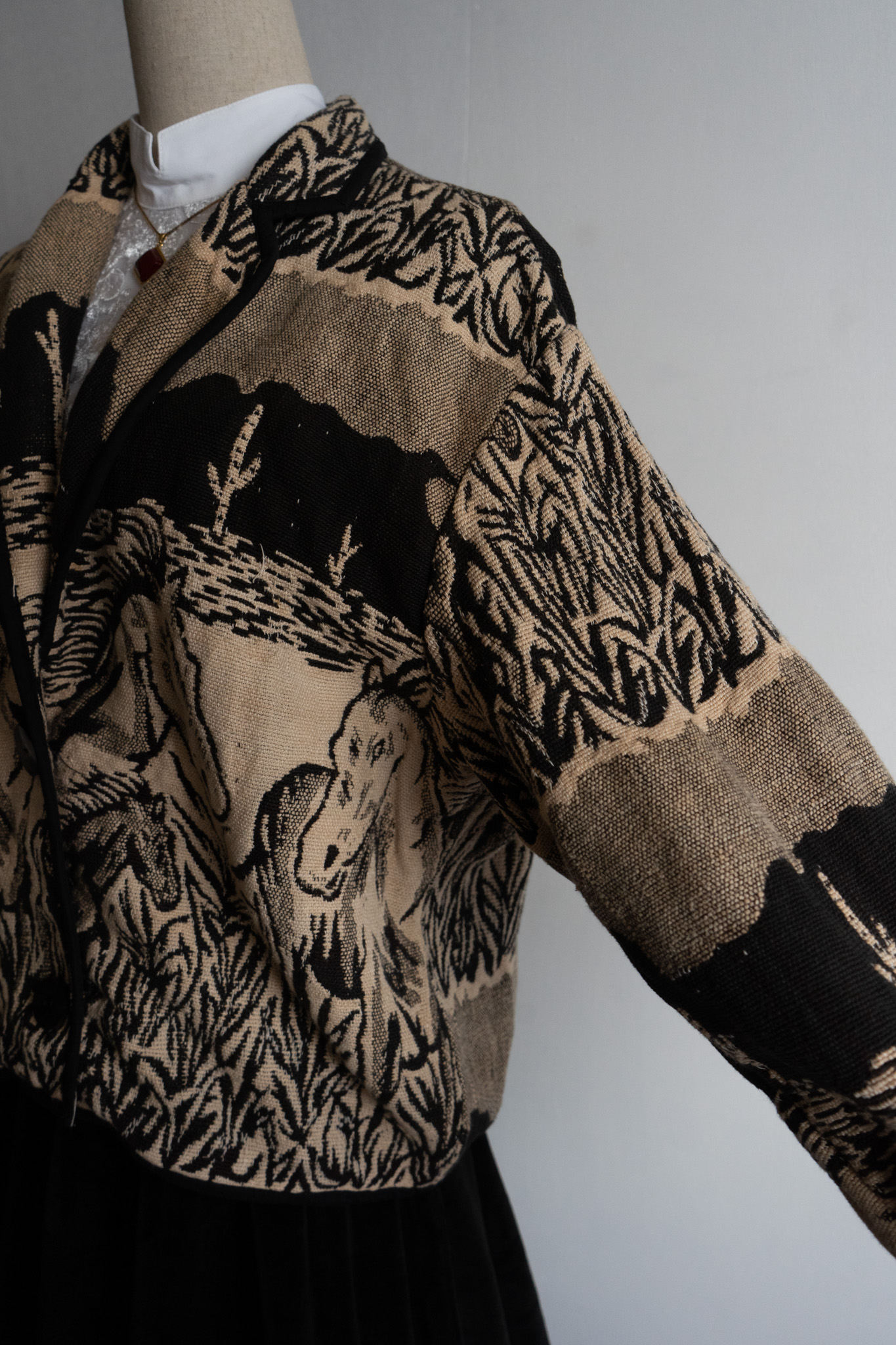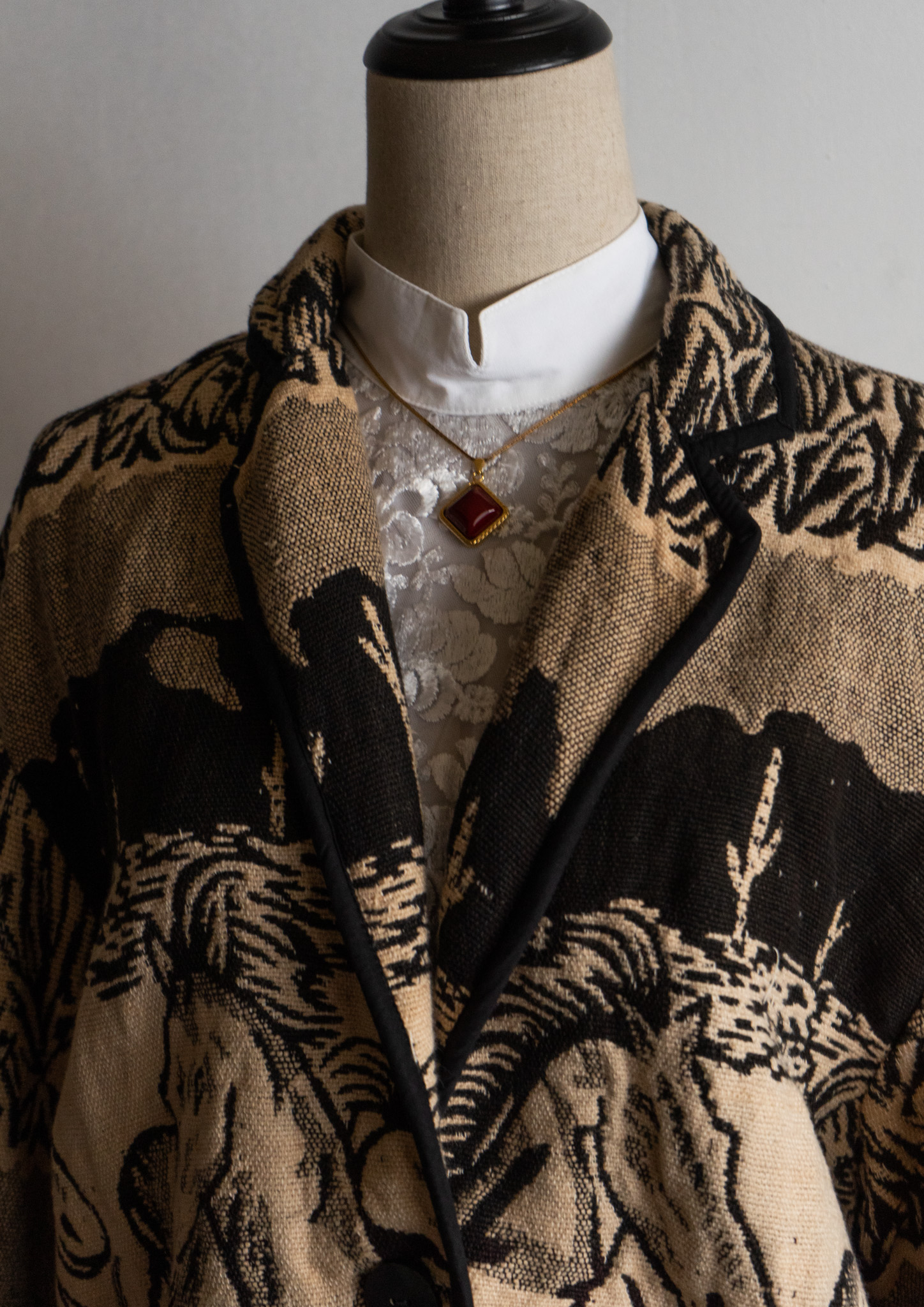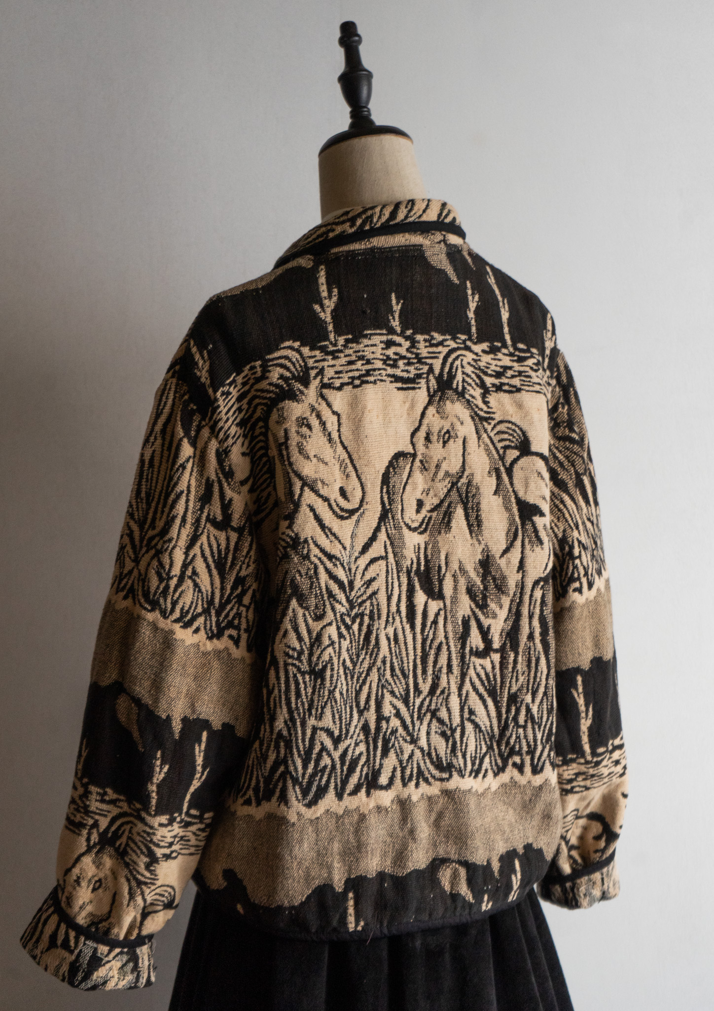 80's Double Pocket Design Point Leopard Pattern Black Wool Jacket