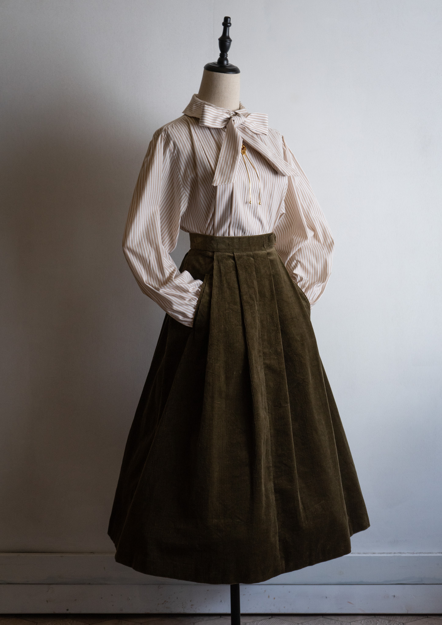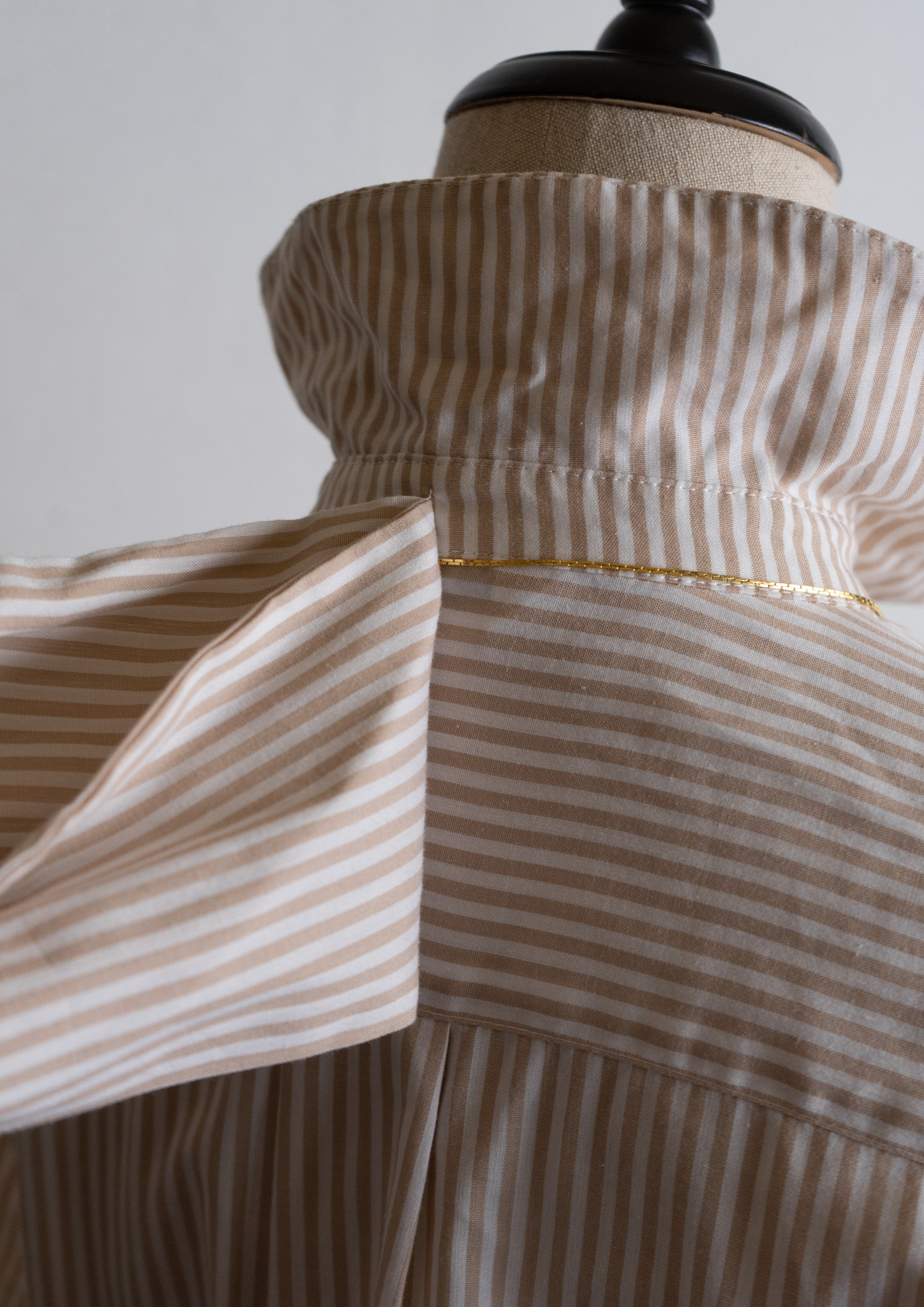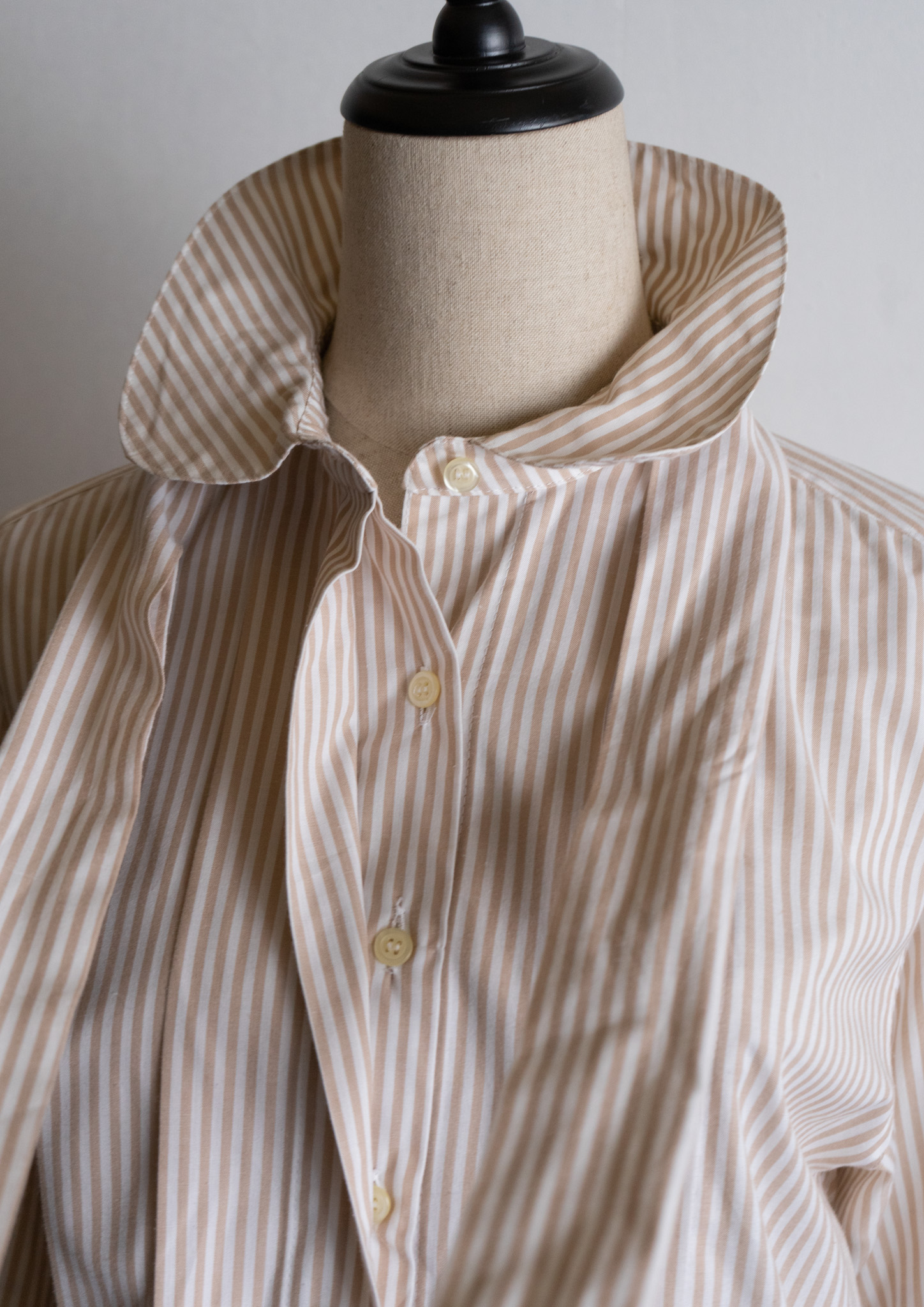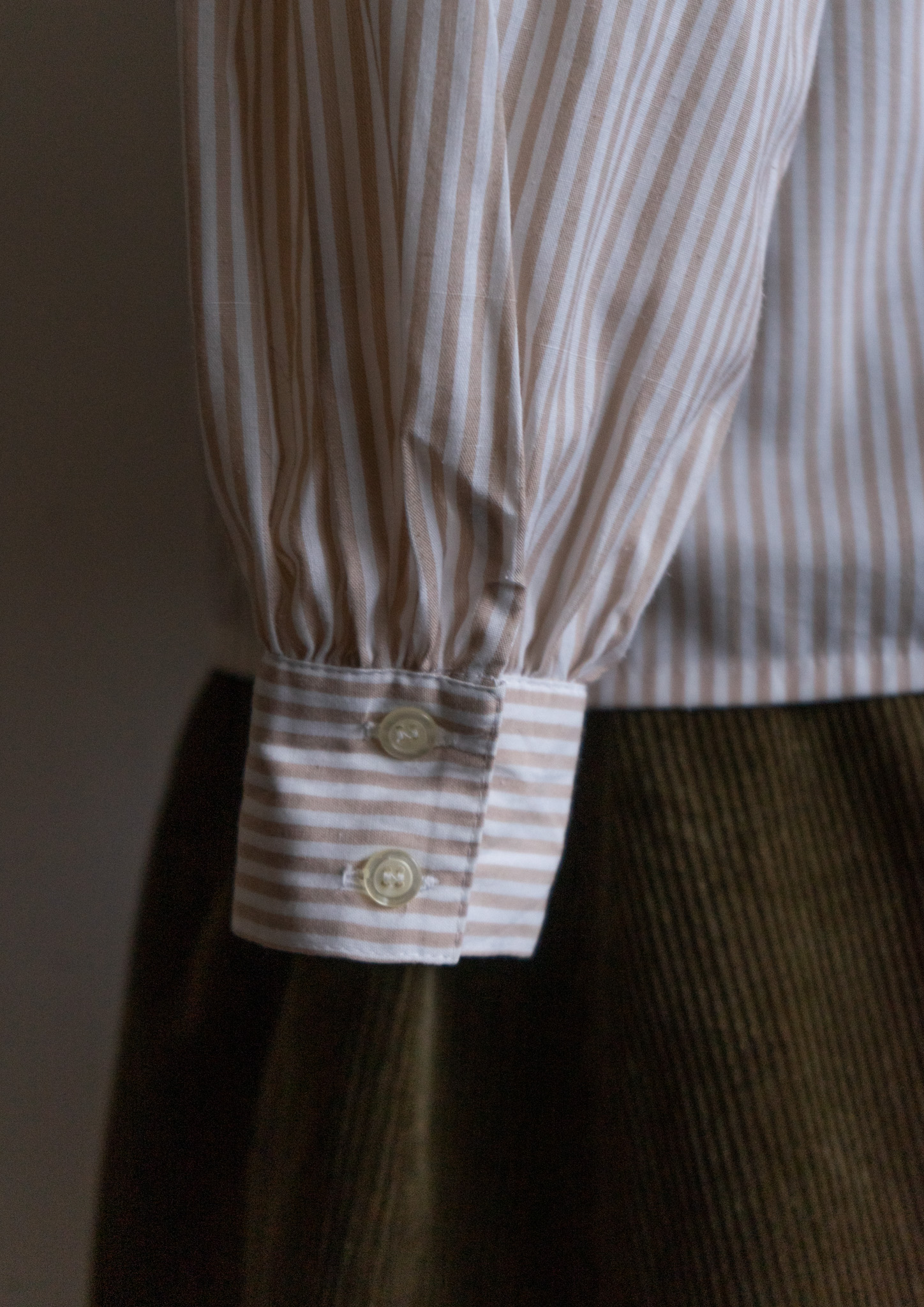 80~90's Beige × White Stripe Pattern Bow-tie Blosue
