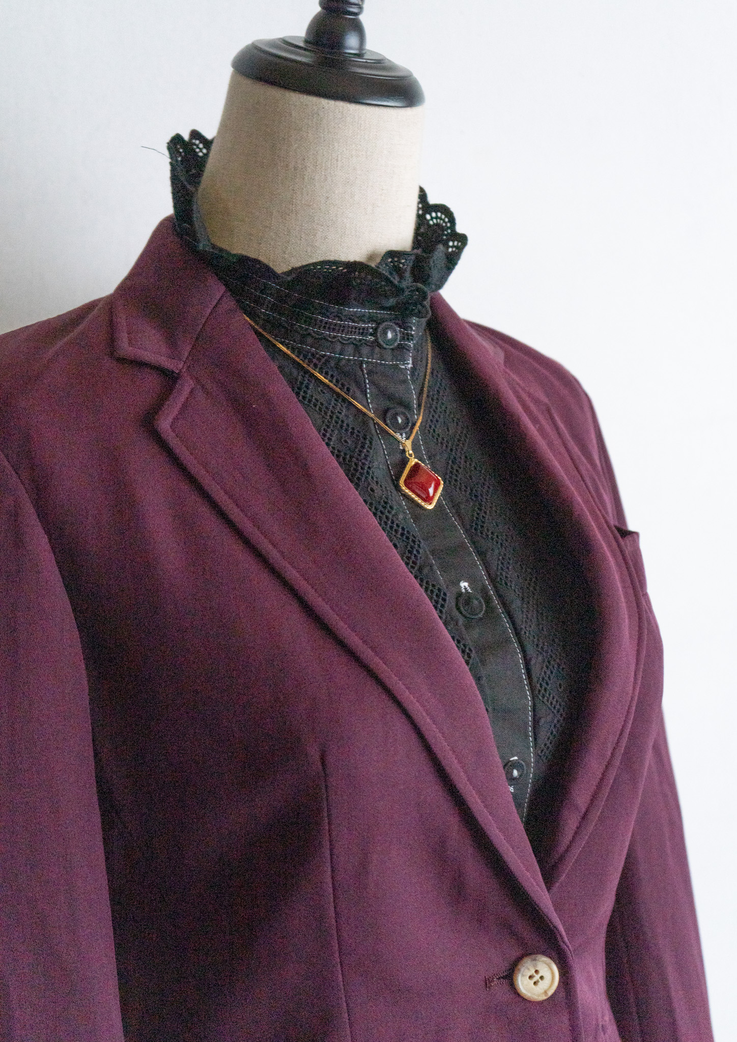 Leaf Embroidery × Double Pocket Design Point Corduroy Pattern Light Purple Boa Jacket