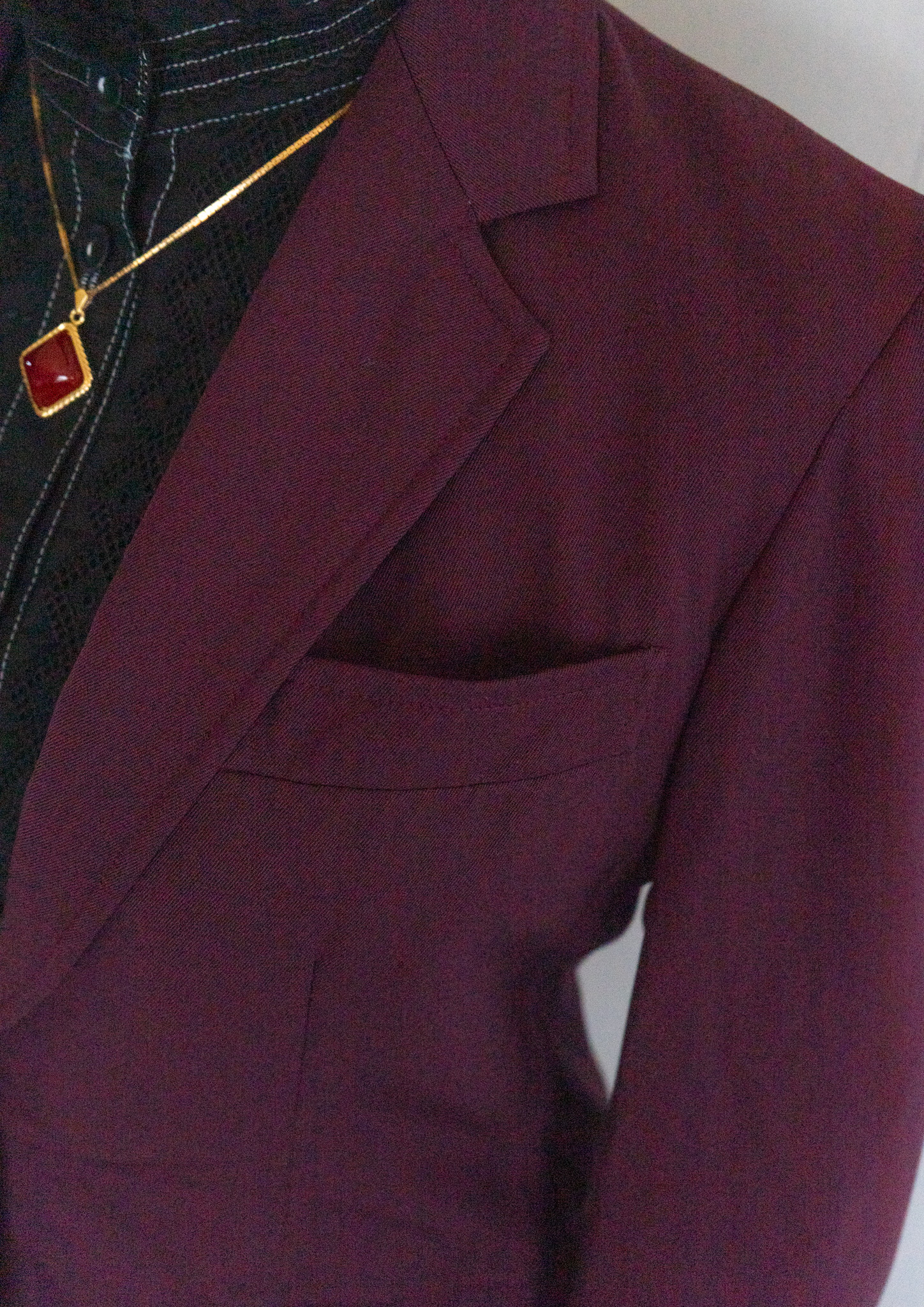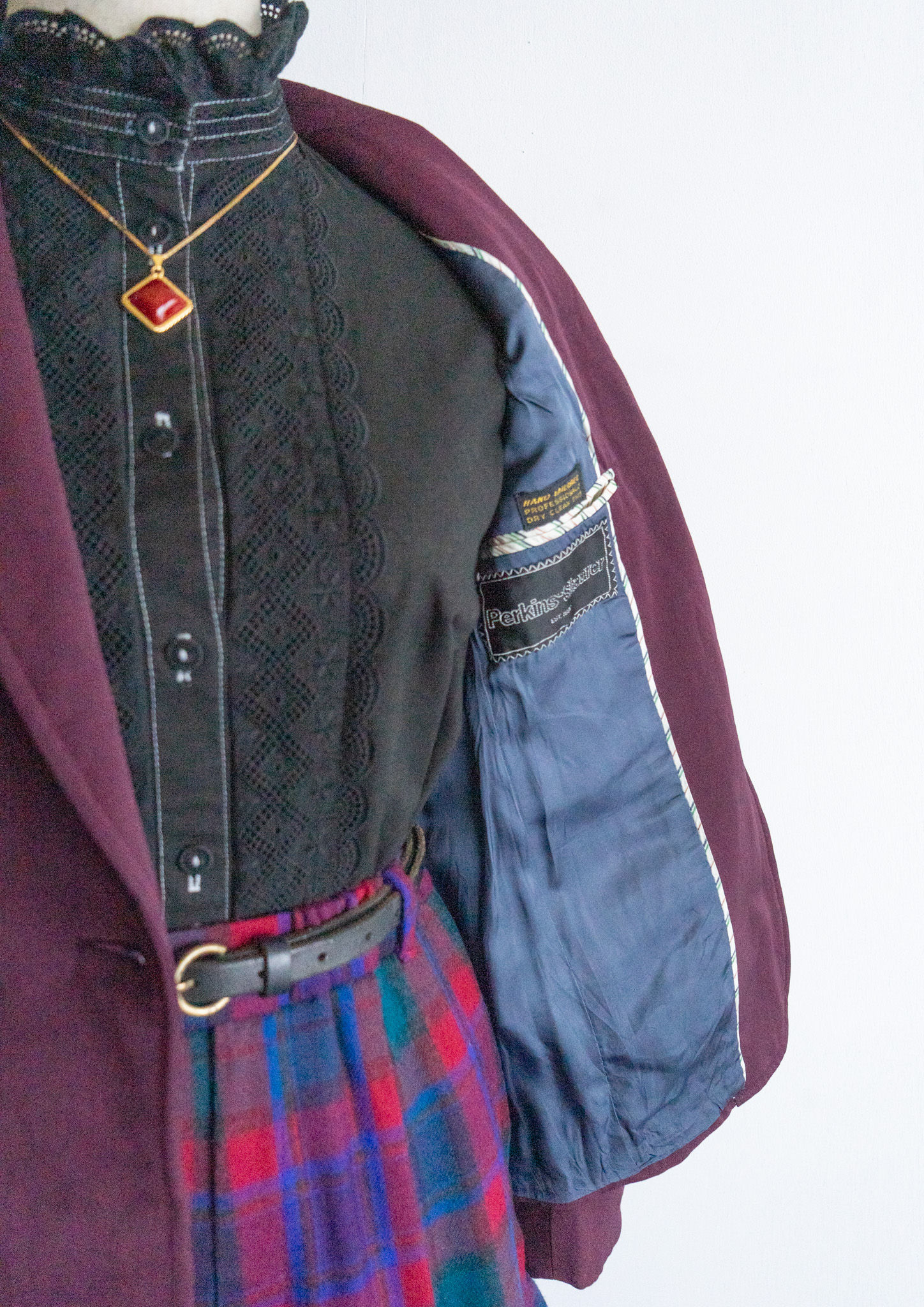 80's Double Pocket Design Point Leopard Pattern Black Wool Jacket