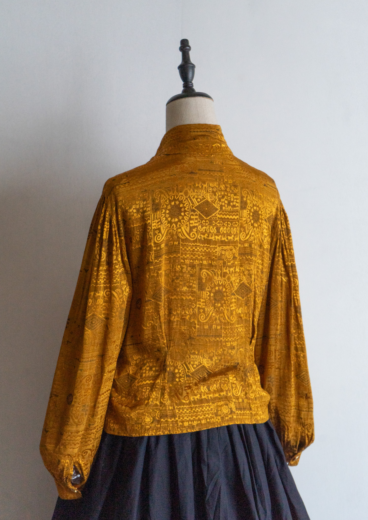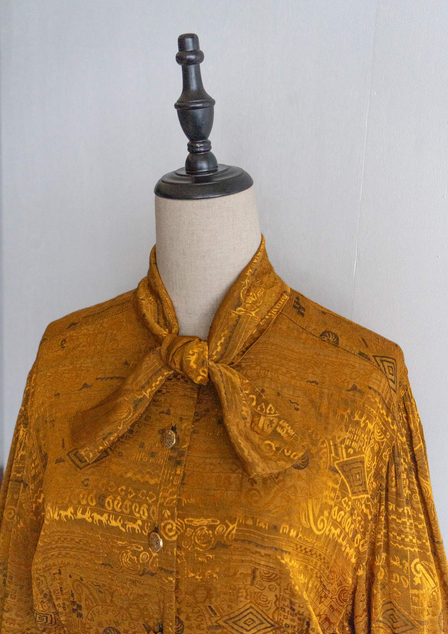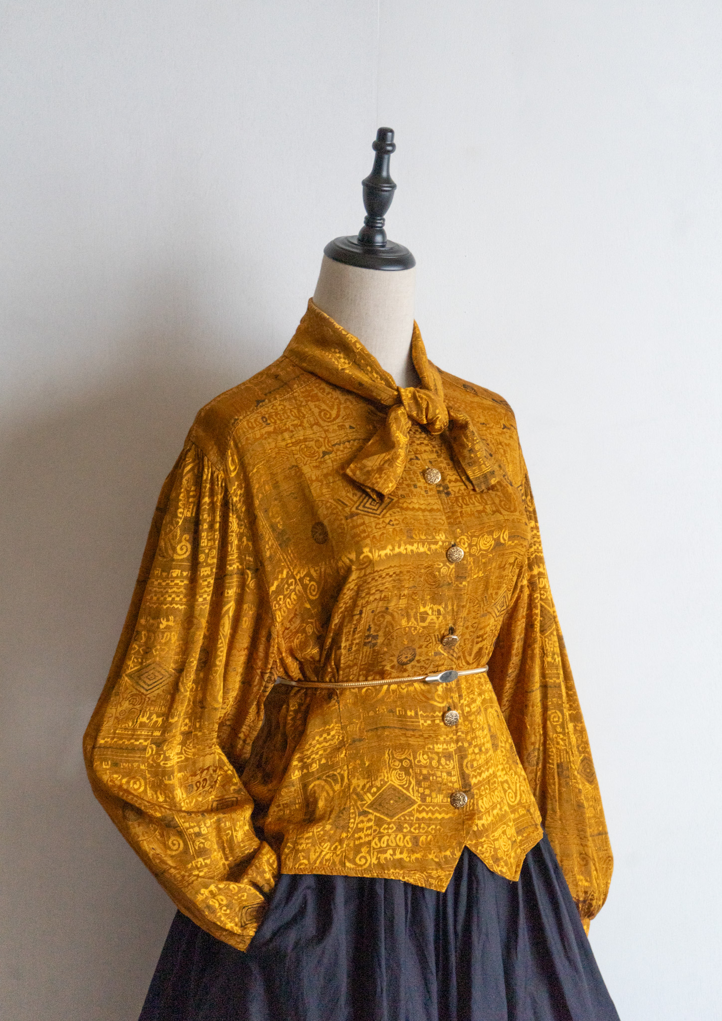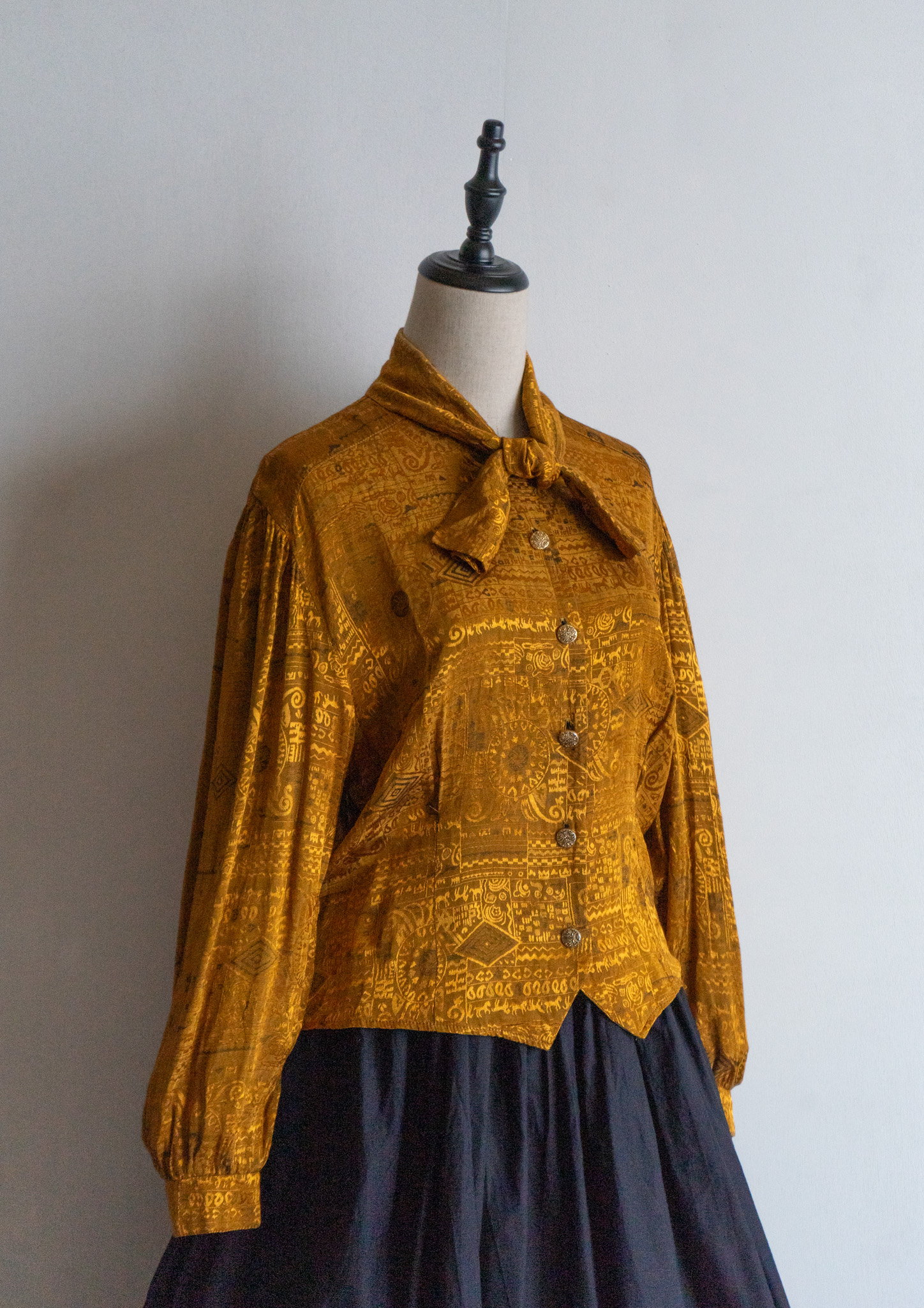 80’s W-Germany Unique Glossy Pattern Bow-tie Blouse