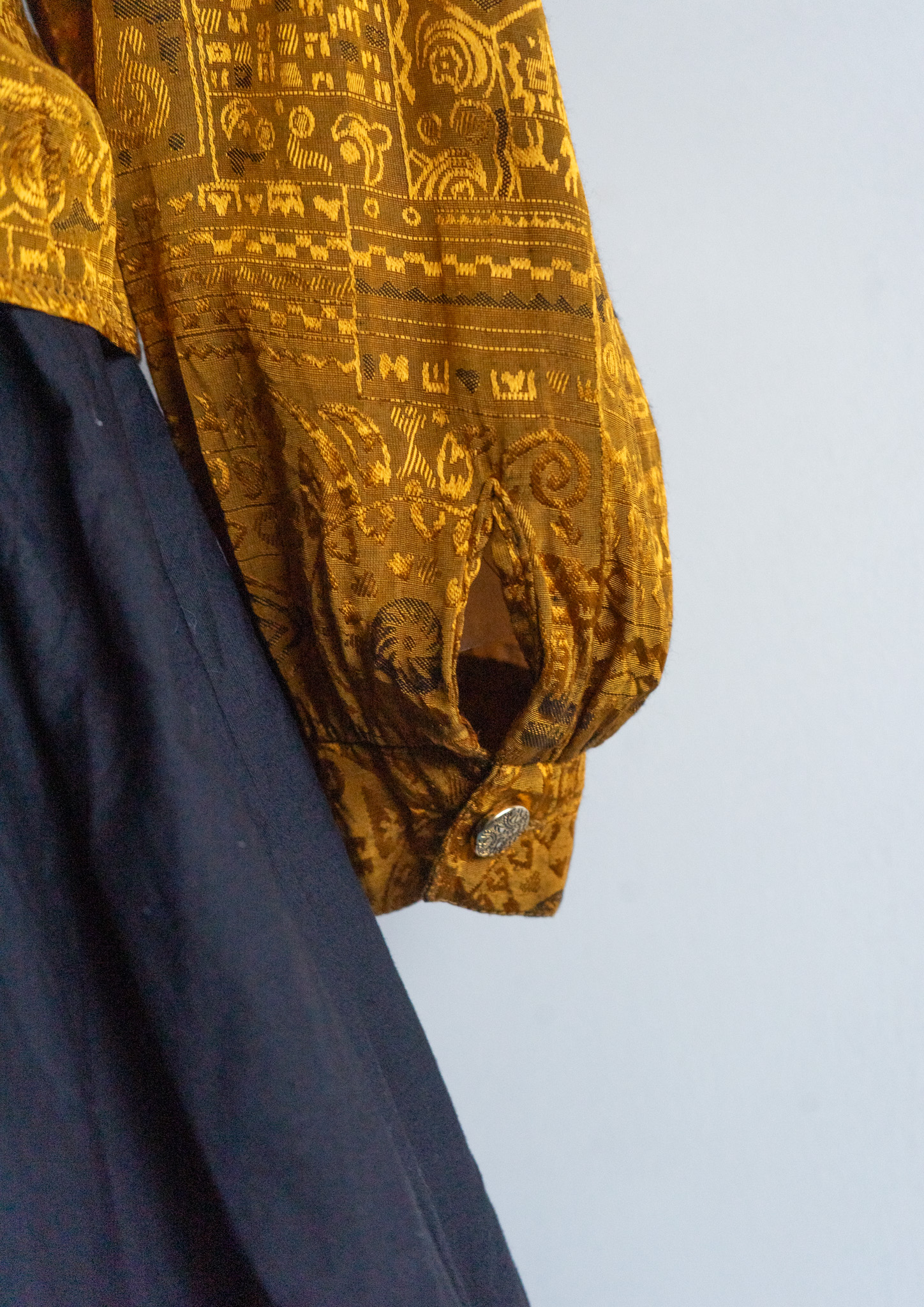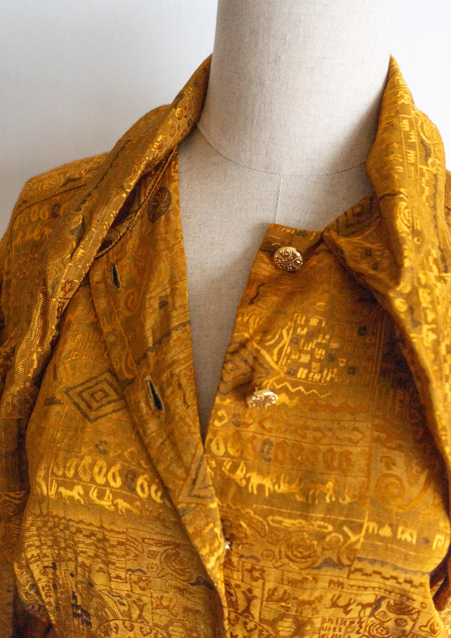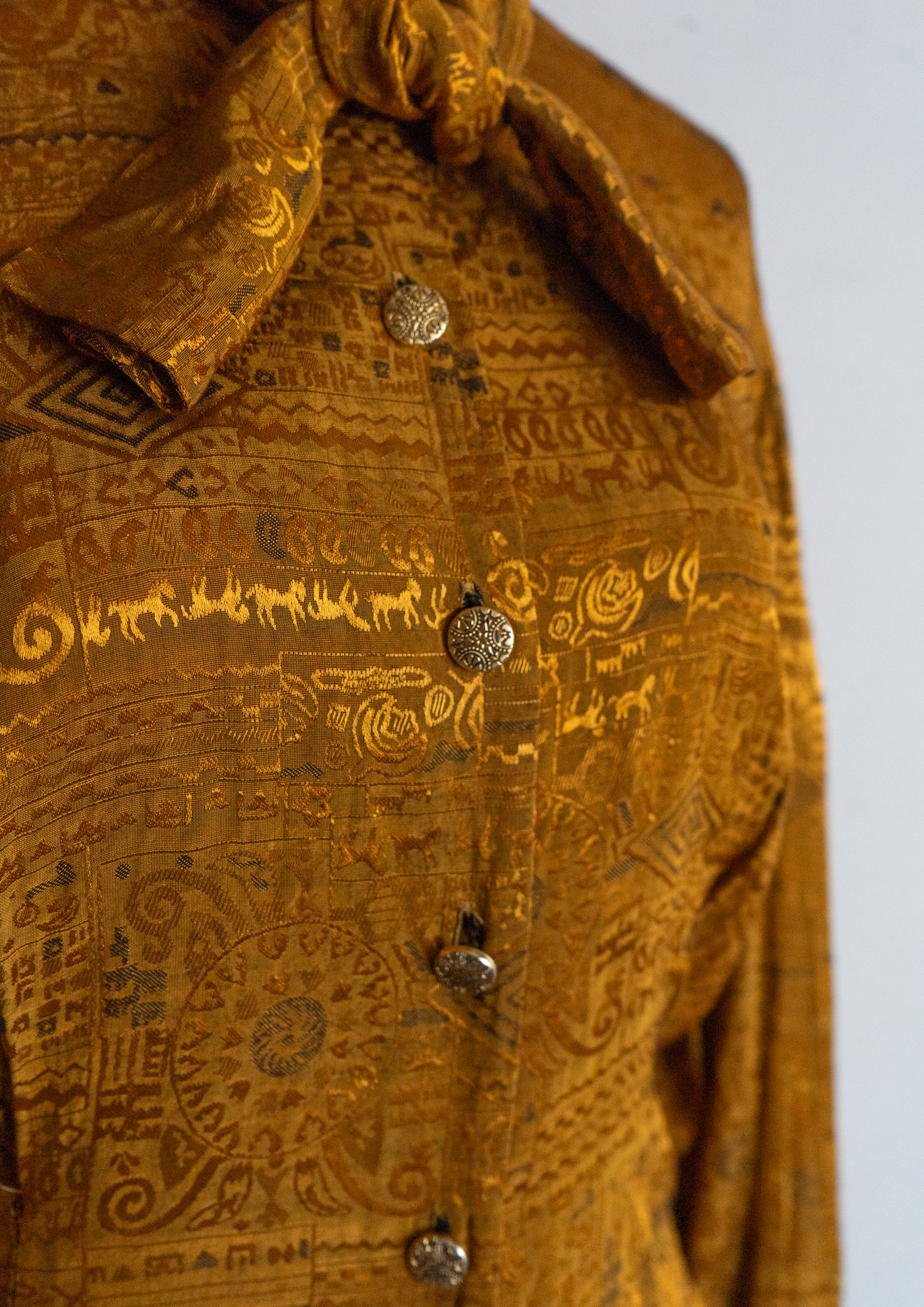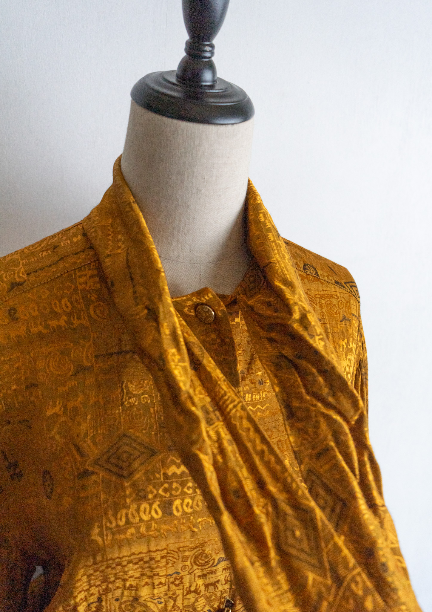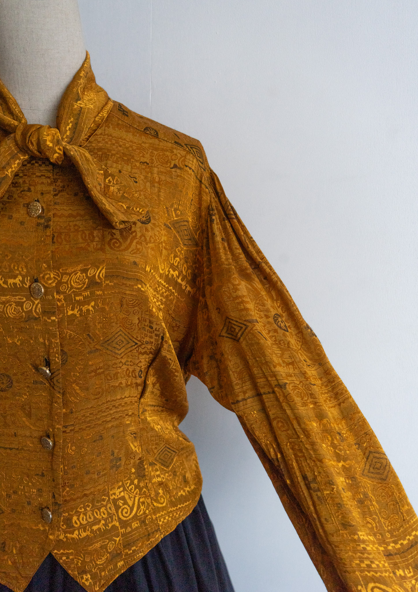 80’s W-Germany Unique Glossy Pattern Bow-tie Blouse
