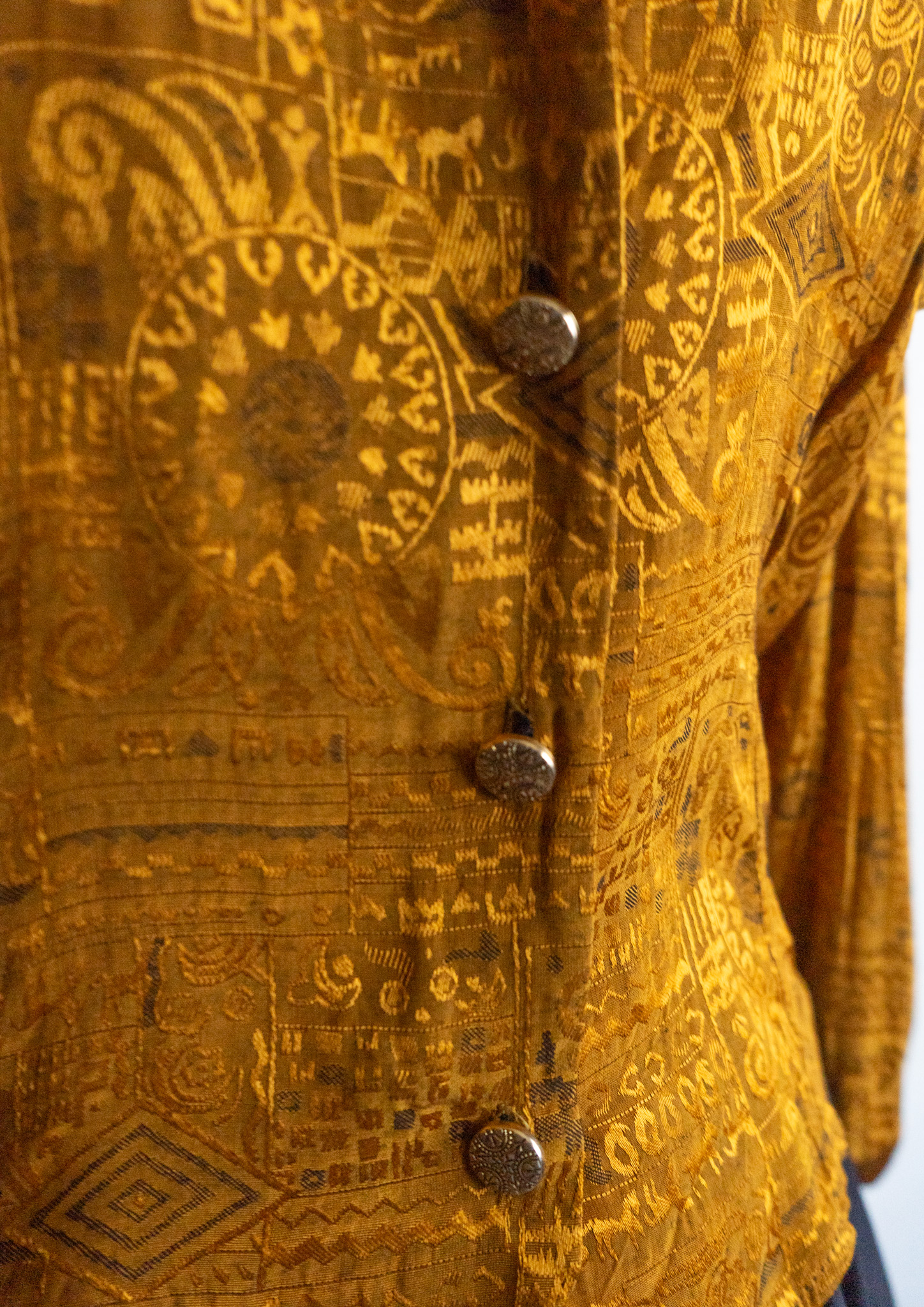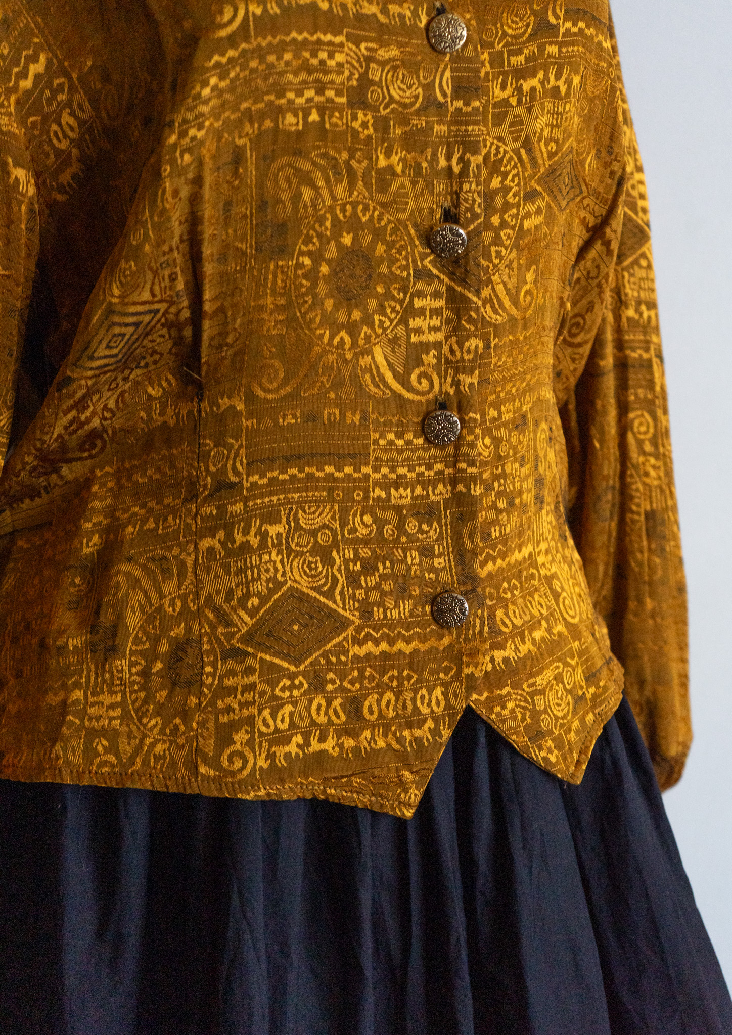 80~90's LESLIE FAY Peplum Design Colorful Botanical Pattern Blouse