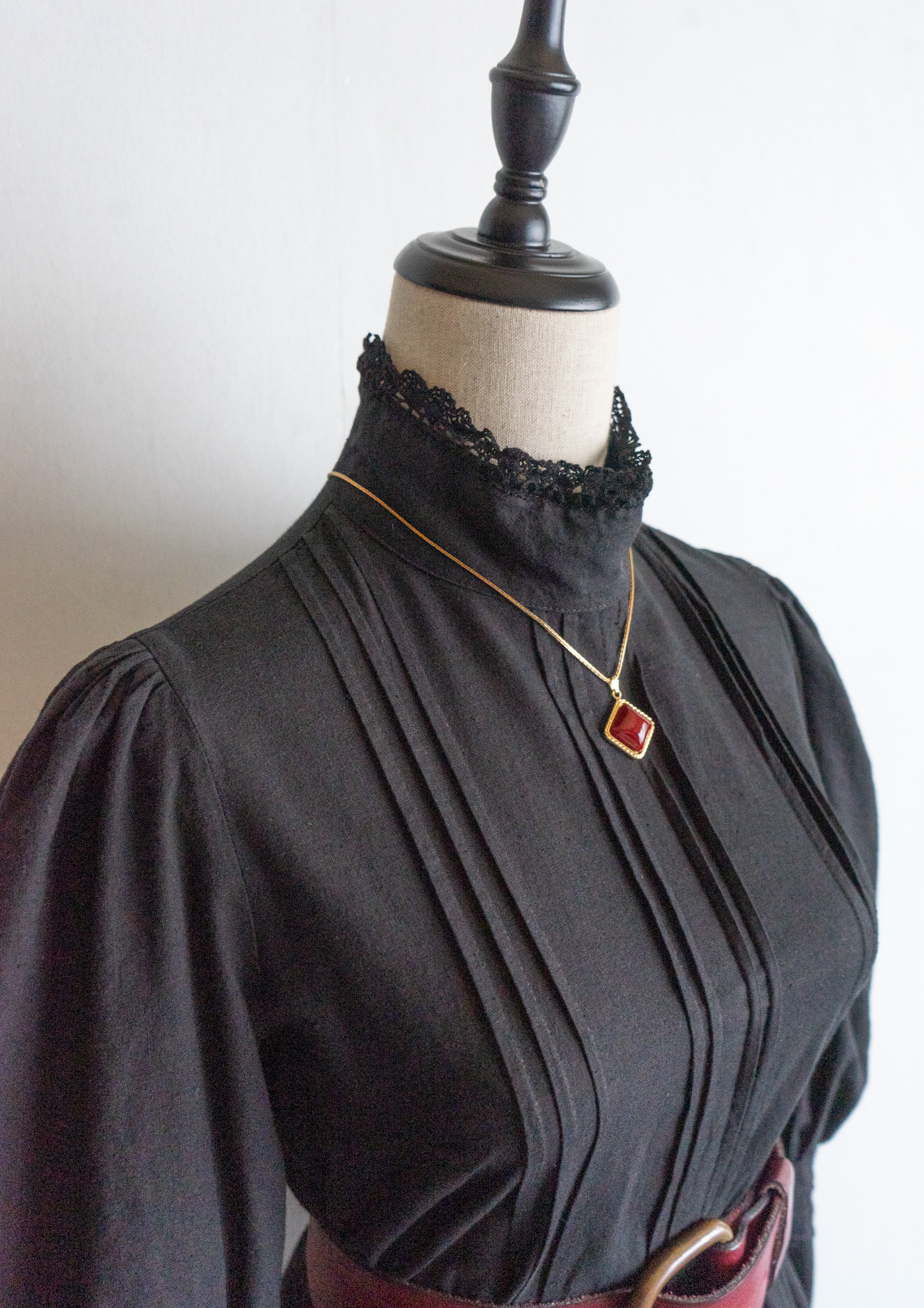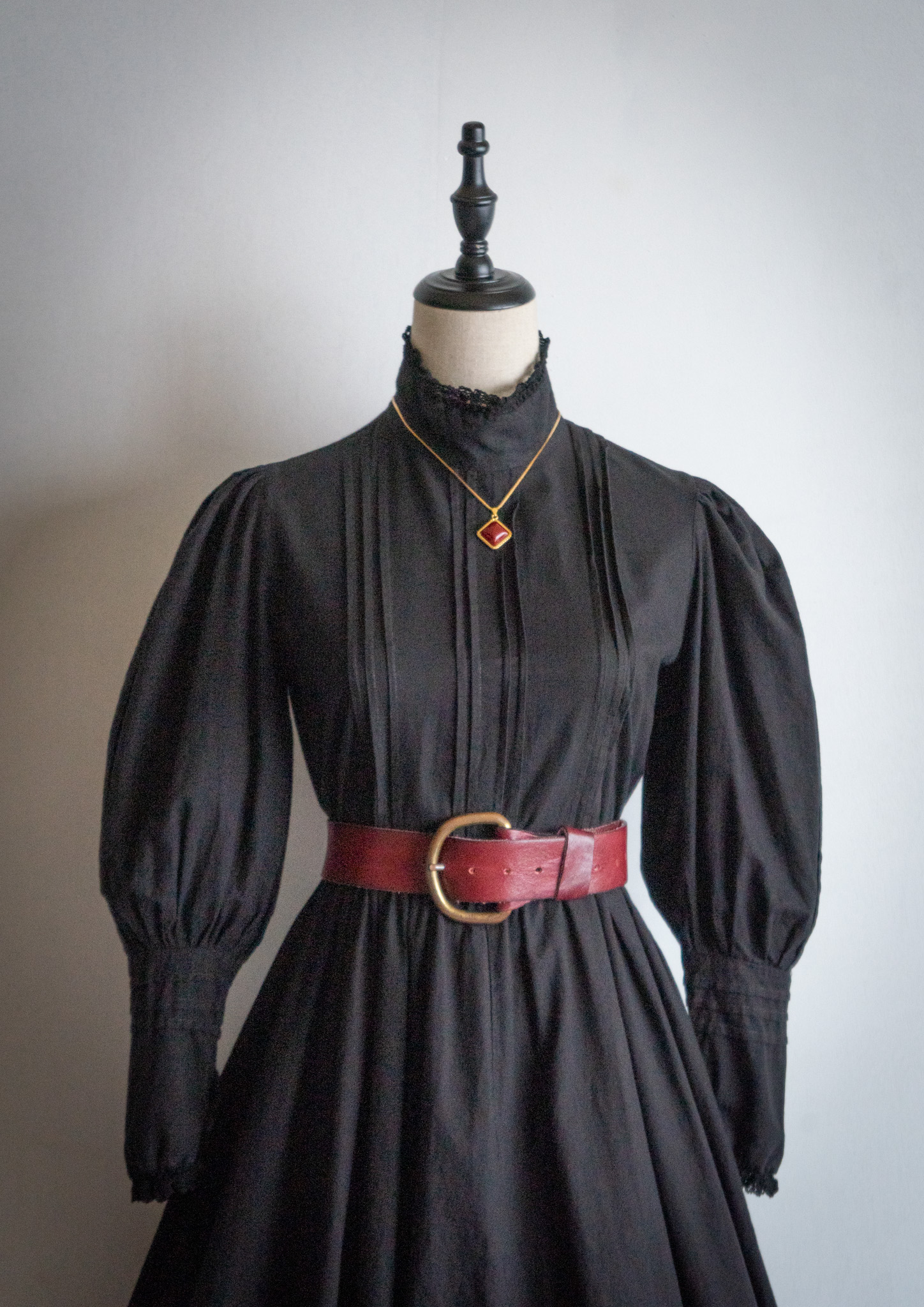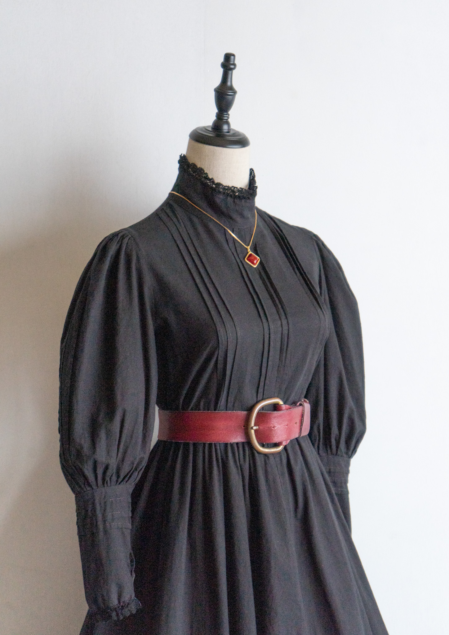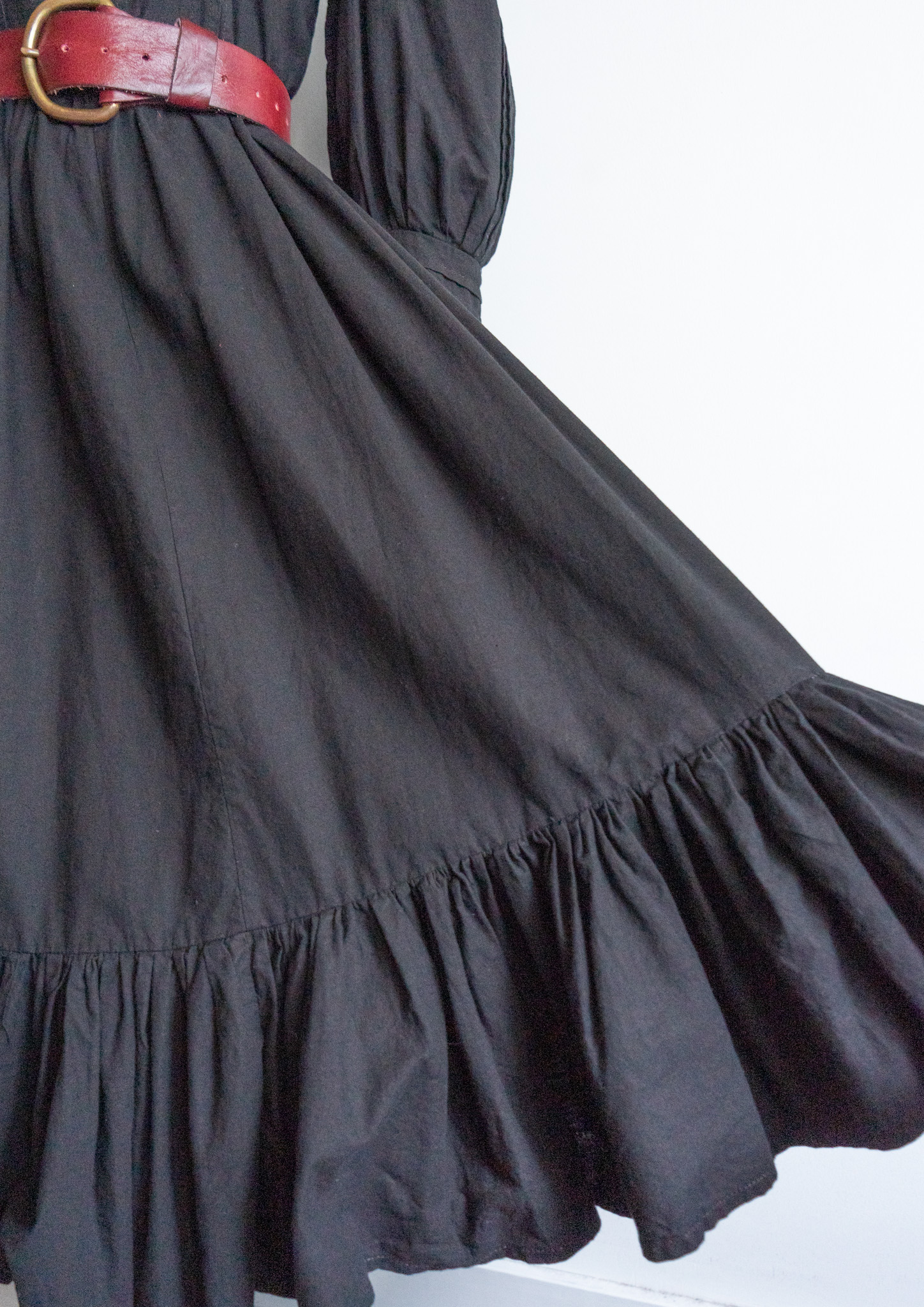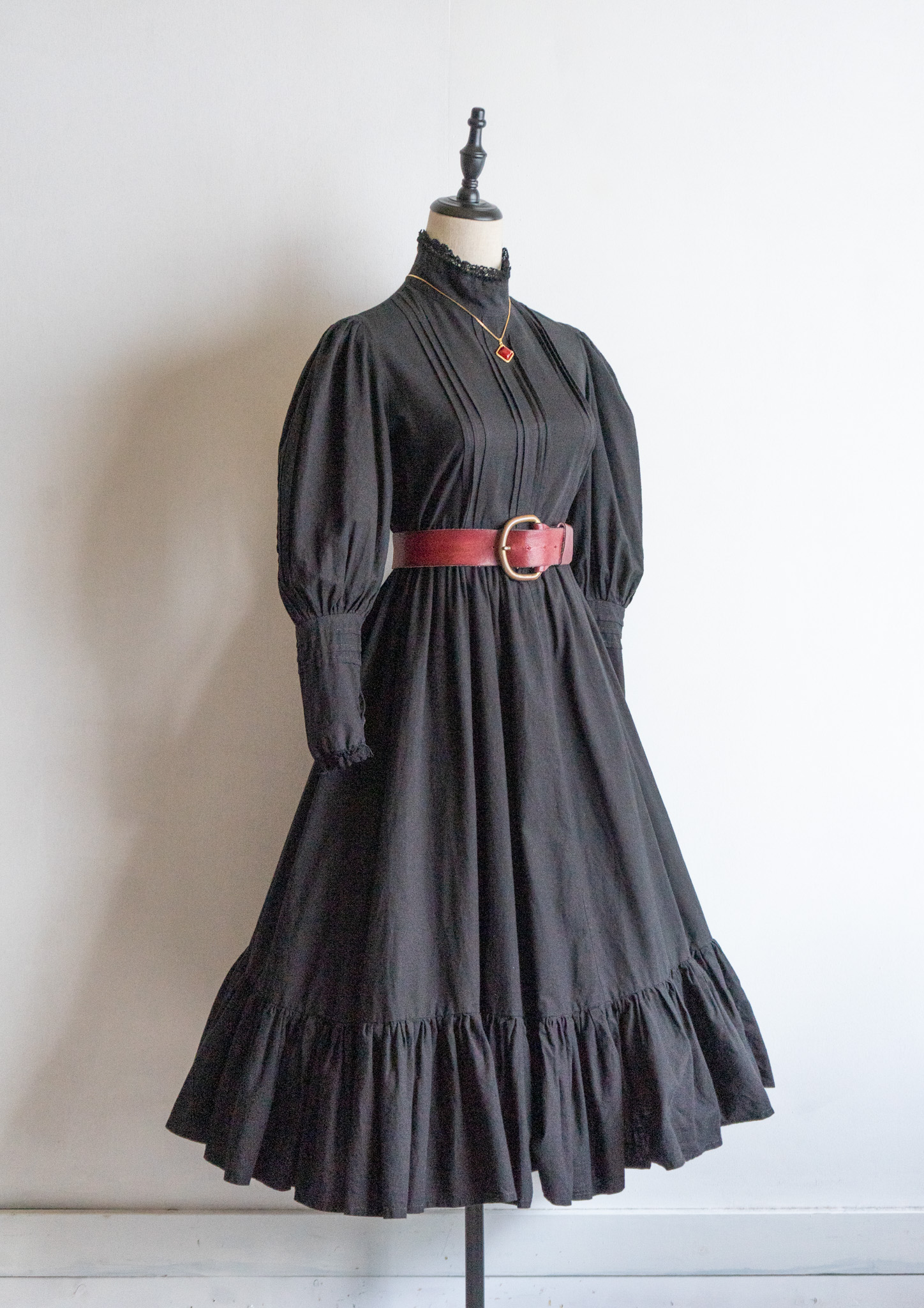70’s Laura ashley Tuck Design Overdye Black Dress