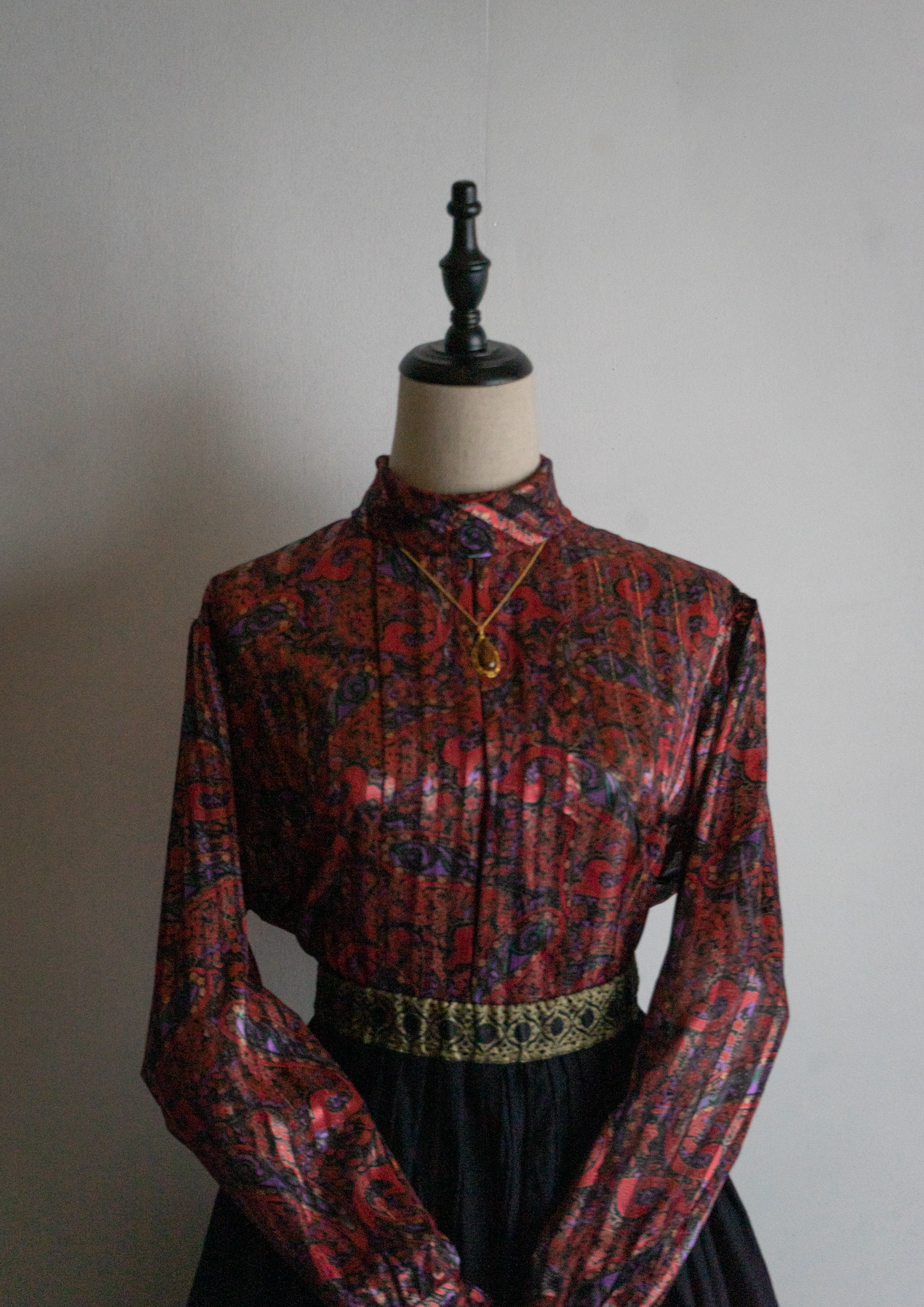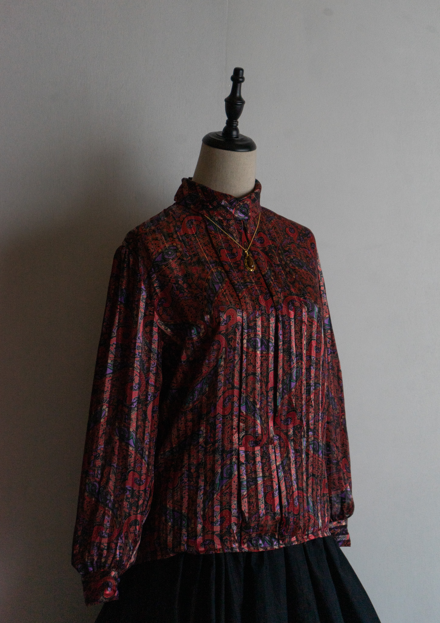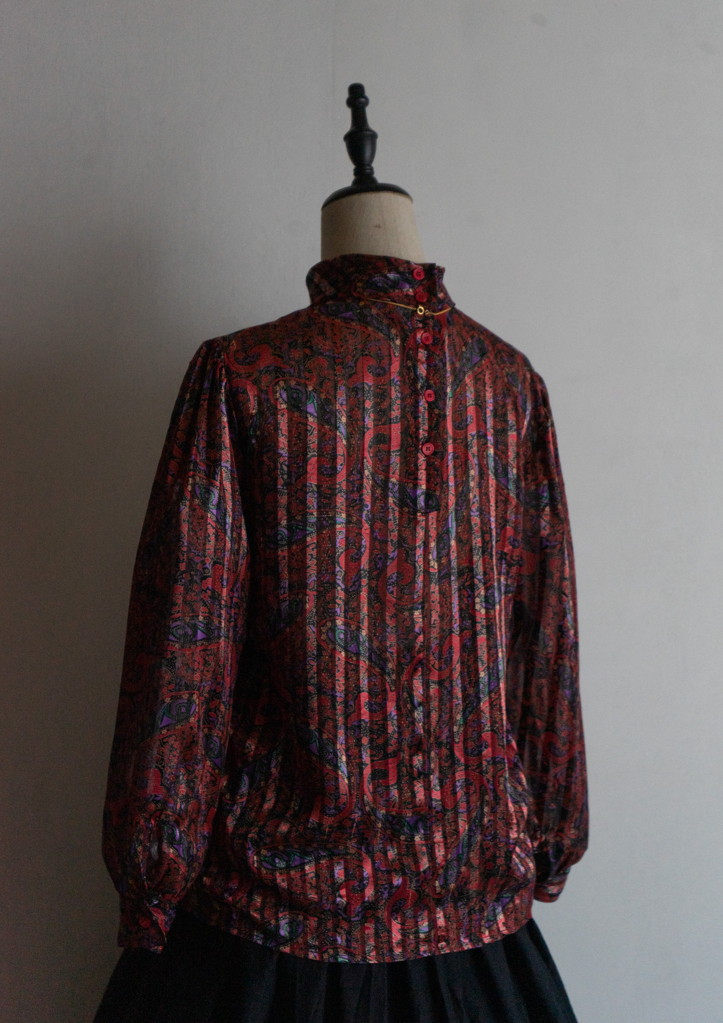 80’s Stand Collar Glossy Paisley Pattern Tops