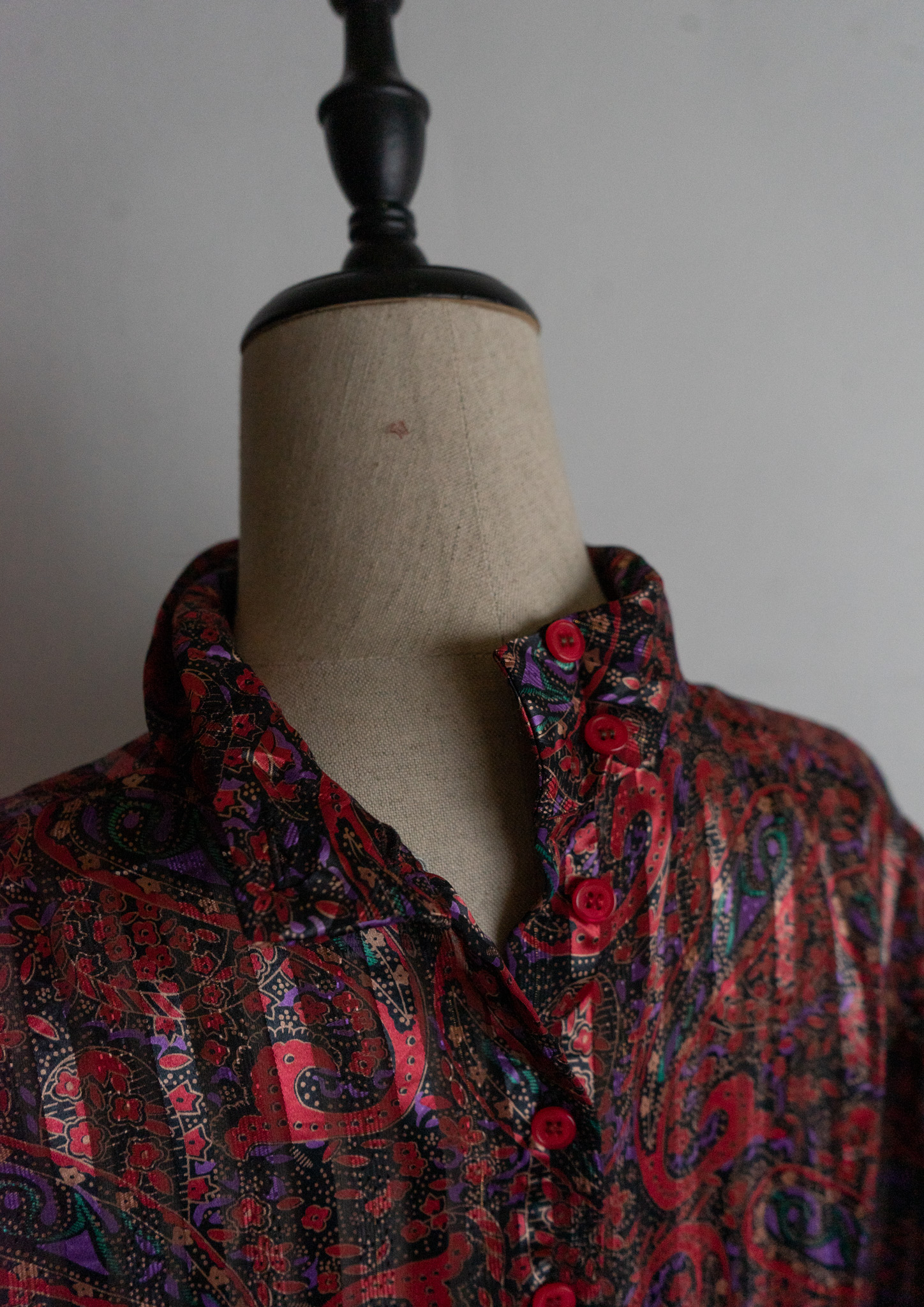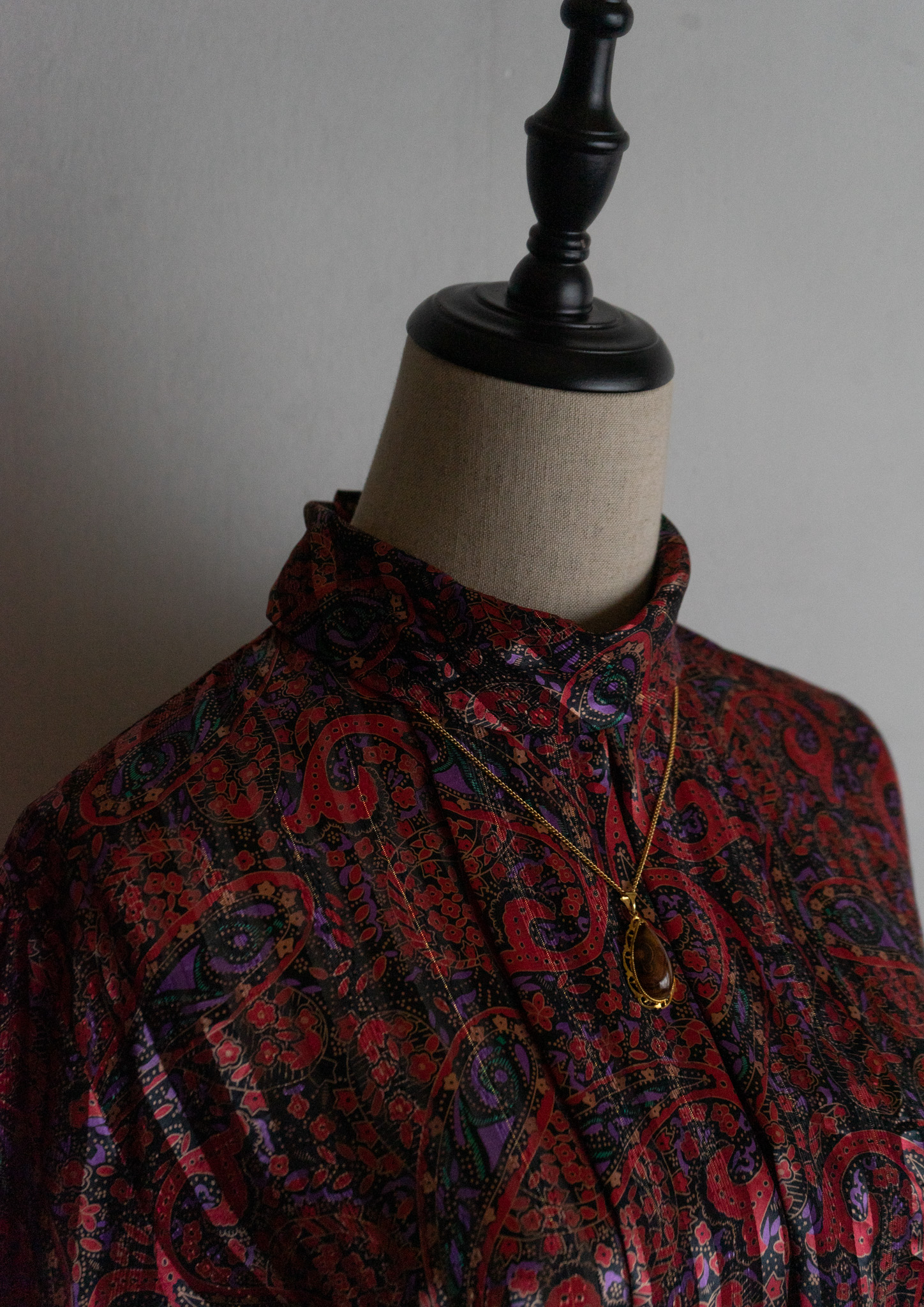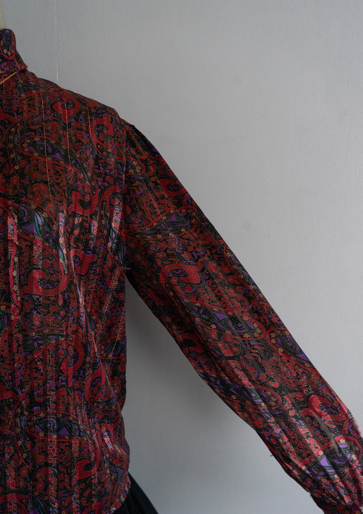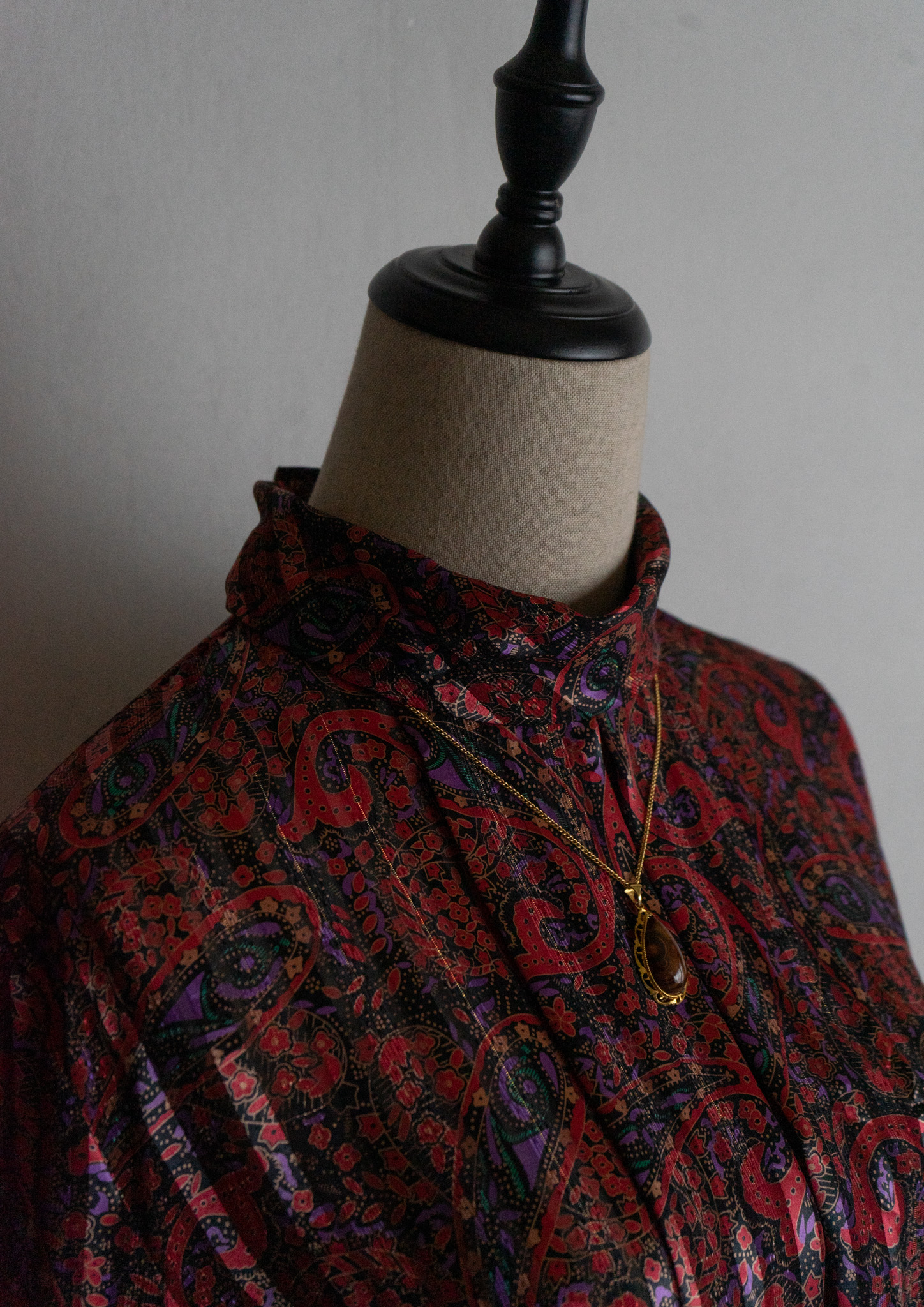 80’s Stand Collar Glossy Paisley Pattern Tops