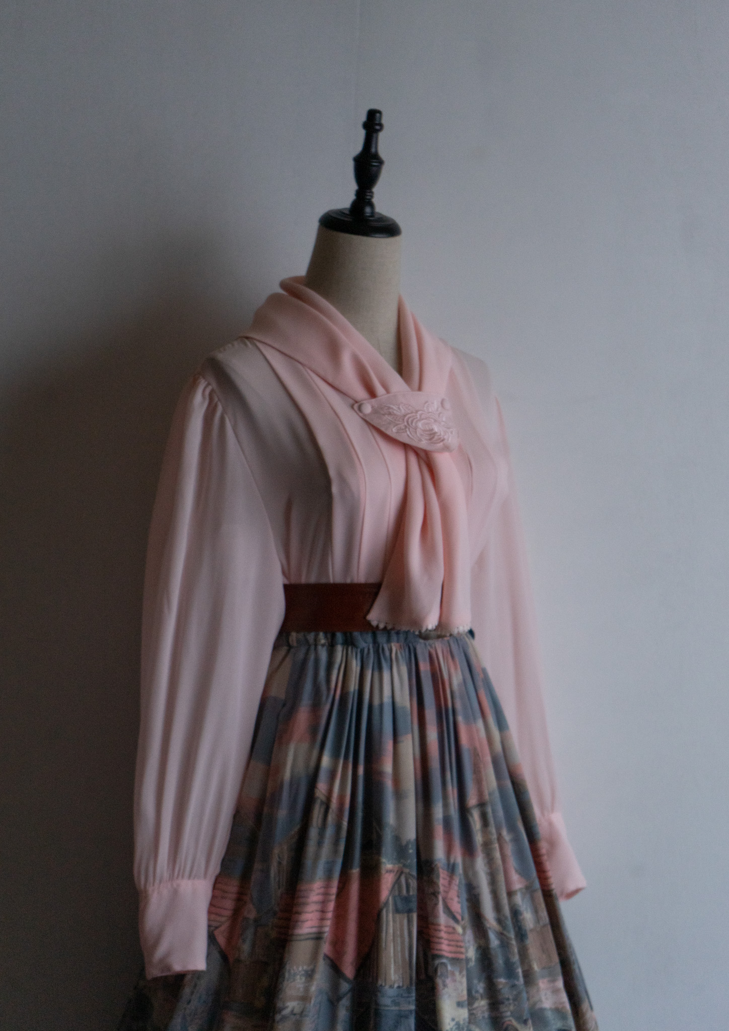 80~90's LESLIE FAY Peplum Design Colorful Botanical Pattern Blouse