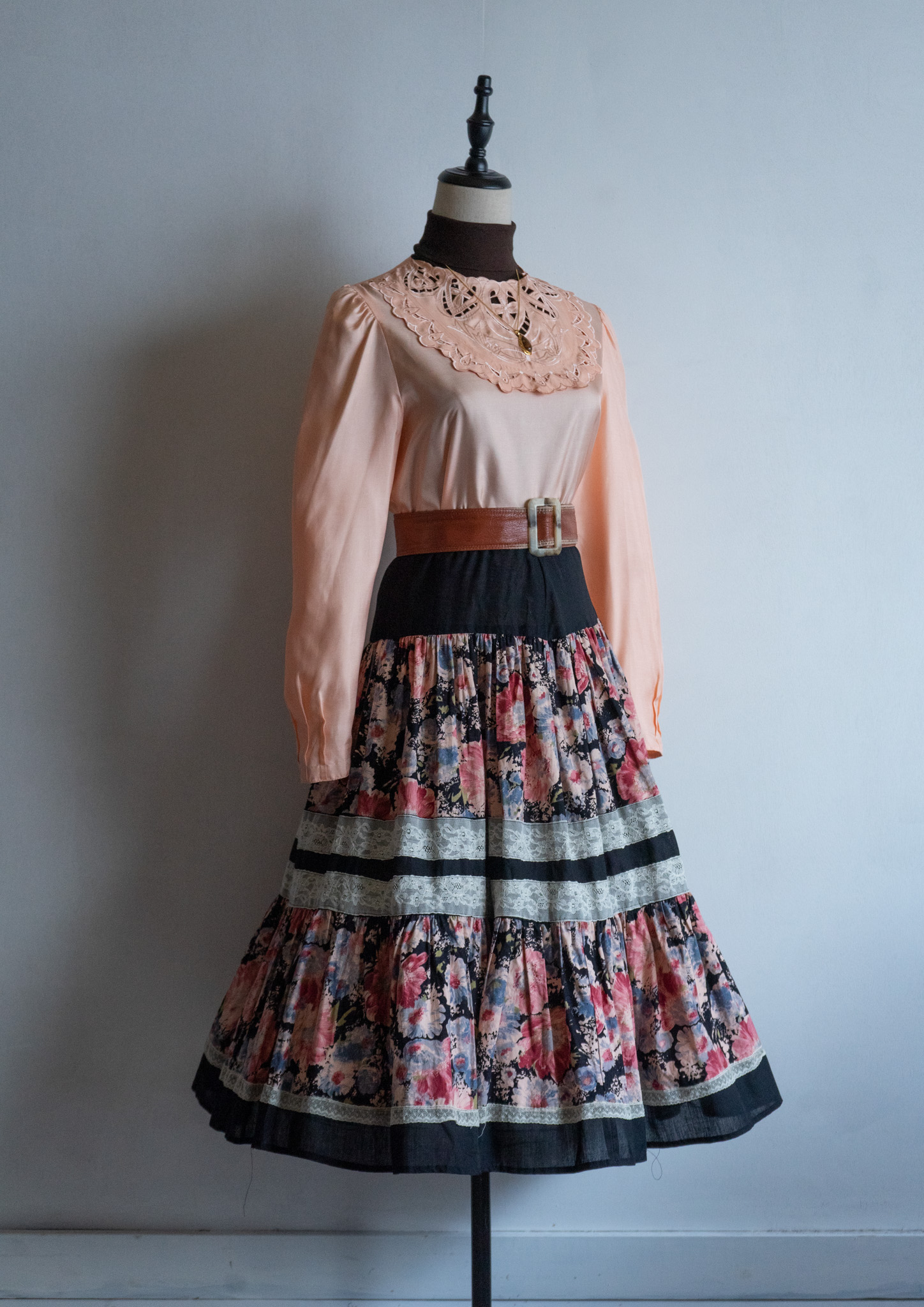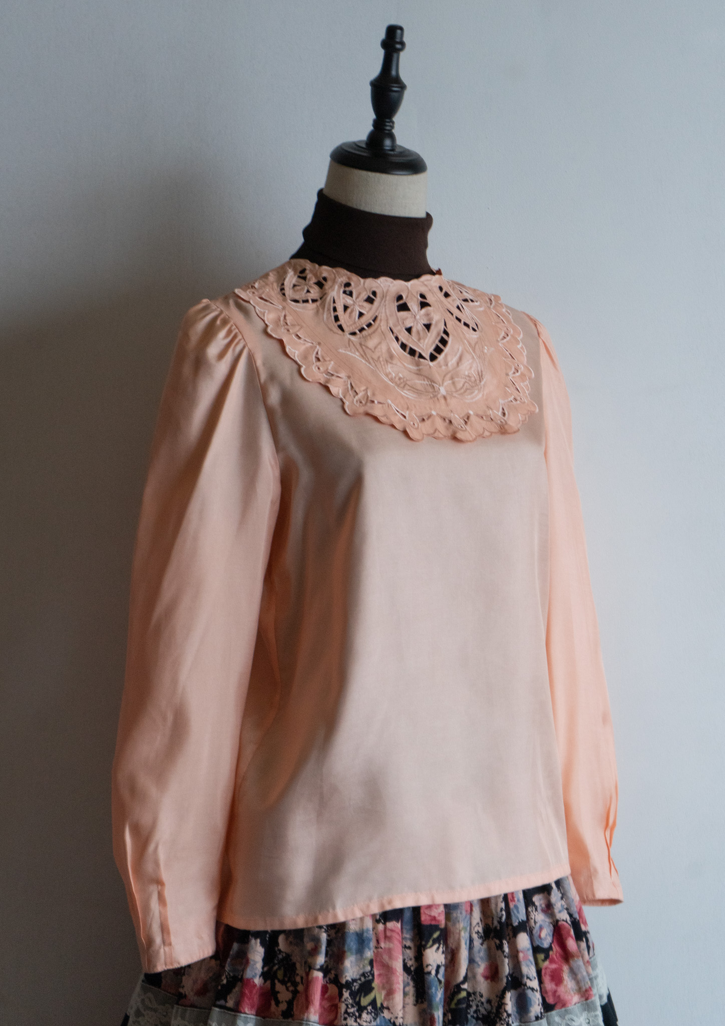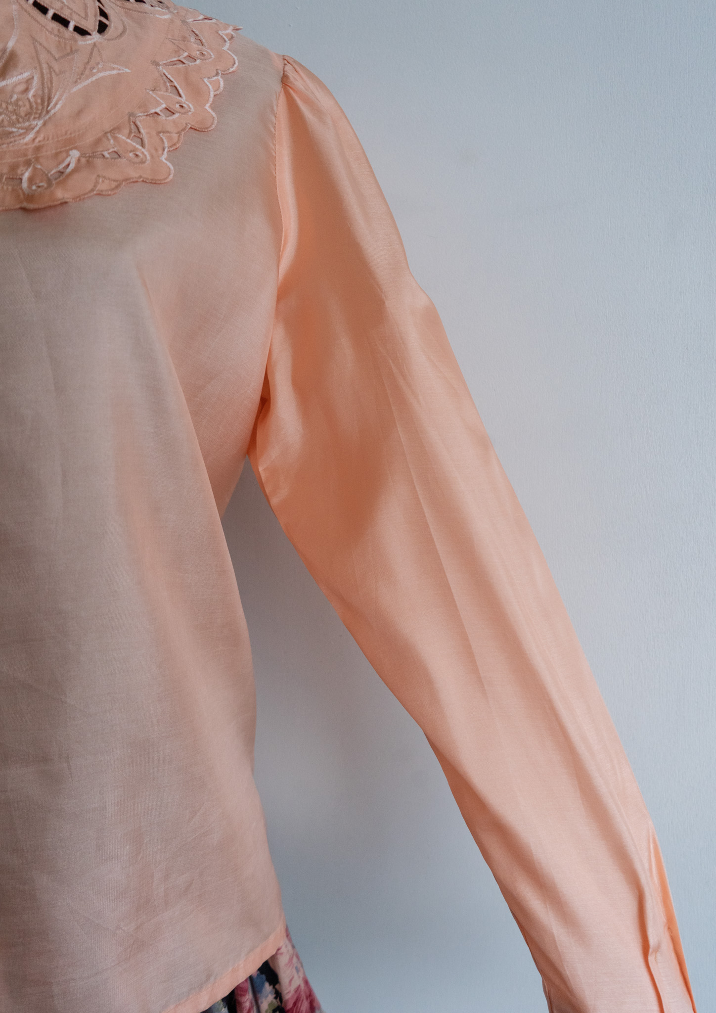 80~90's LESLIE FAY Peplum Design Colorful Botanical Pattern Blouse