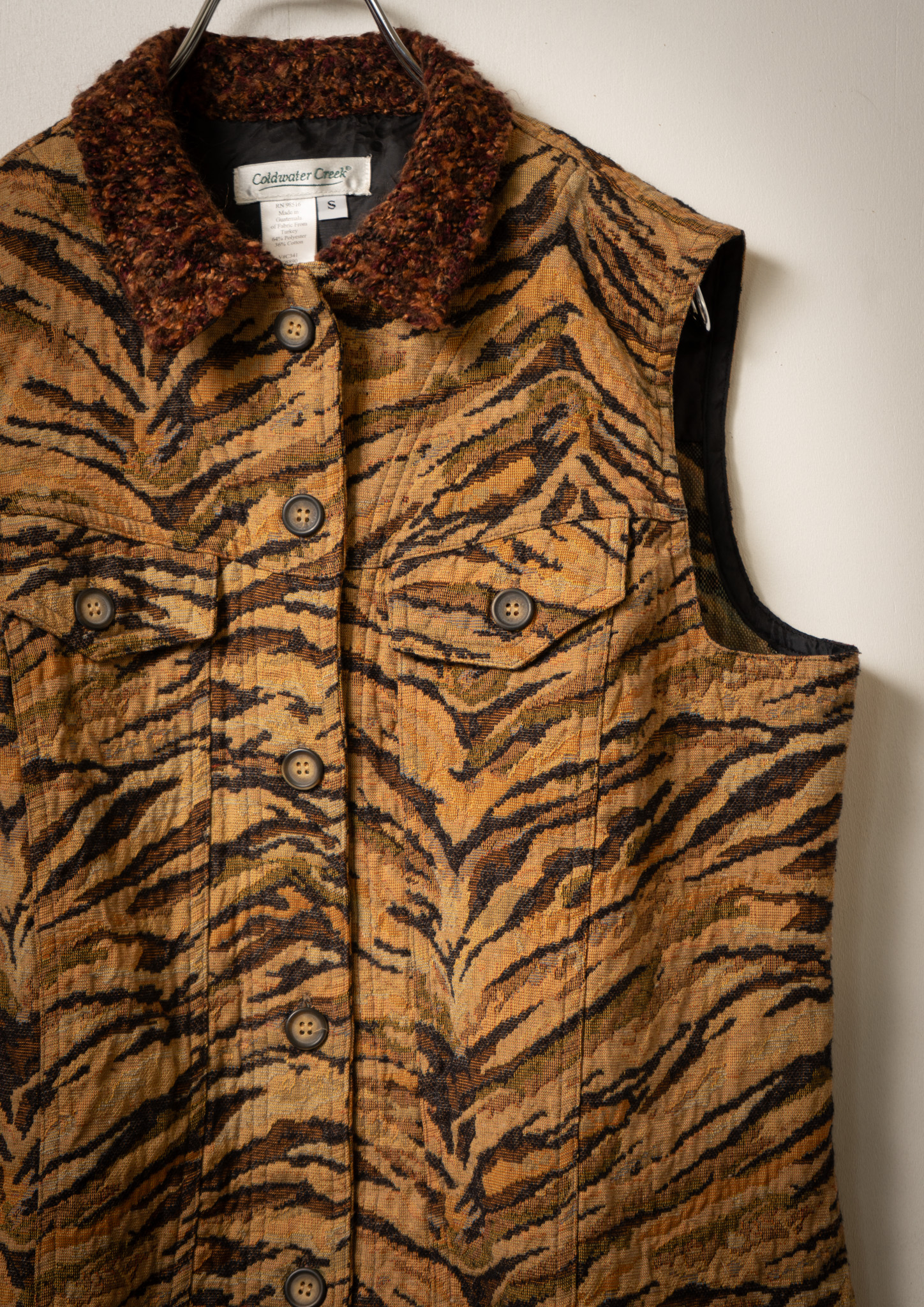 90's Tiger Like Pattern Brown Vest