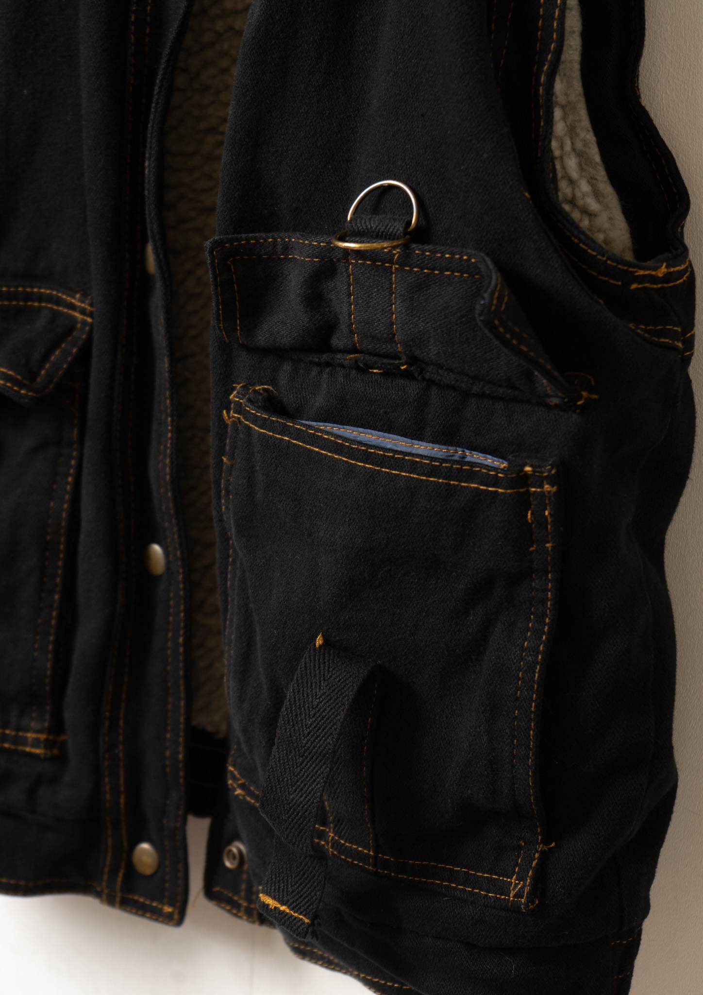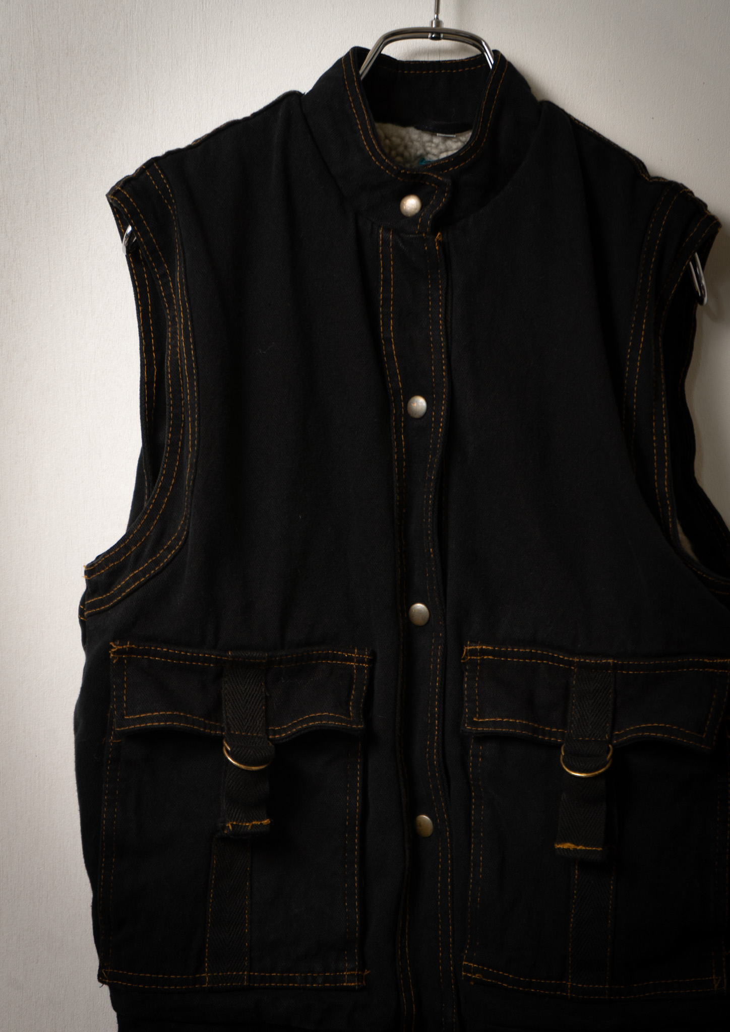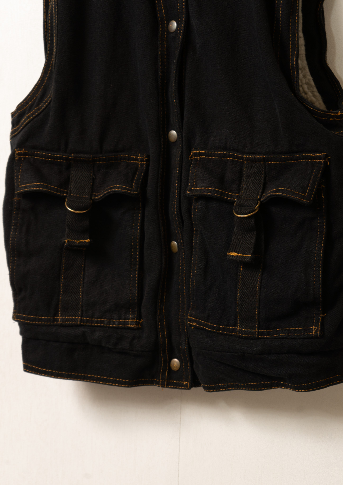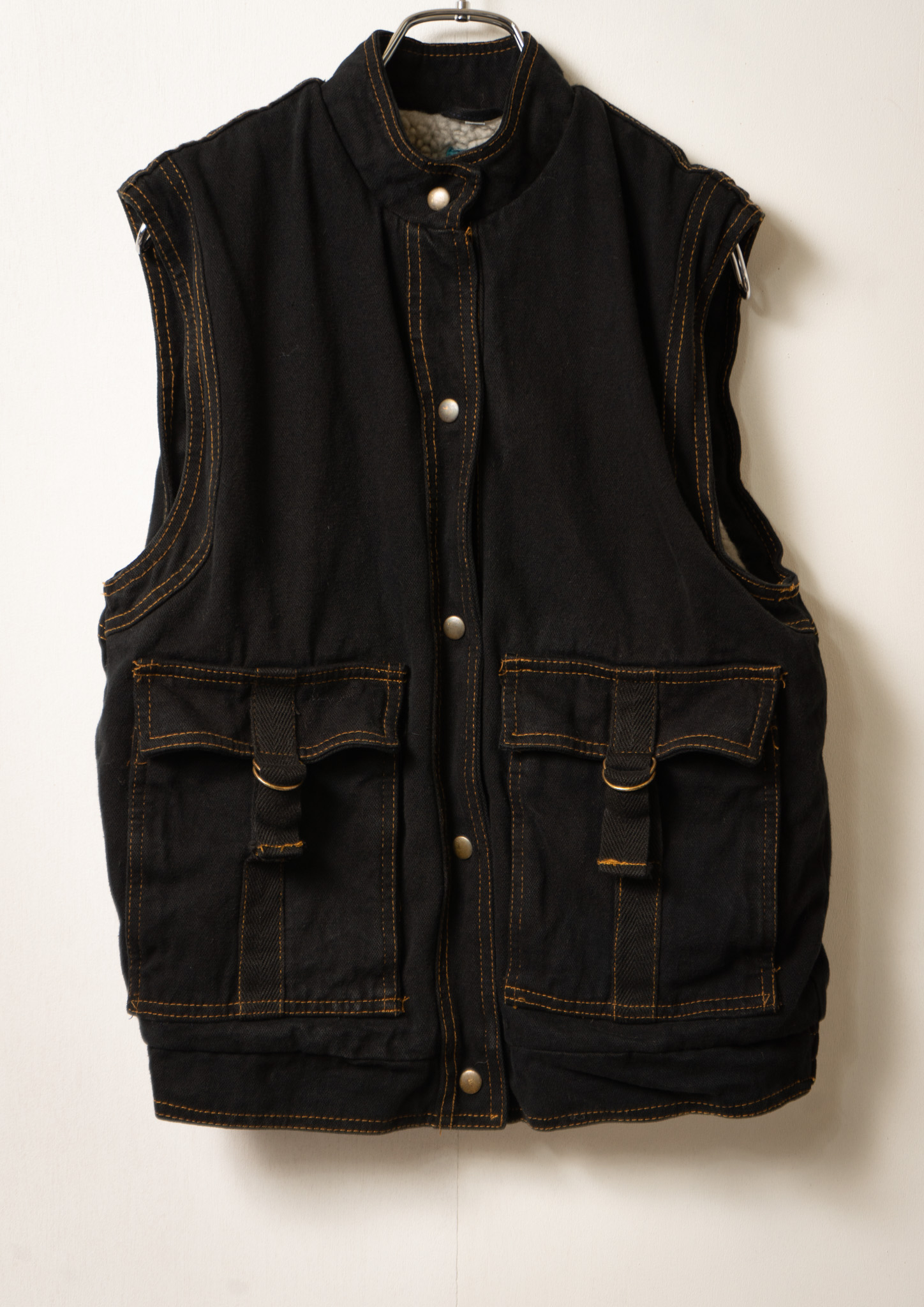 80's Yellow Stitch Black Over dye Denim Vest