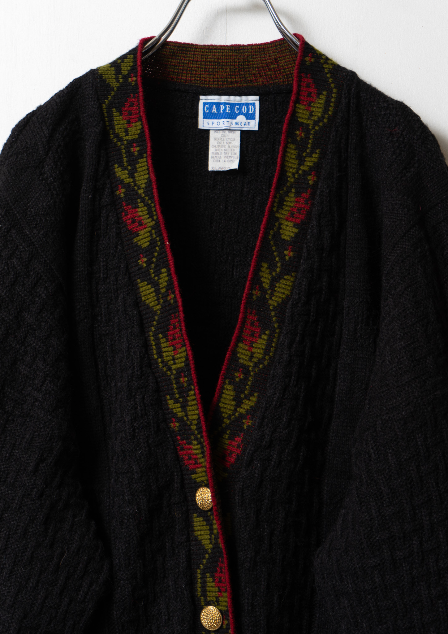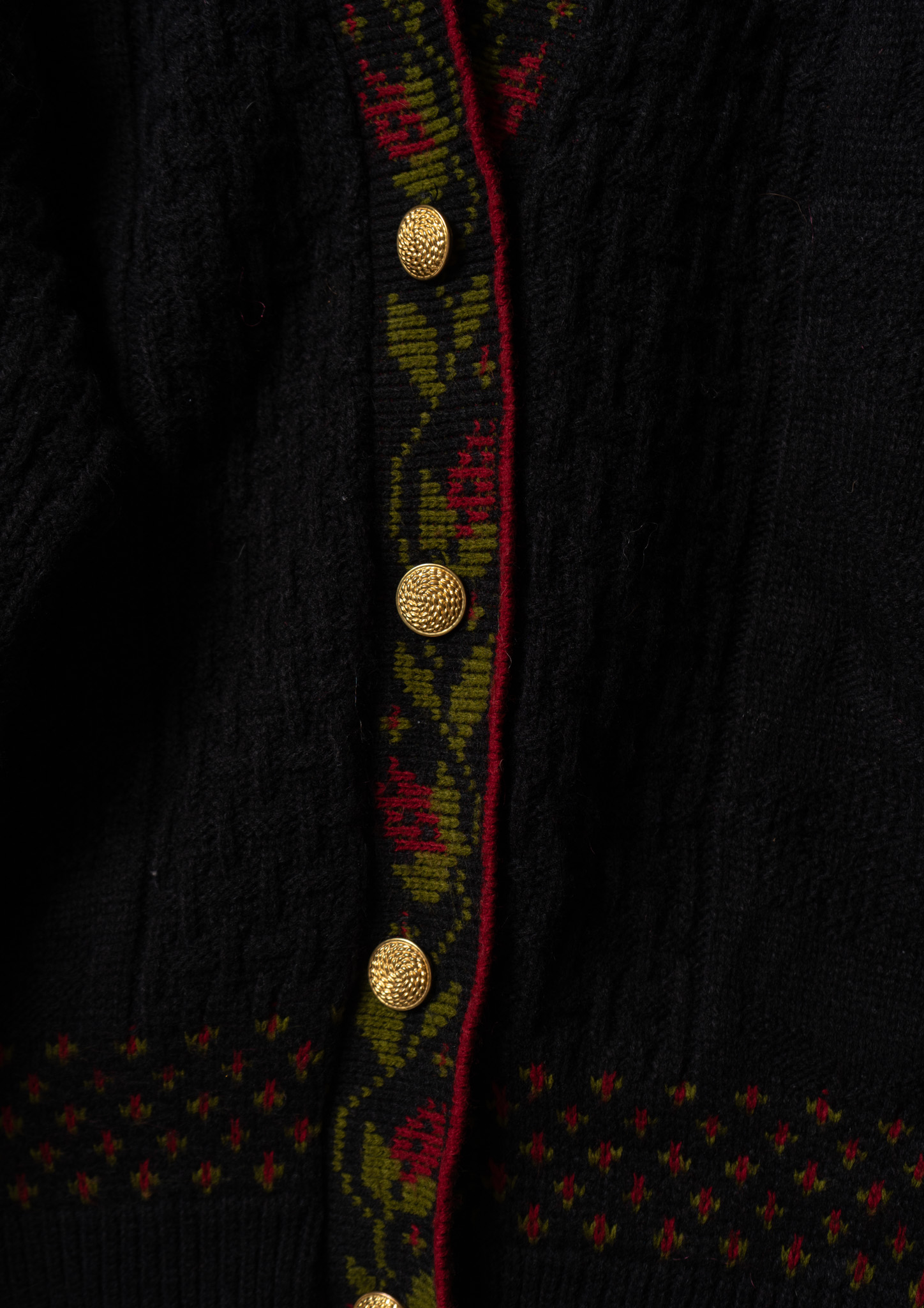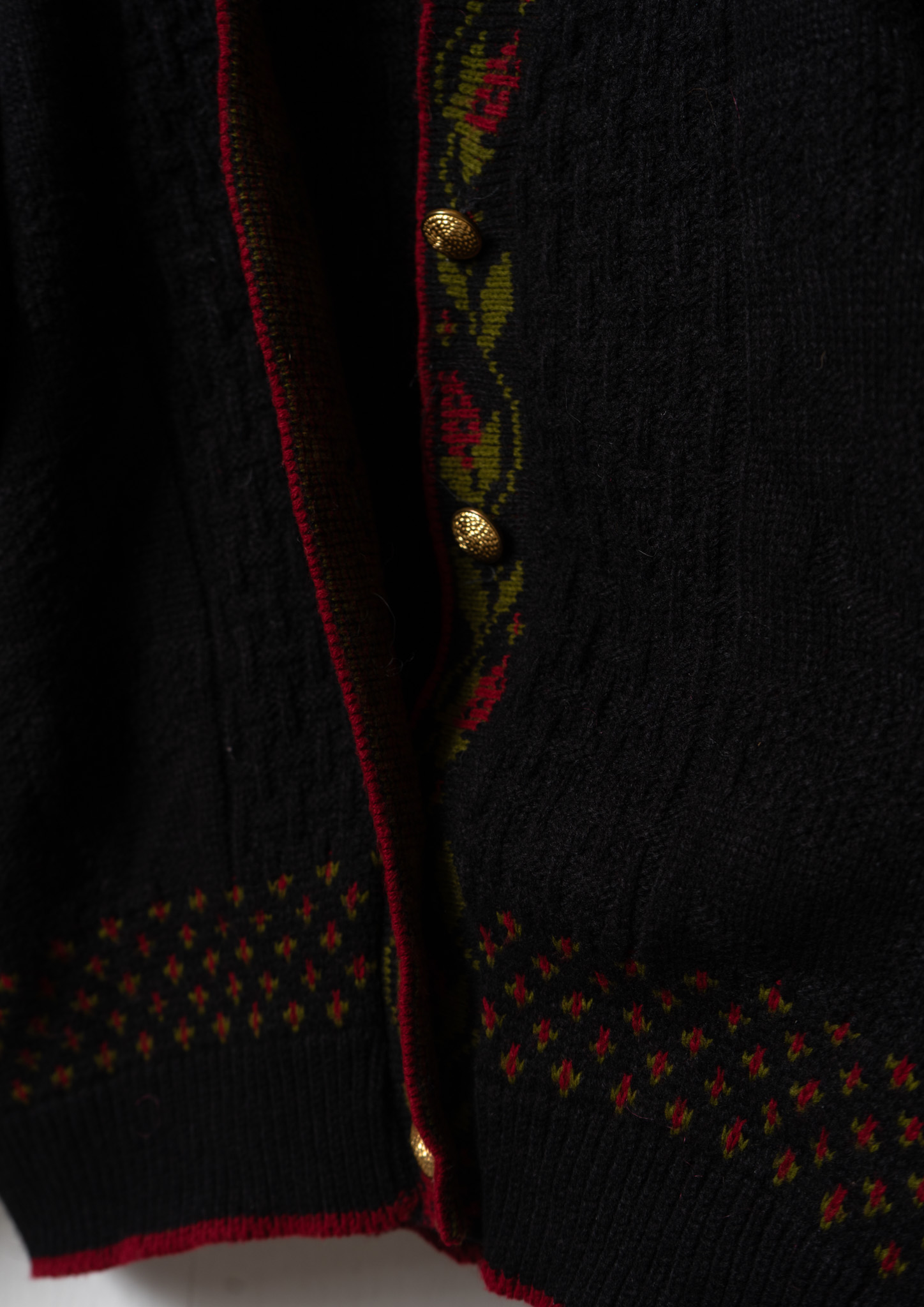 80's Austria Heat Tyrol Button Design Green × Black Knit Tyrol Cardigan