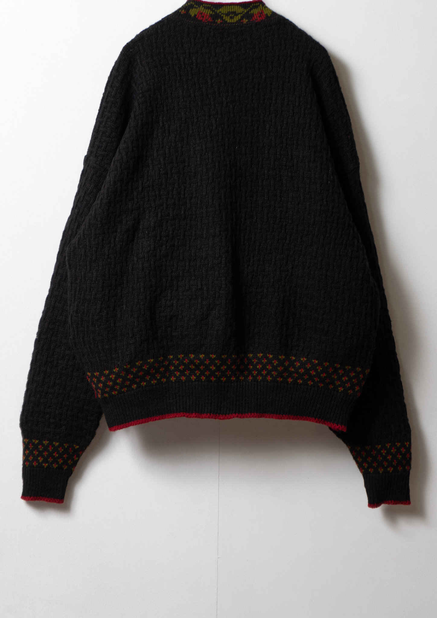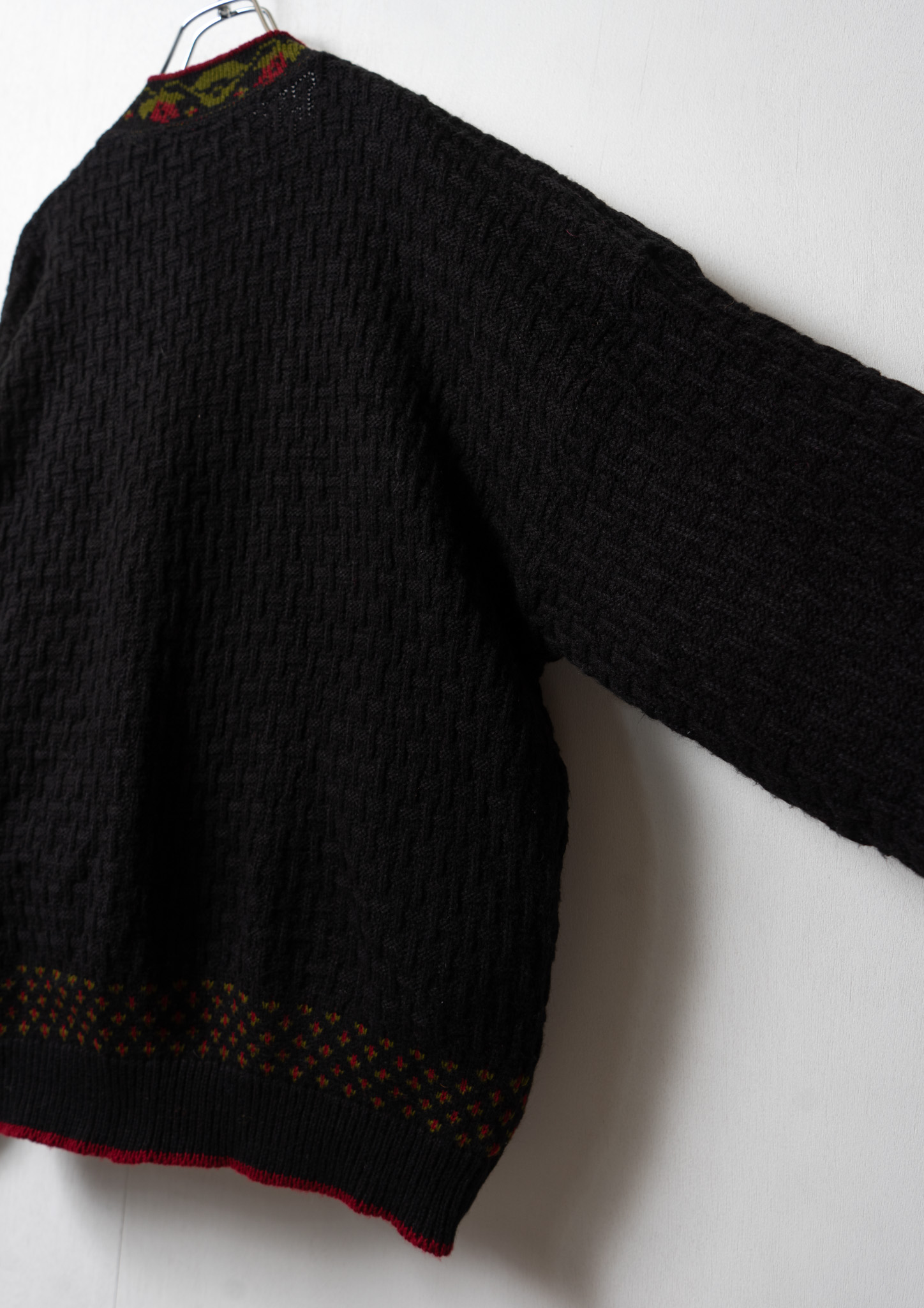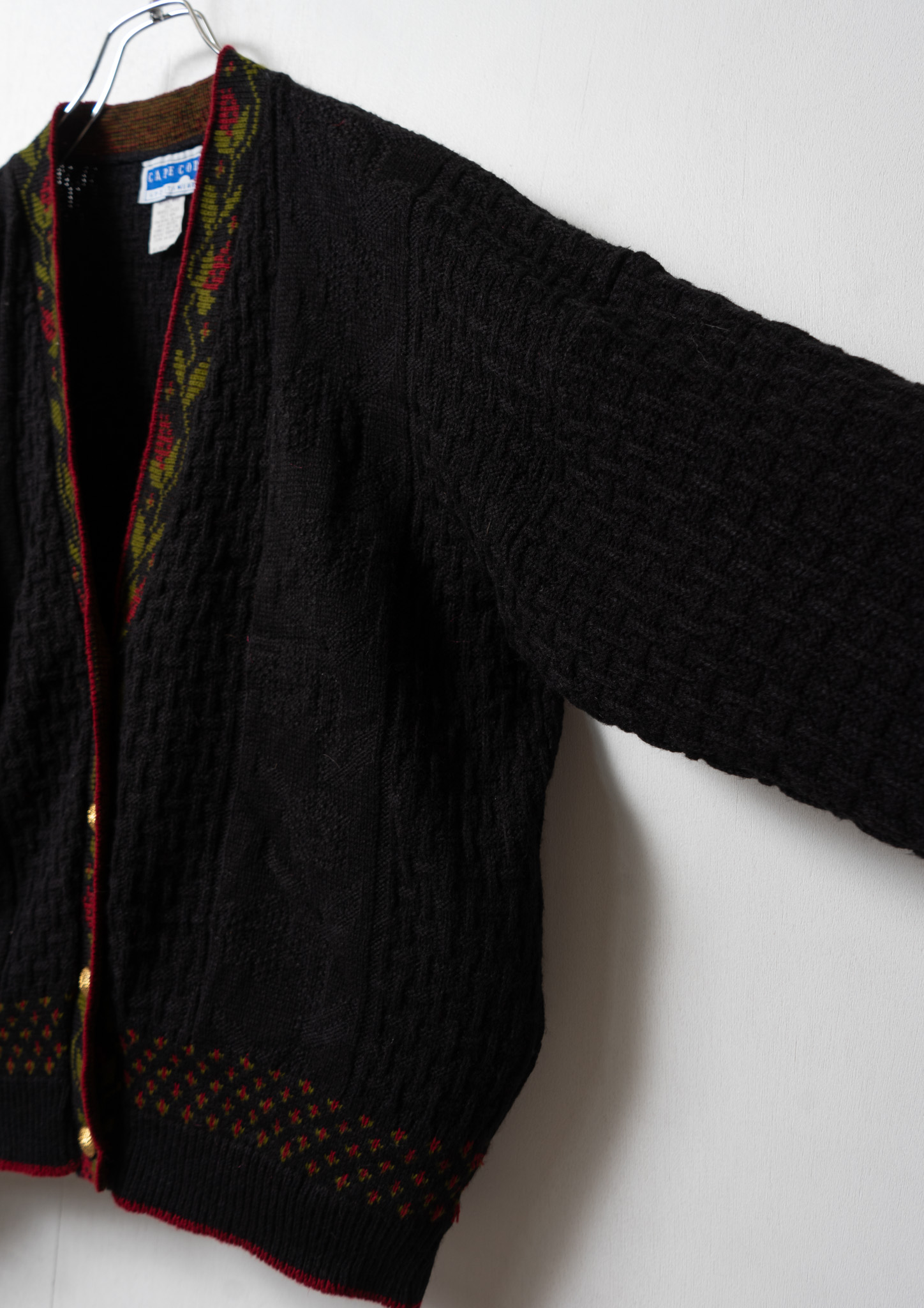 80's Austria Heat Tyrol Button Design Green × Black Knit Tyrol Cardigan
