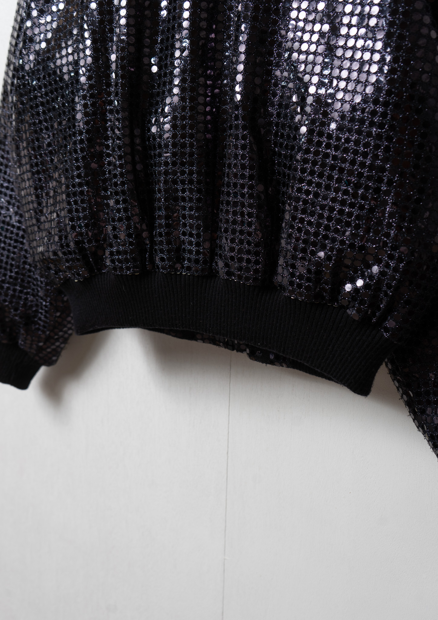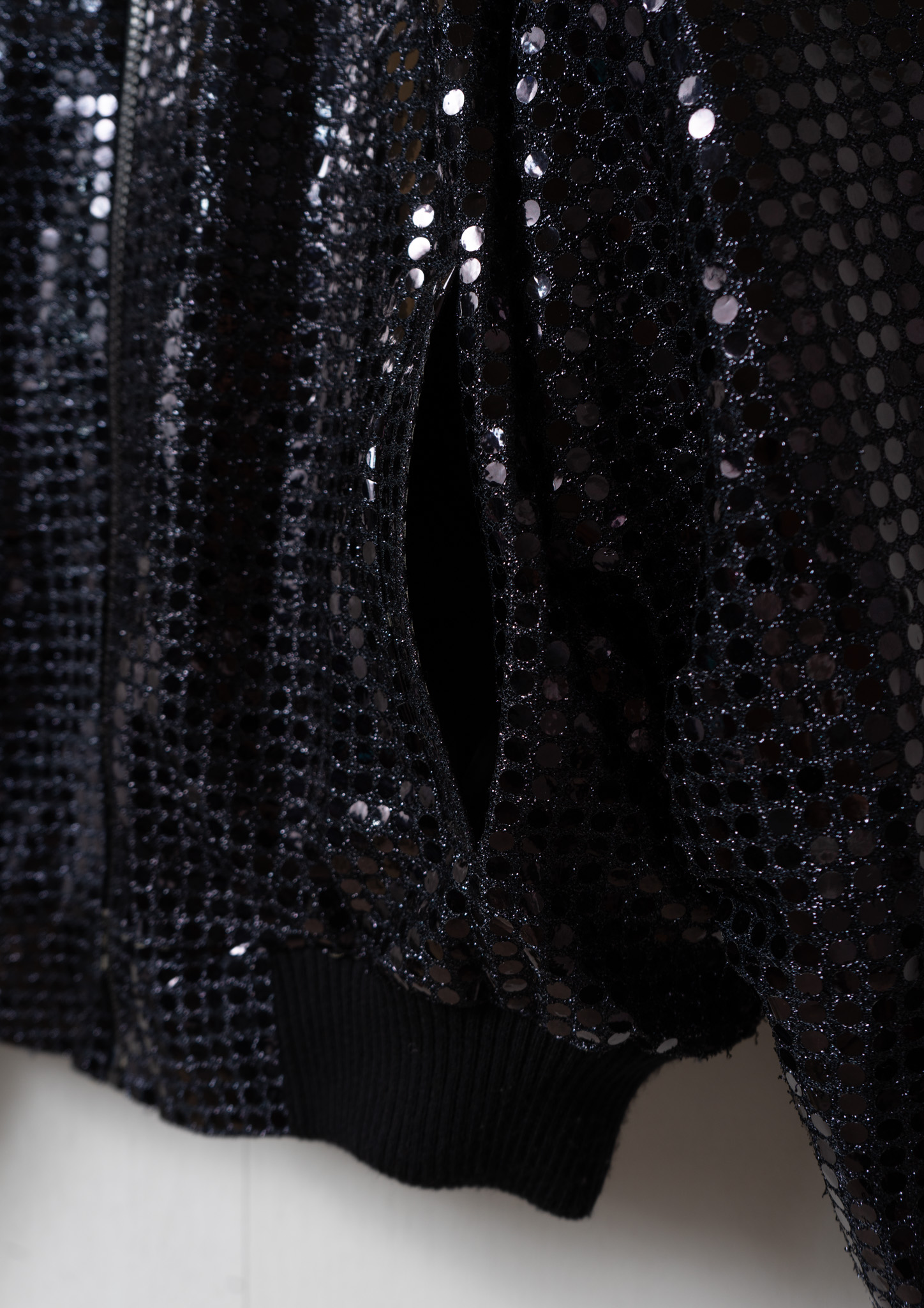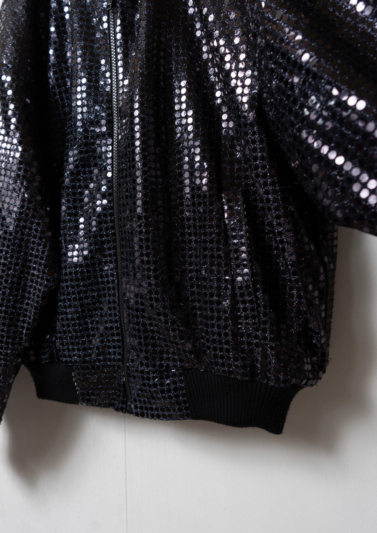 80's Double Pocket Design Point Leopard Pattern Black Wool Jacket