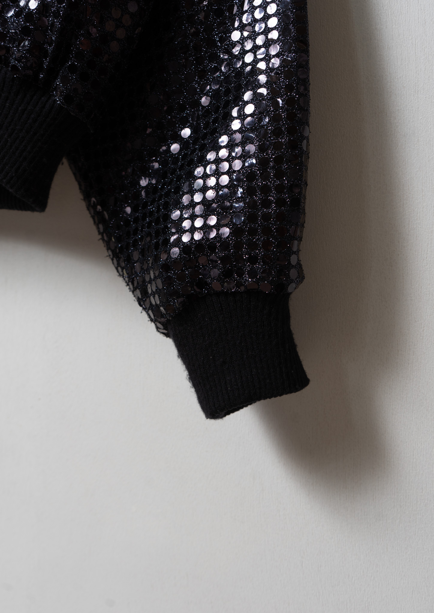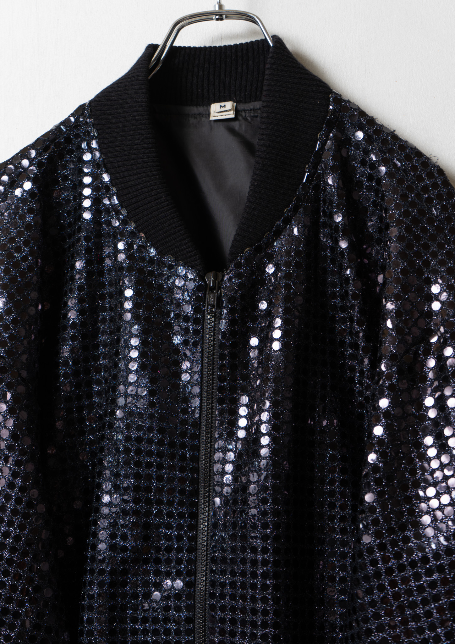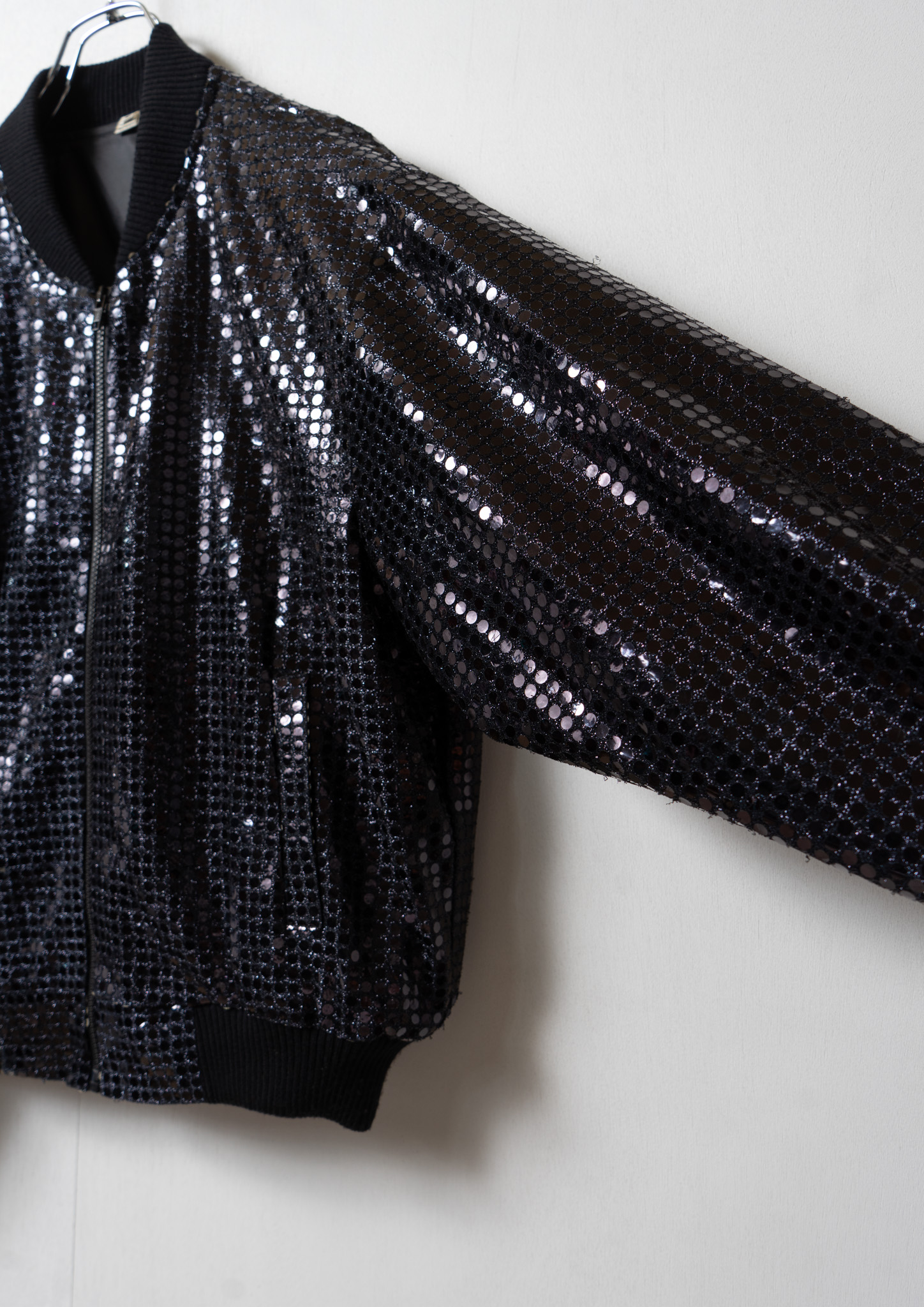80's Double Pocket Design Point Leopard Pattern Black Wool Jacket