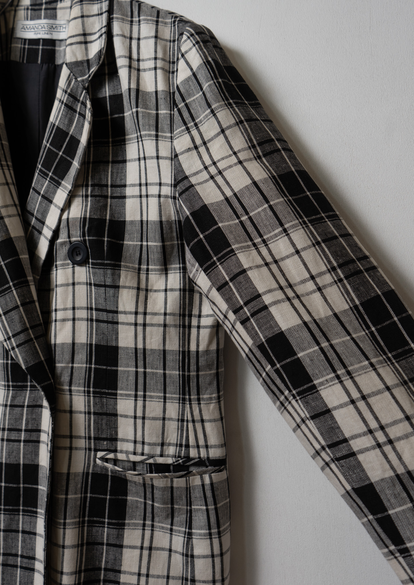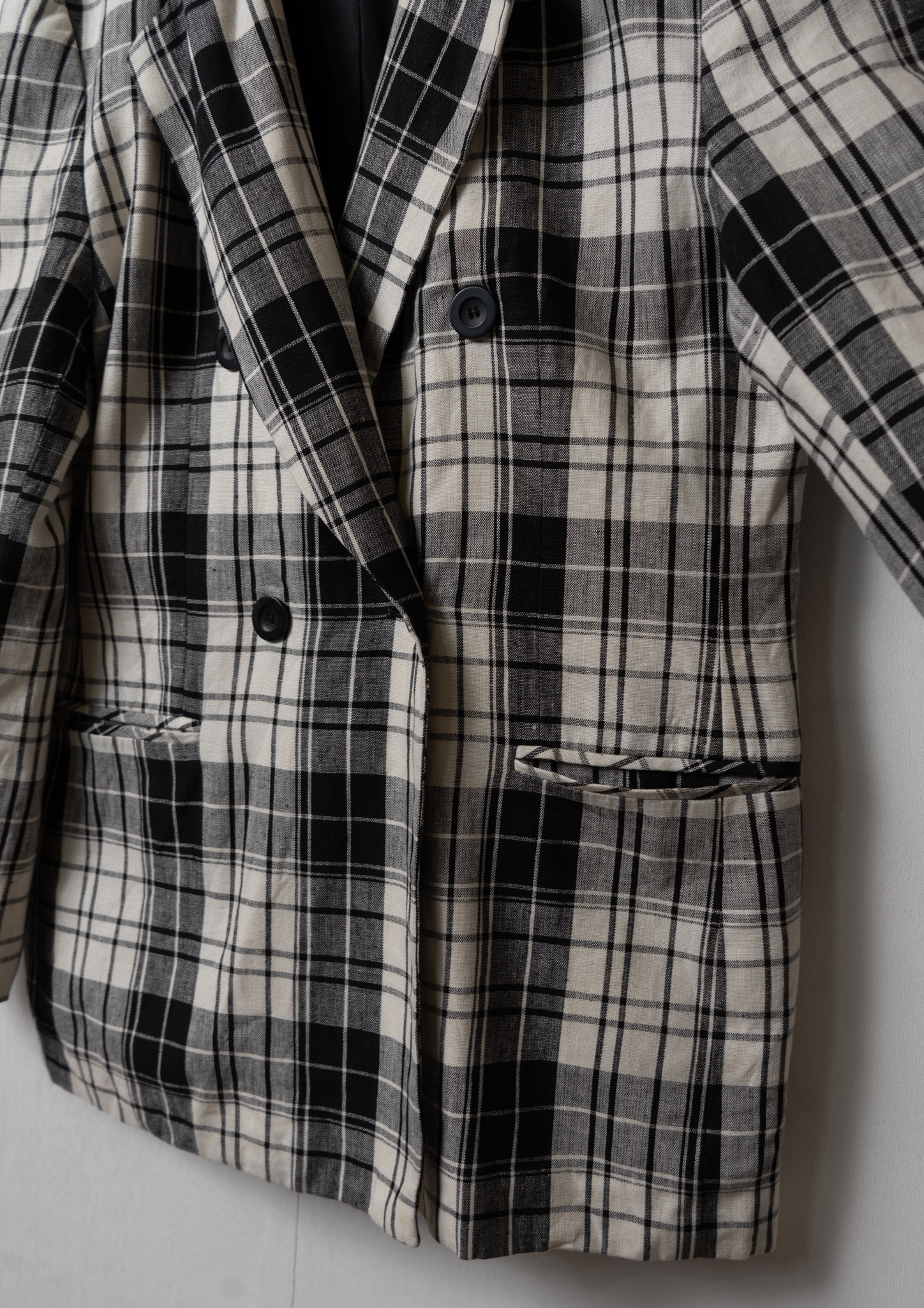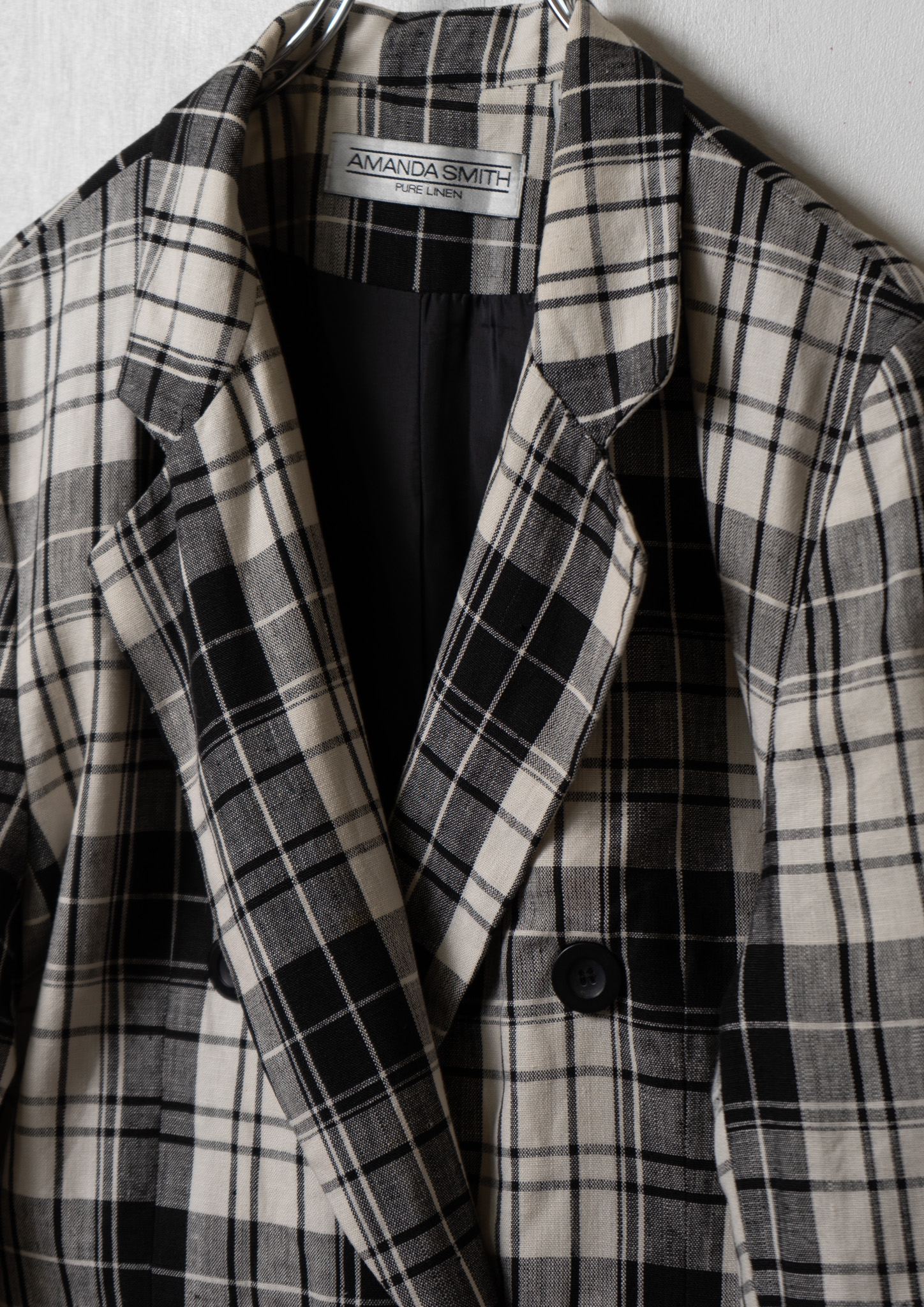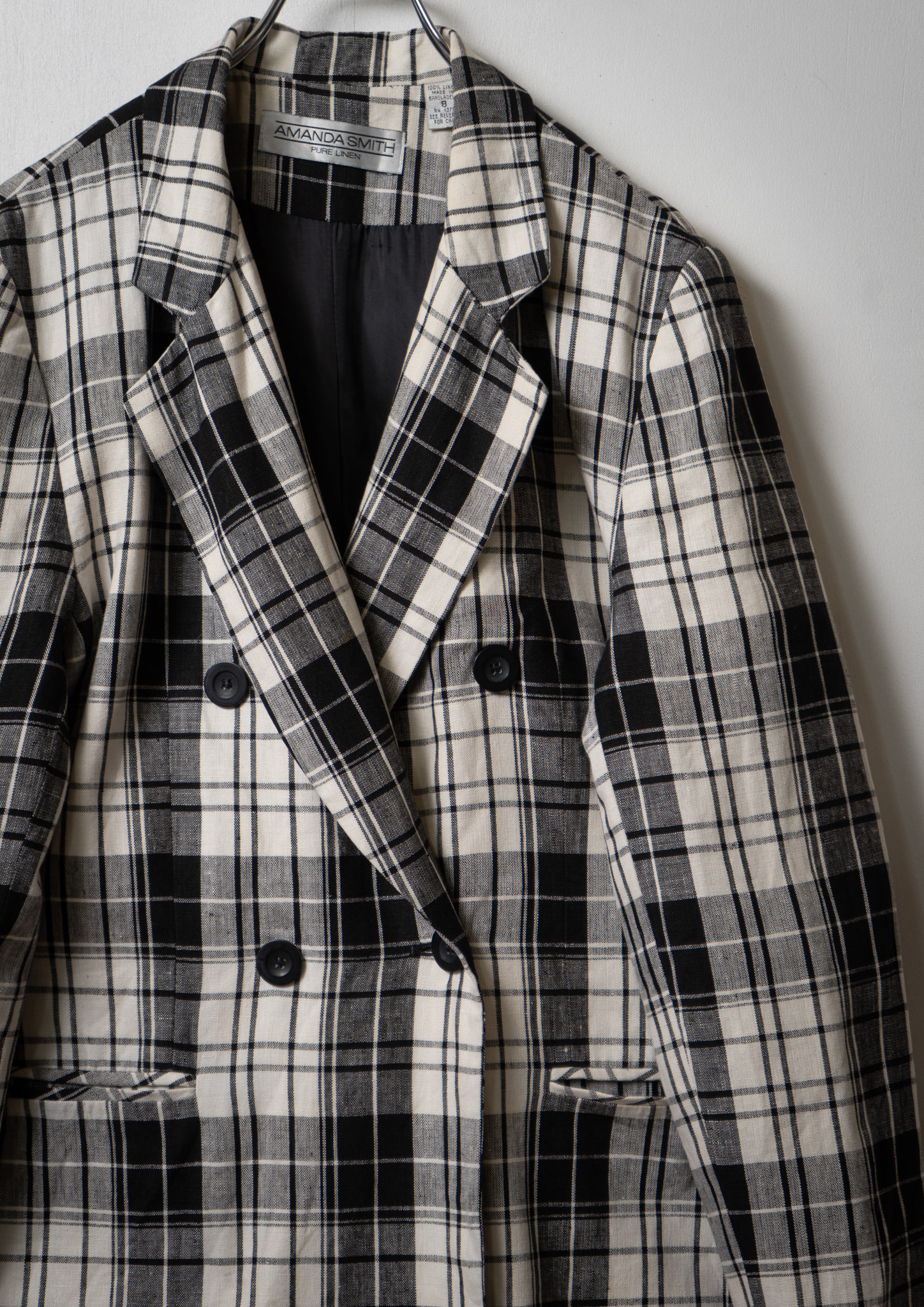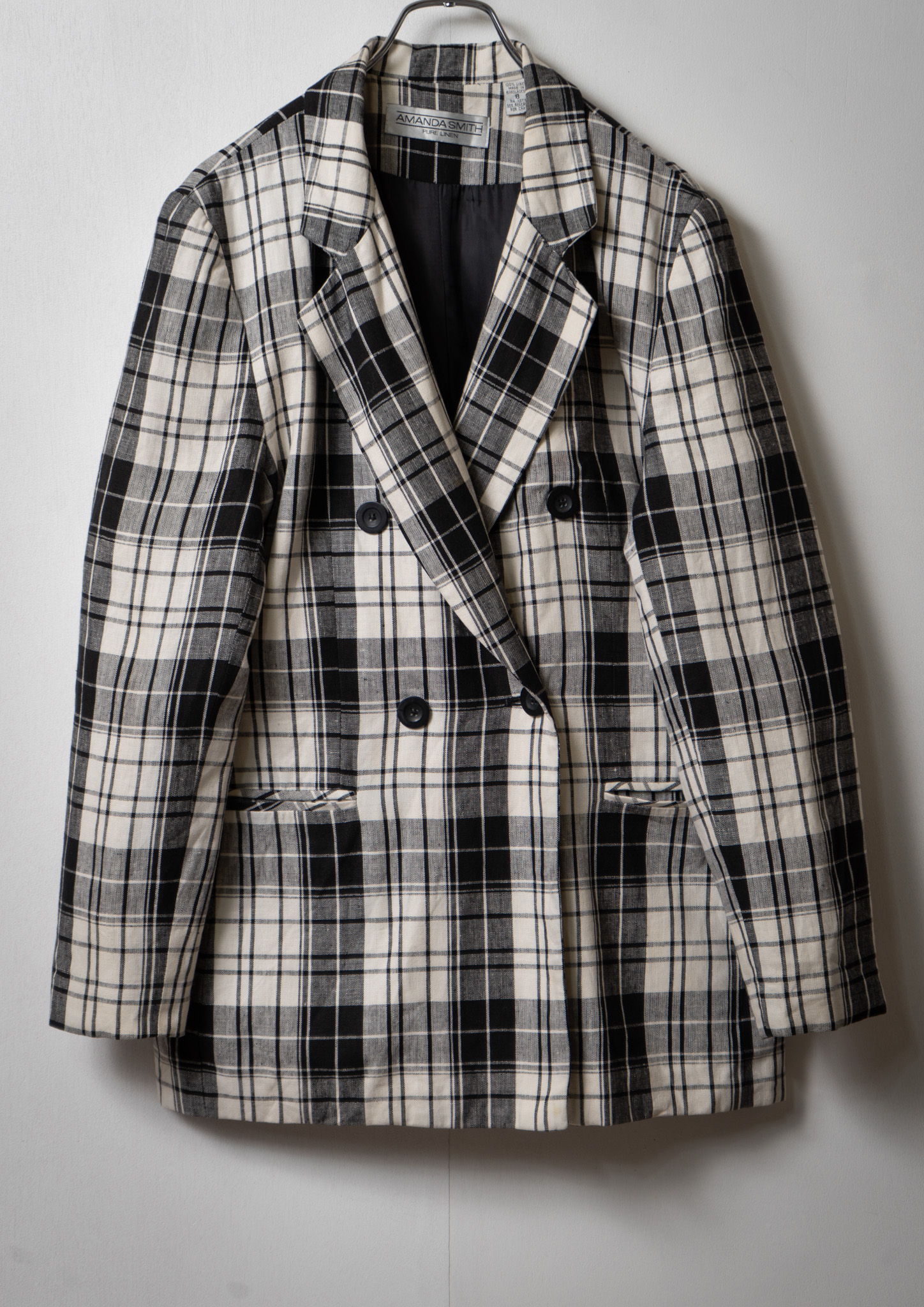 80's Double Pocket Design Point Leopard Pattern Black Wool Jacket
