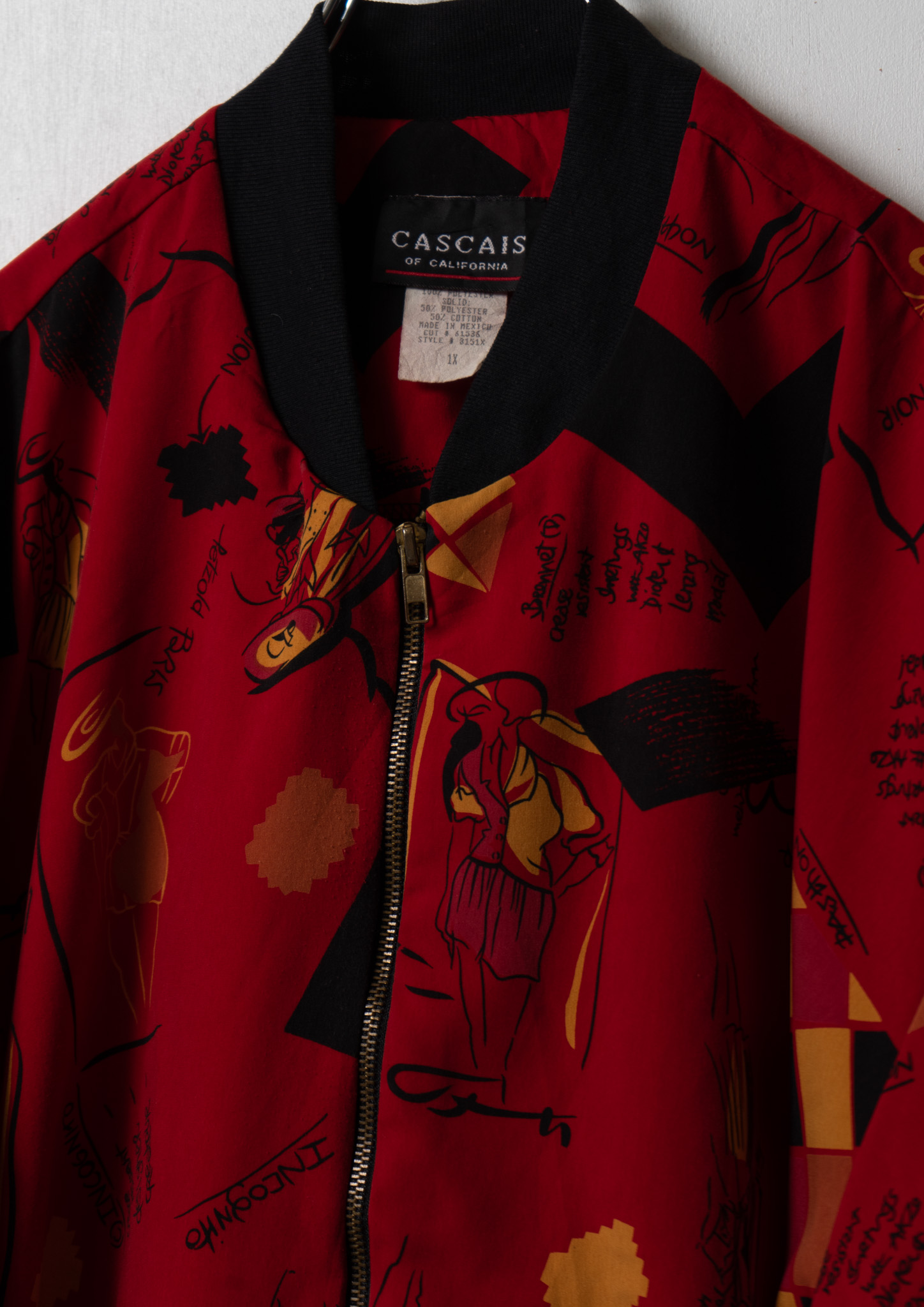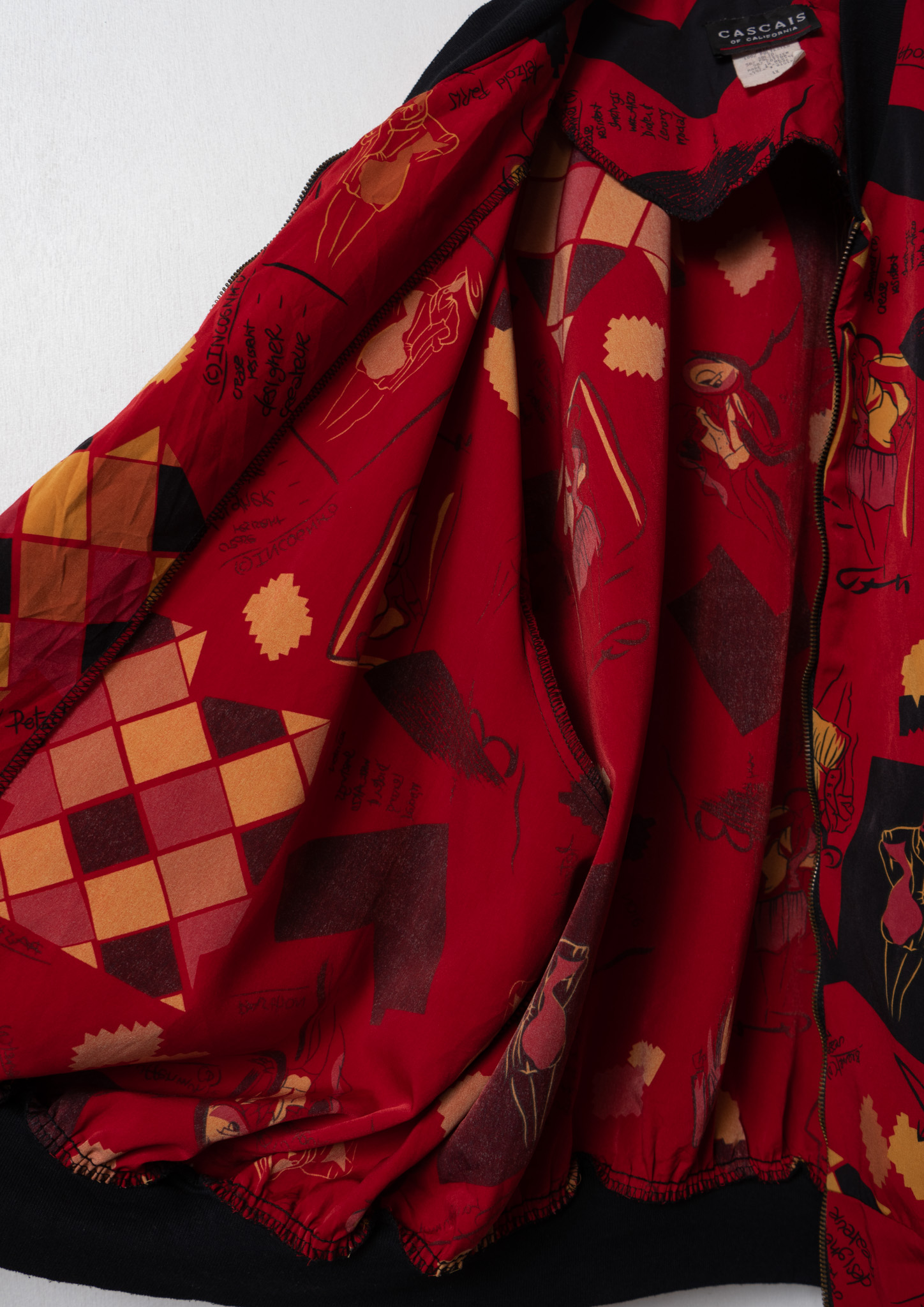 80's Double Pocket Design Point Leopard Pattern Black Wool Jacket