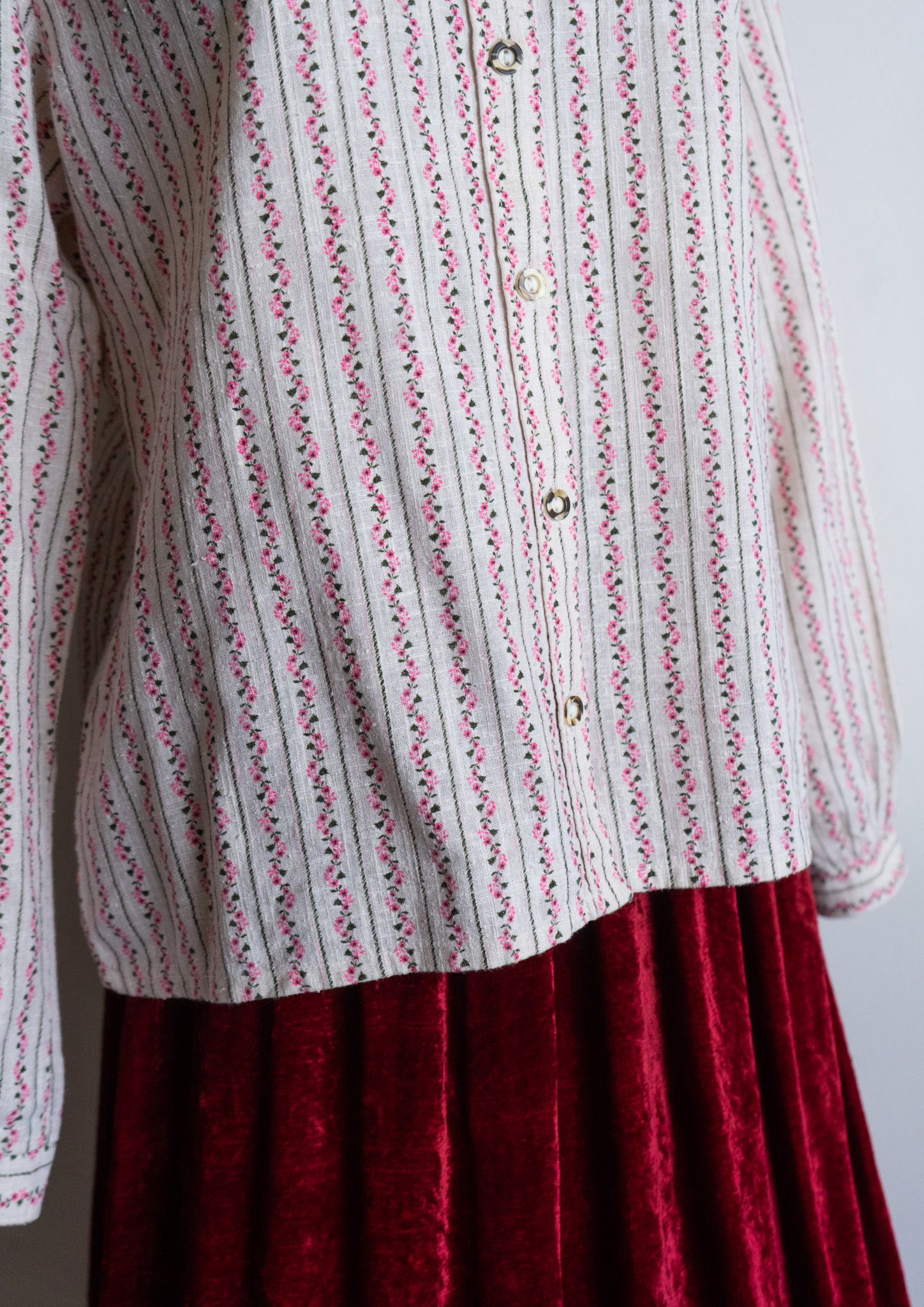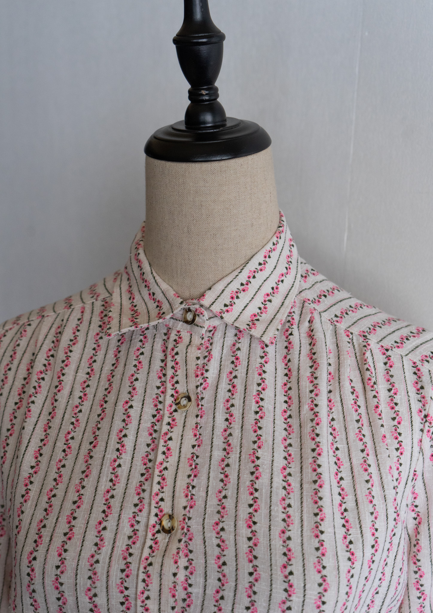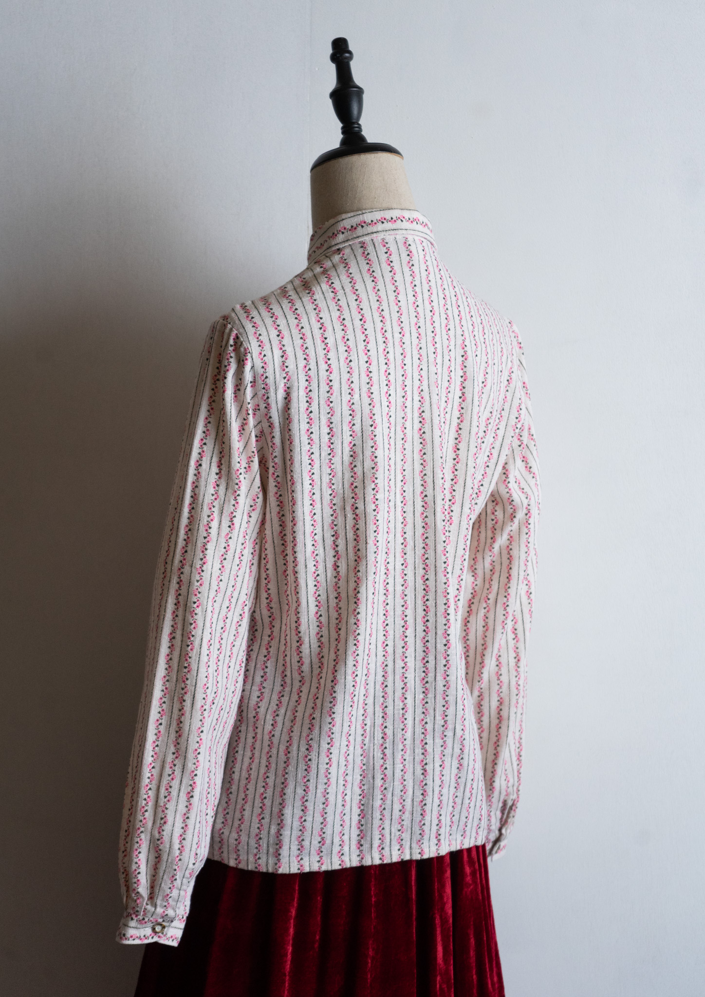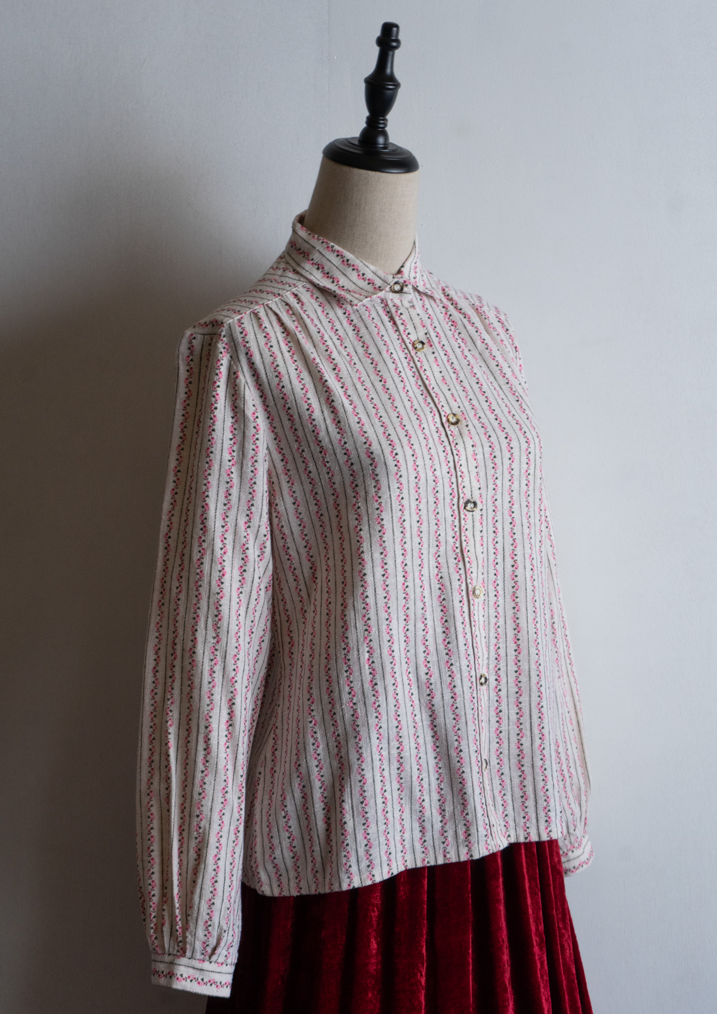 80's Pink Small Flower Stripe Pattern Tyrol Blouse