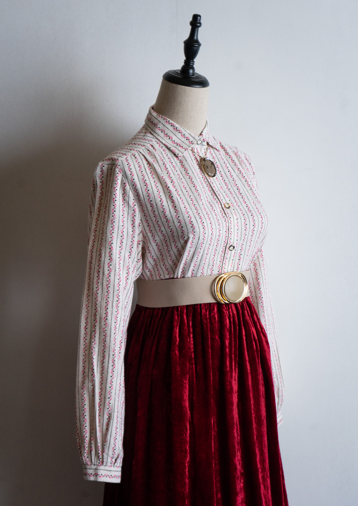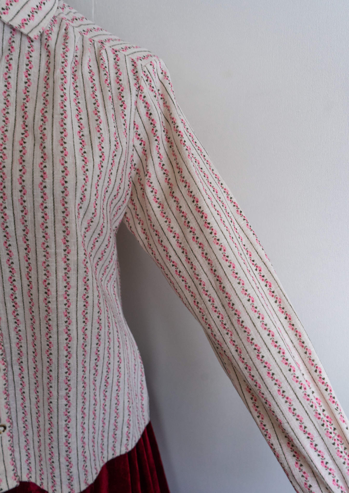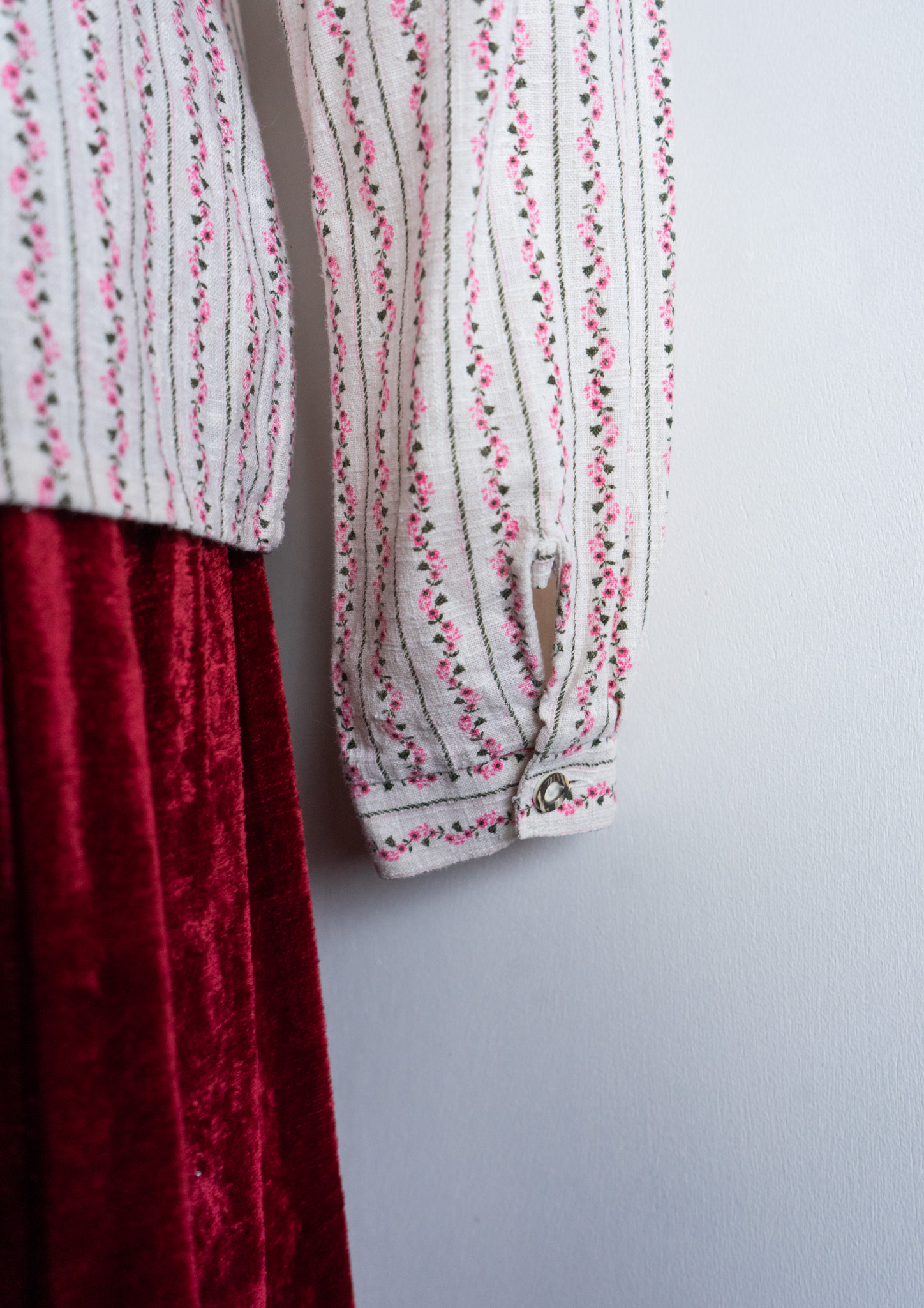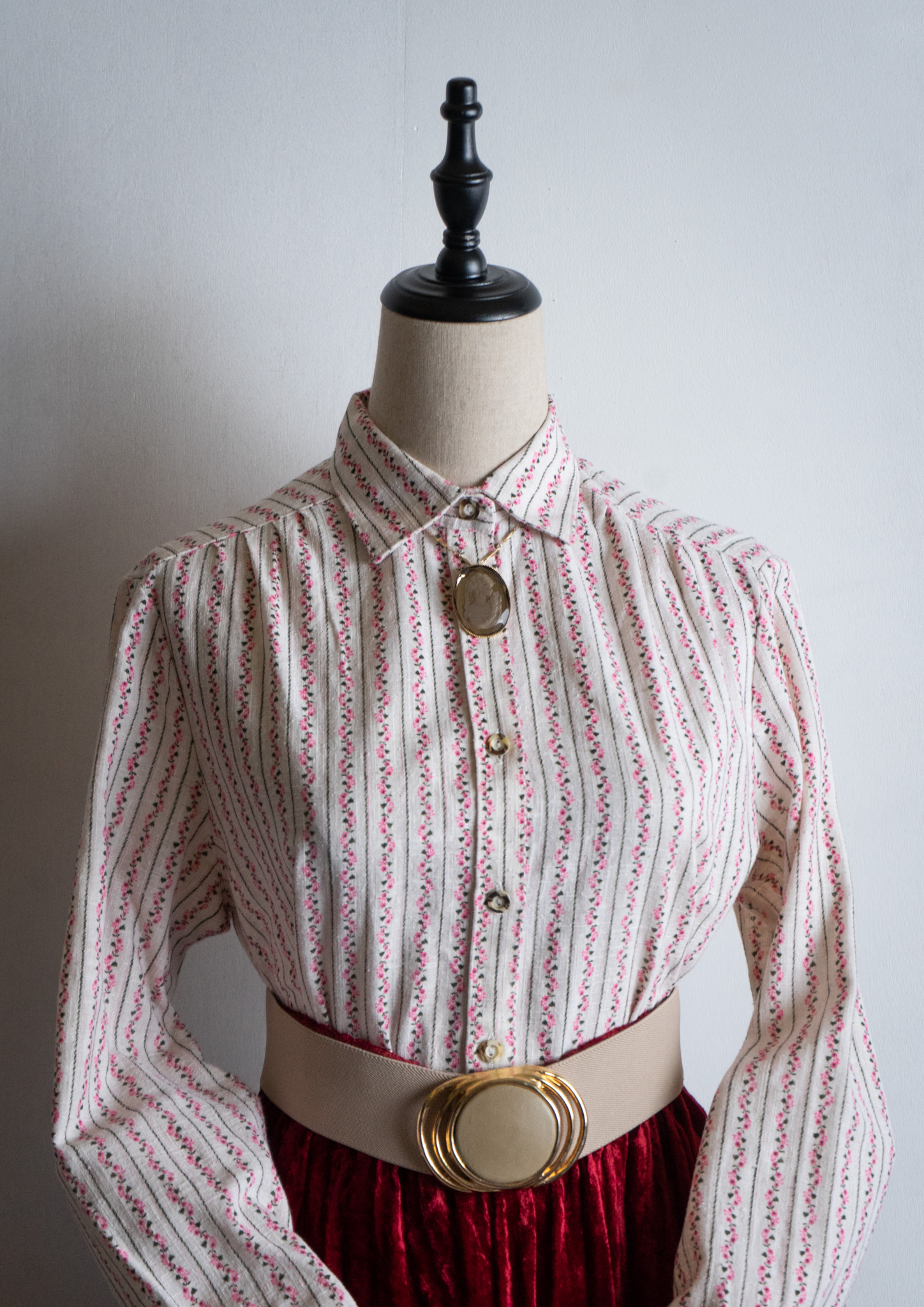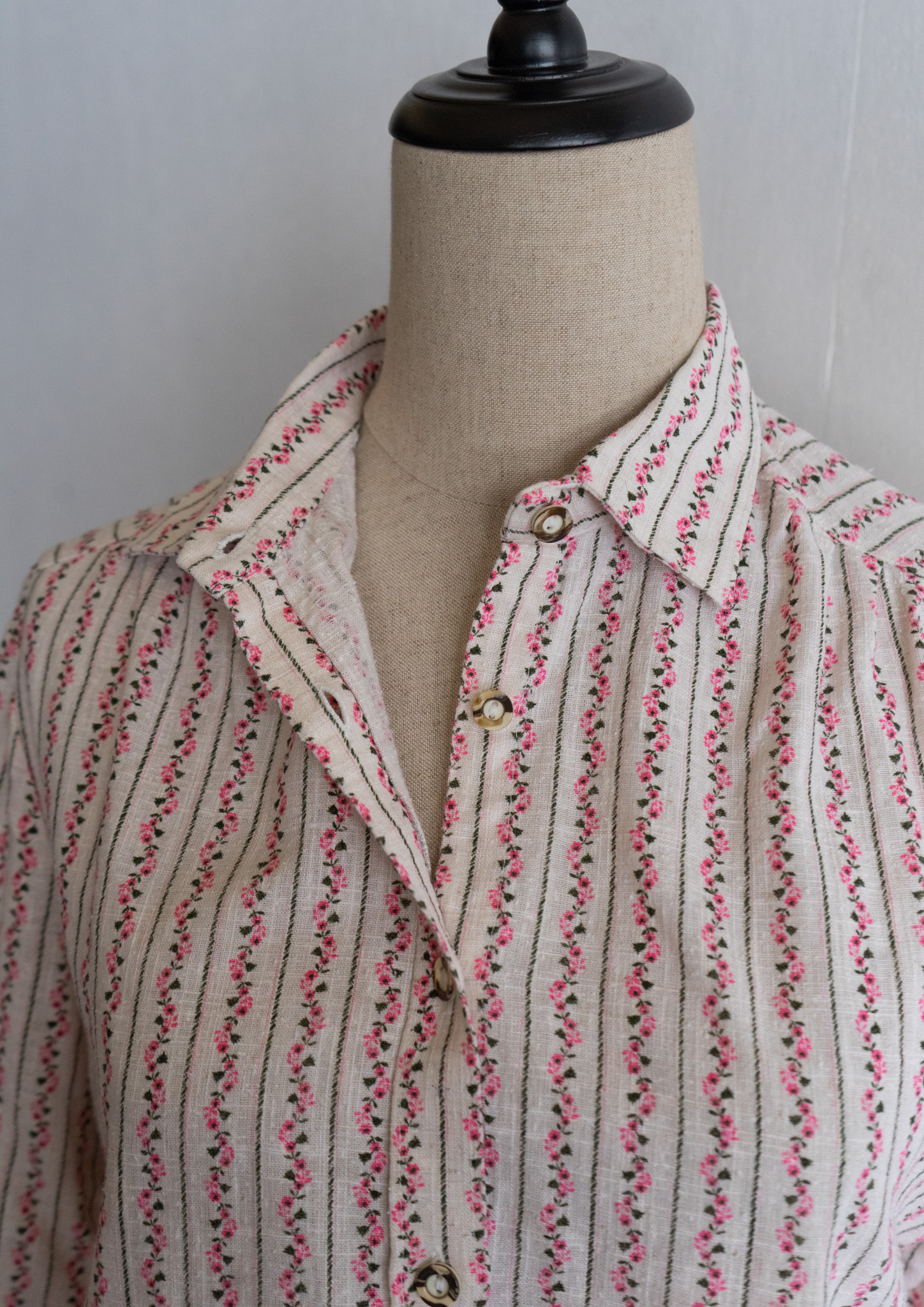 80's Pink Small Flower Stripe Pattern Tyrol Blouse