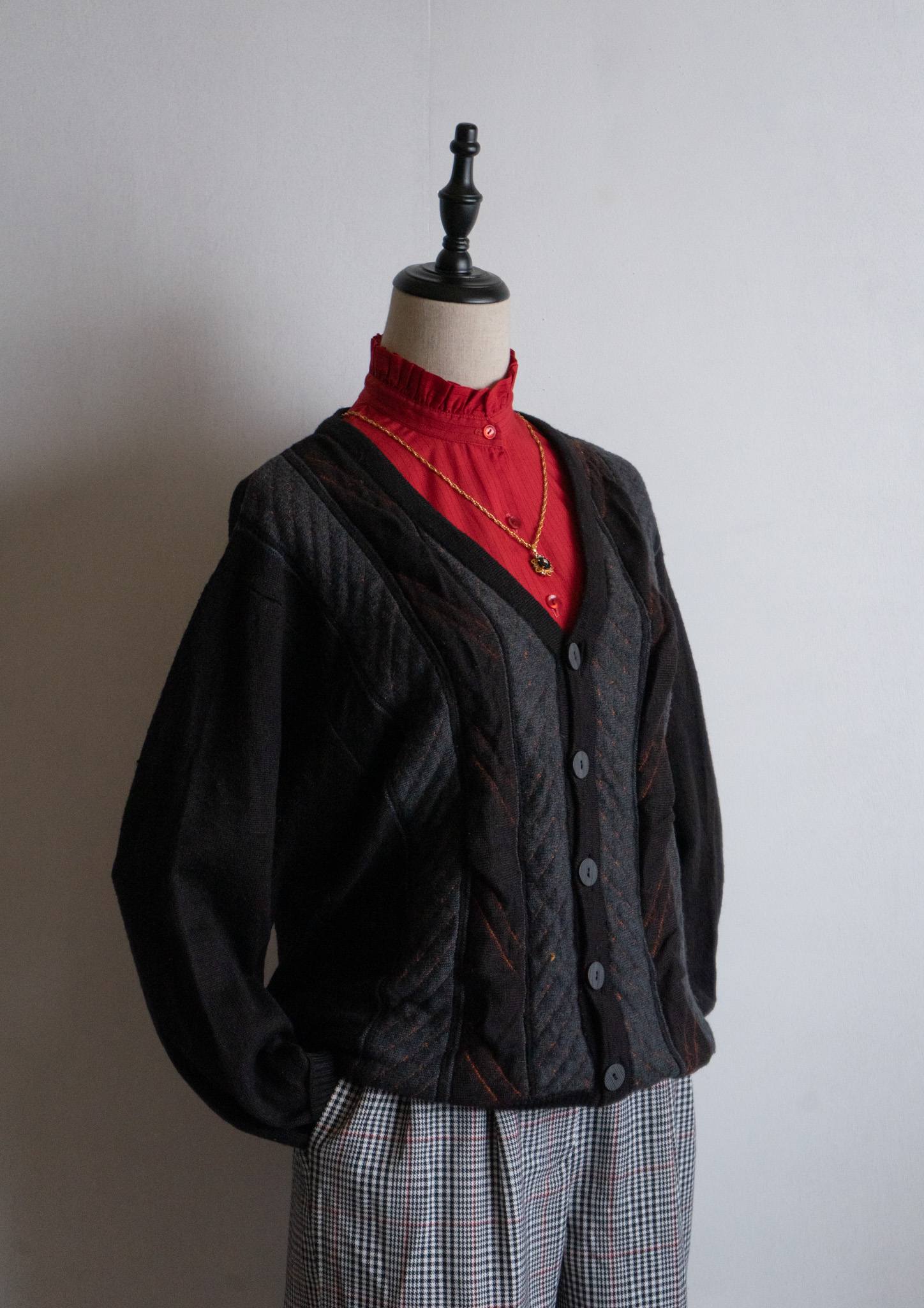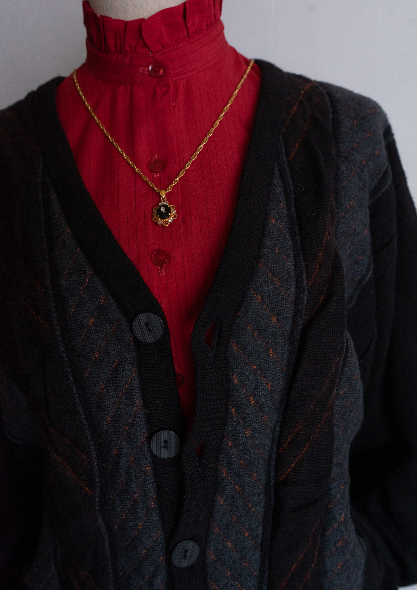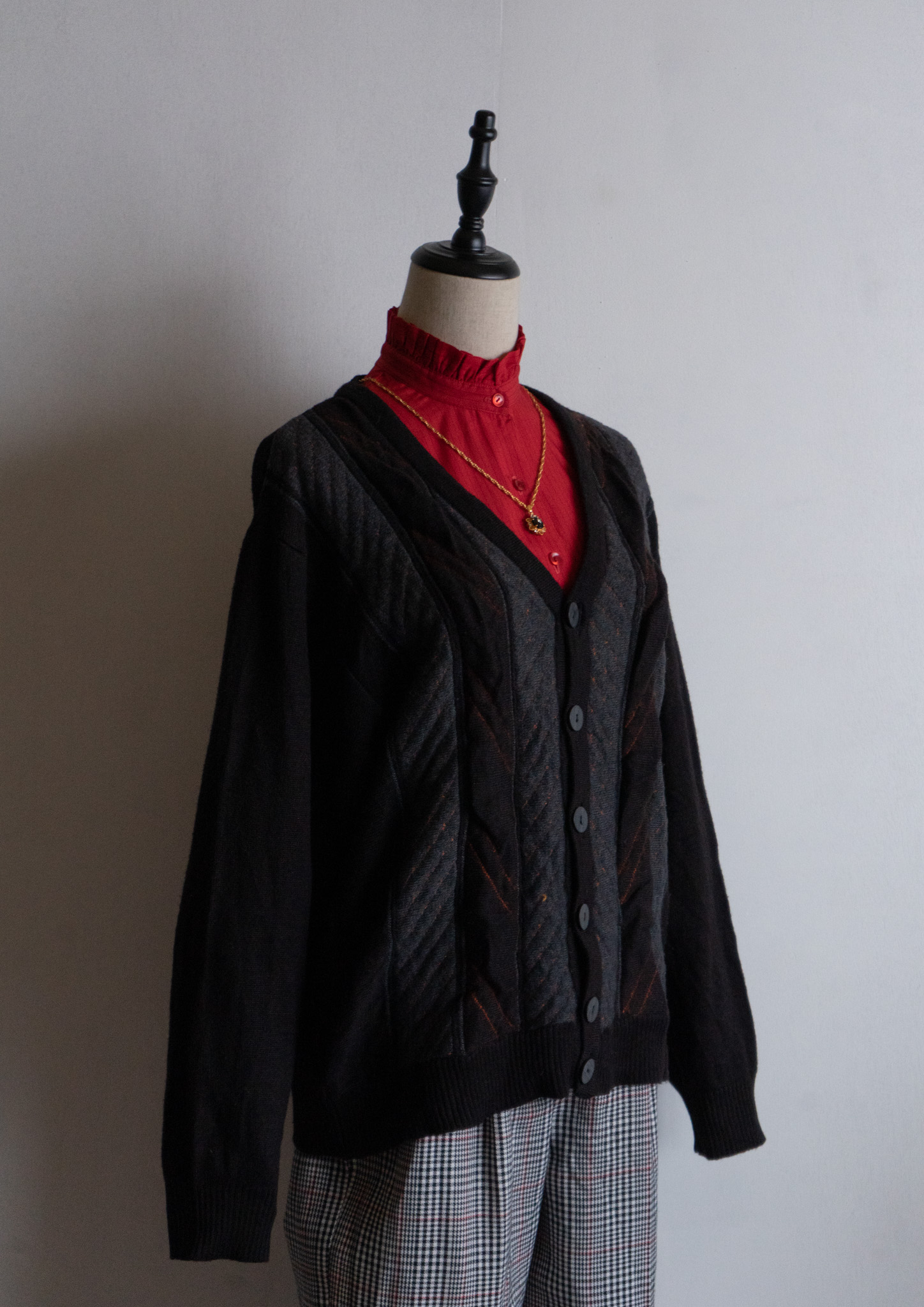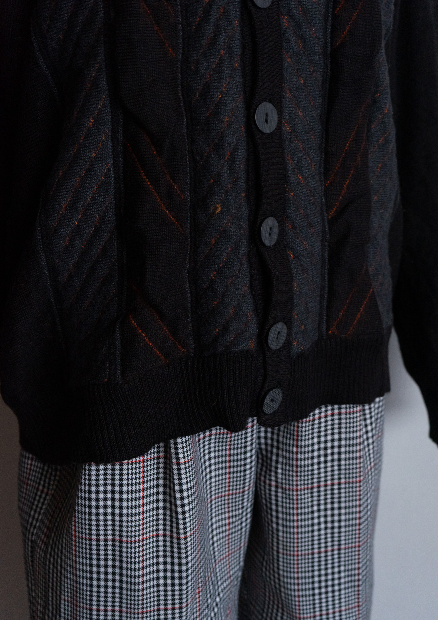 90's Orange Line Black × Gray Stripe Pattern Cardigan