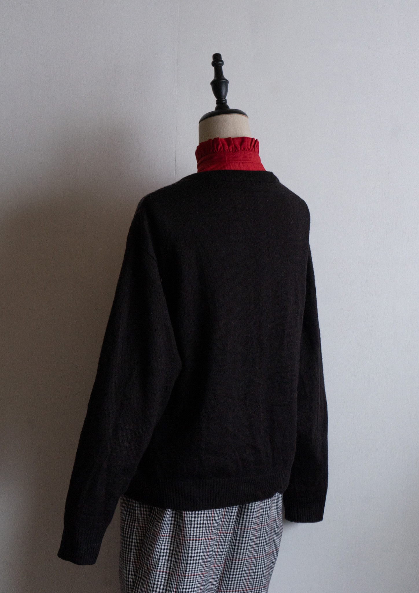 80's Austria Heat Tyrol Button Design Green × Black Knit Tyrol Cardigan