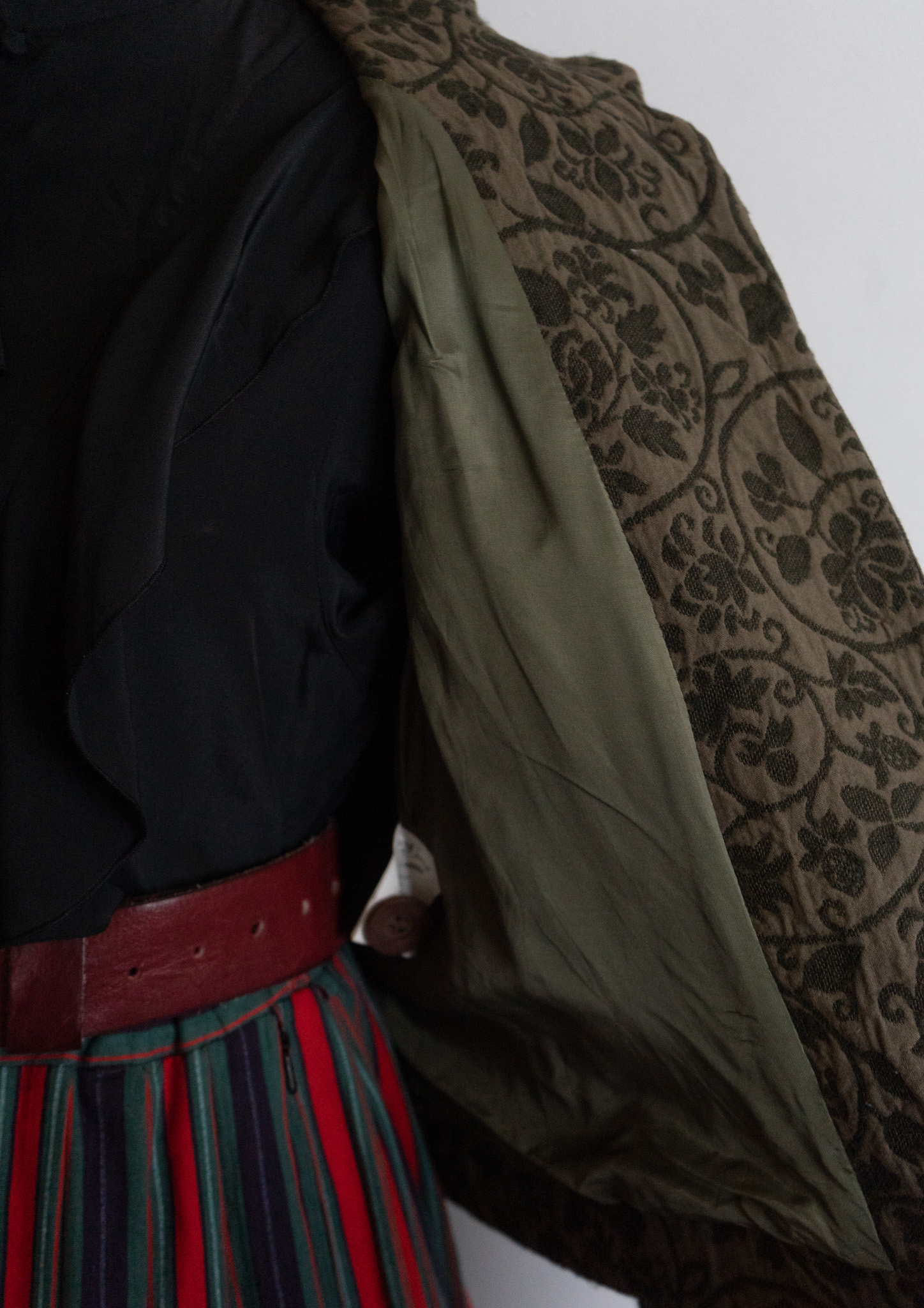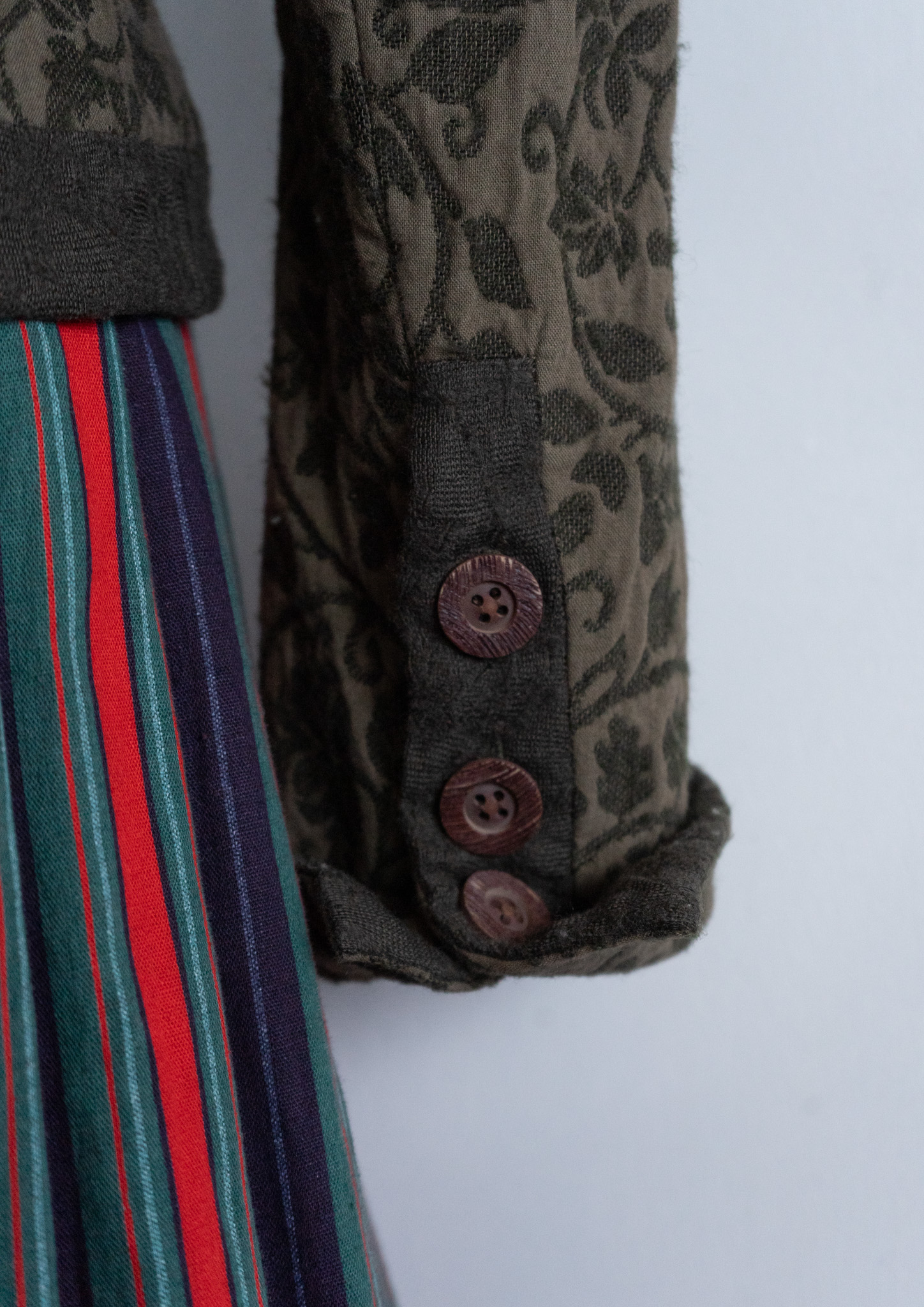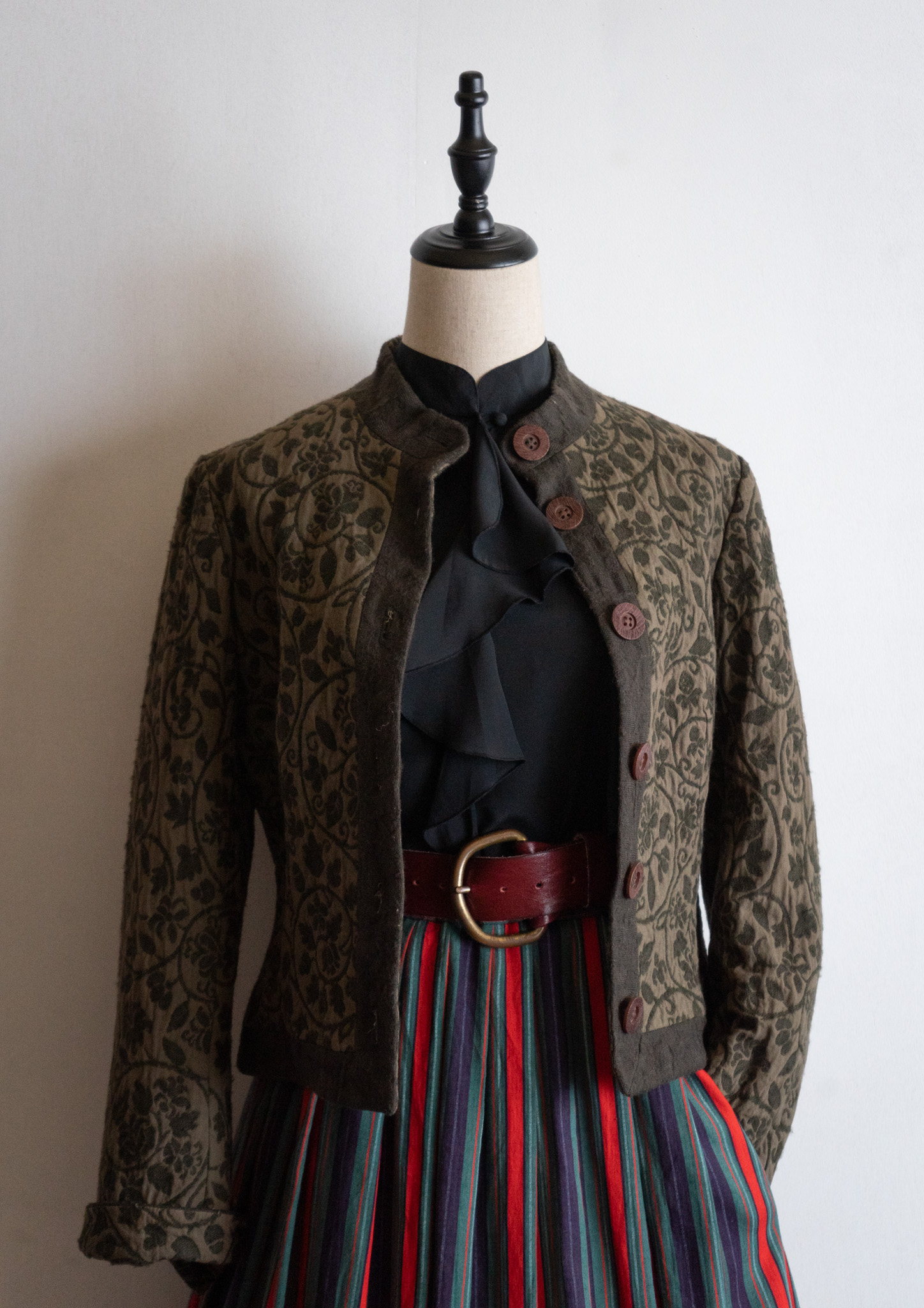 80's France Double Button × Double Pocket Design Olive Gray Napoleon Jacket