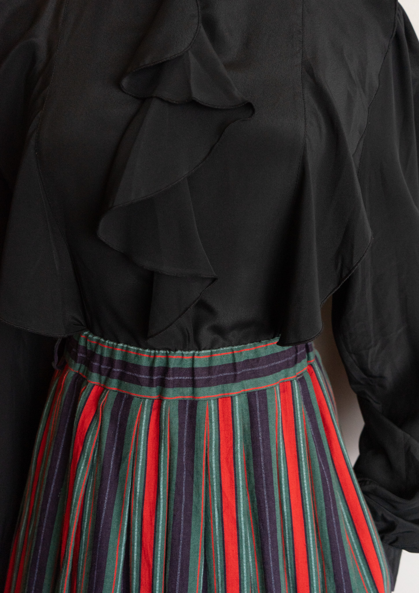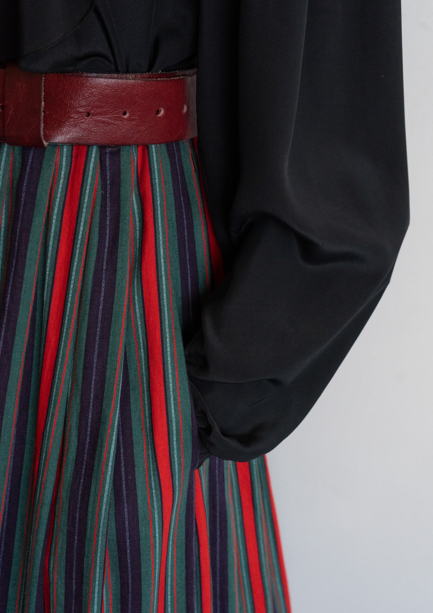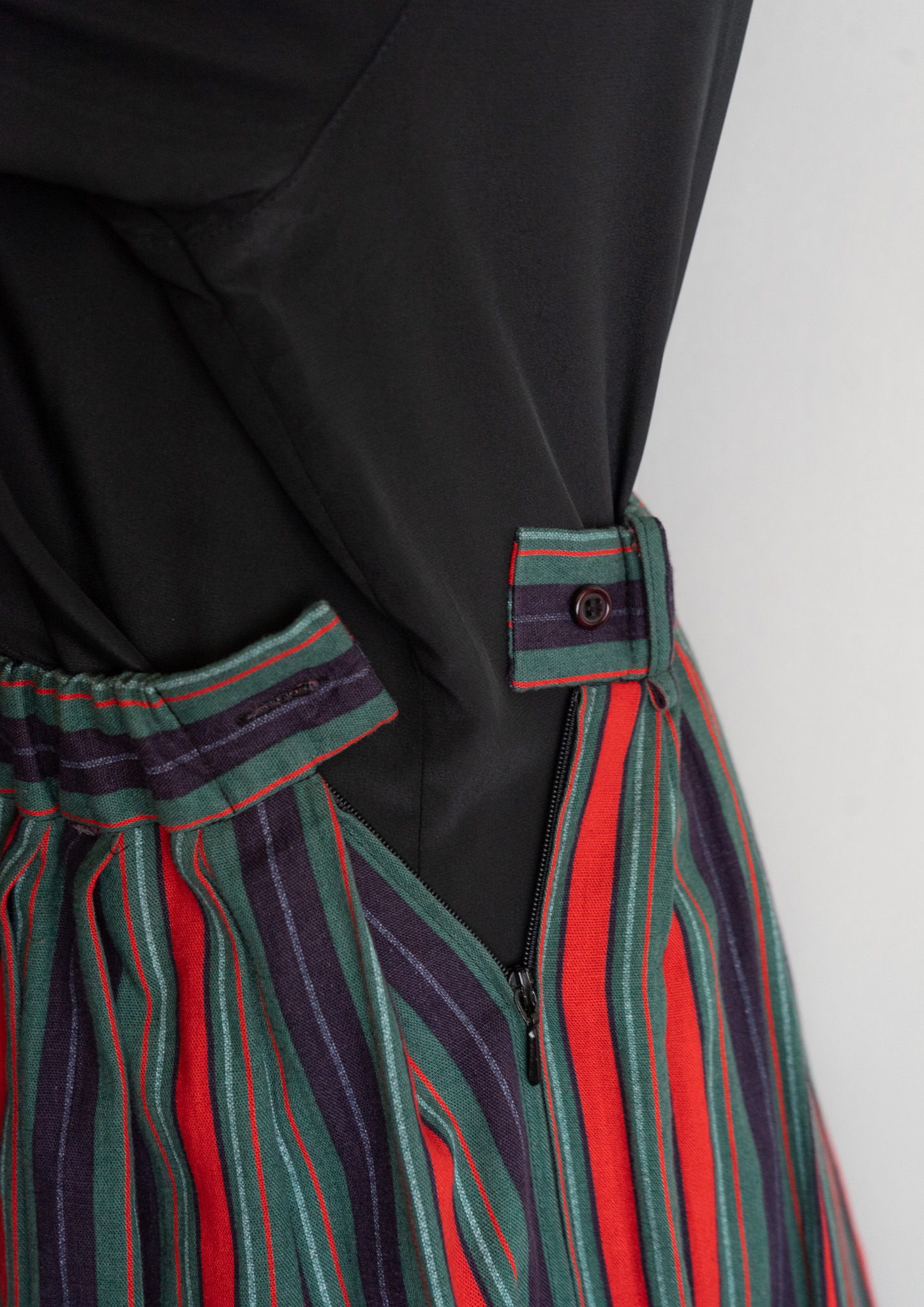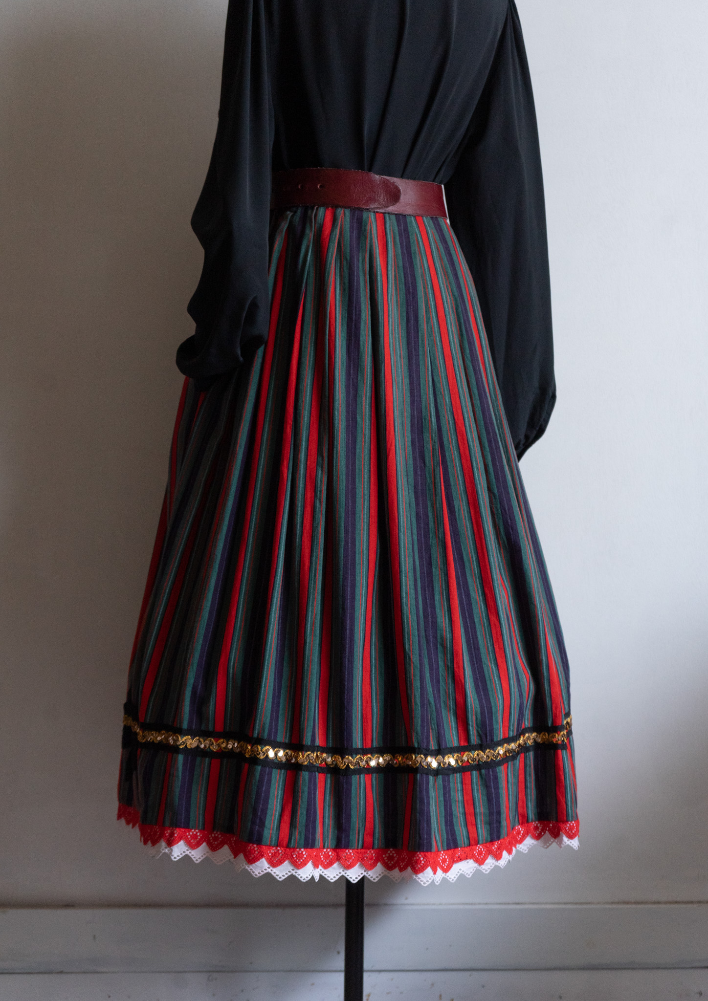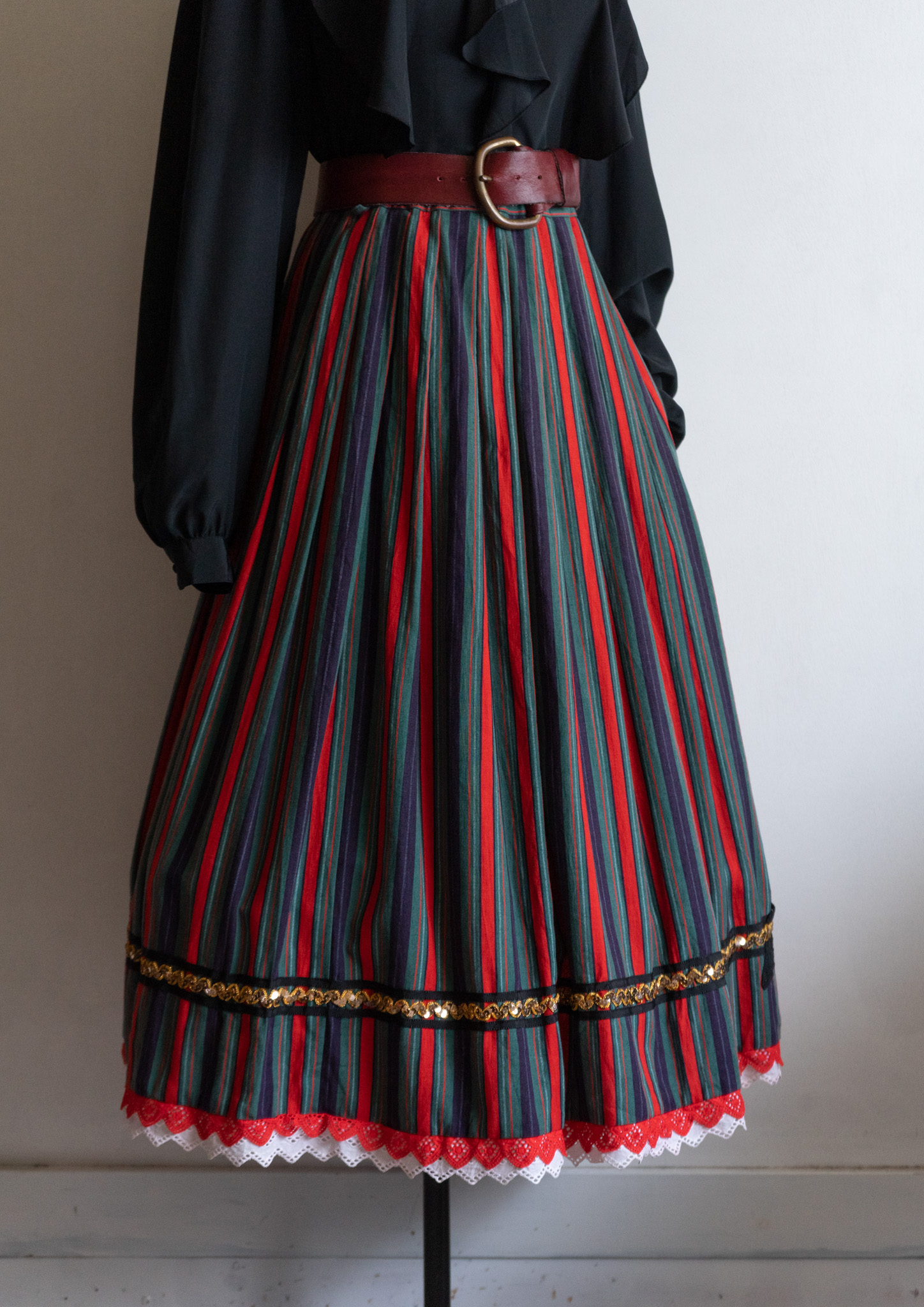80's Euro Gold Sequins Line Design Multi Stripe Pattern Tyrol Skirt