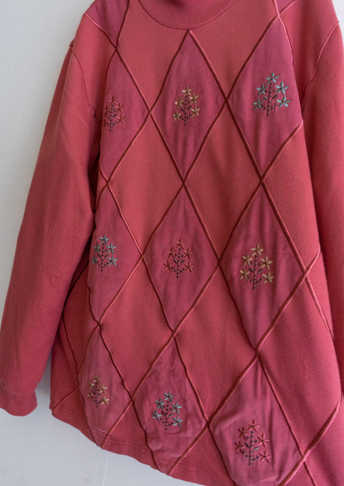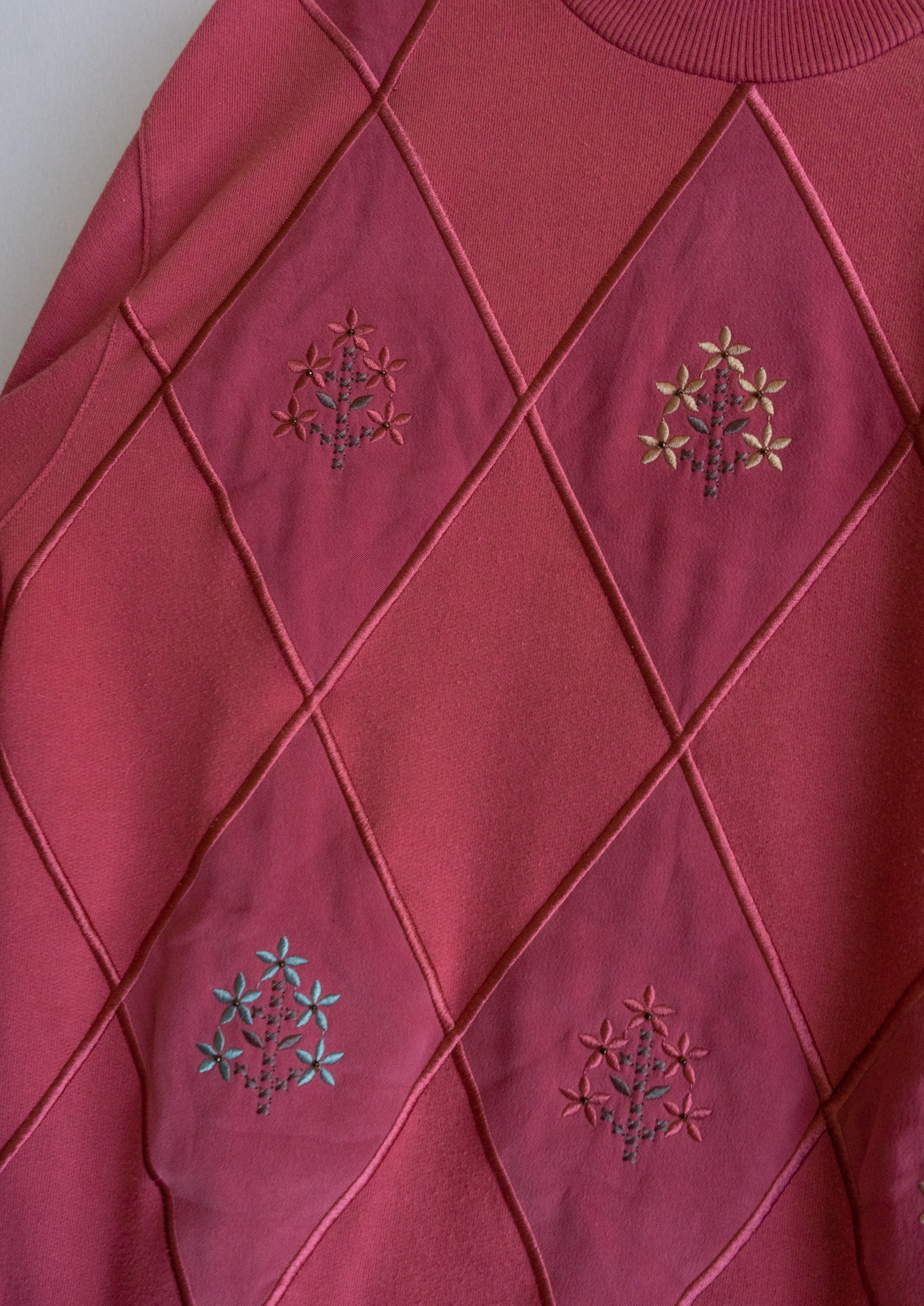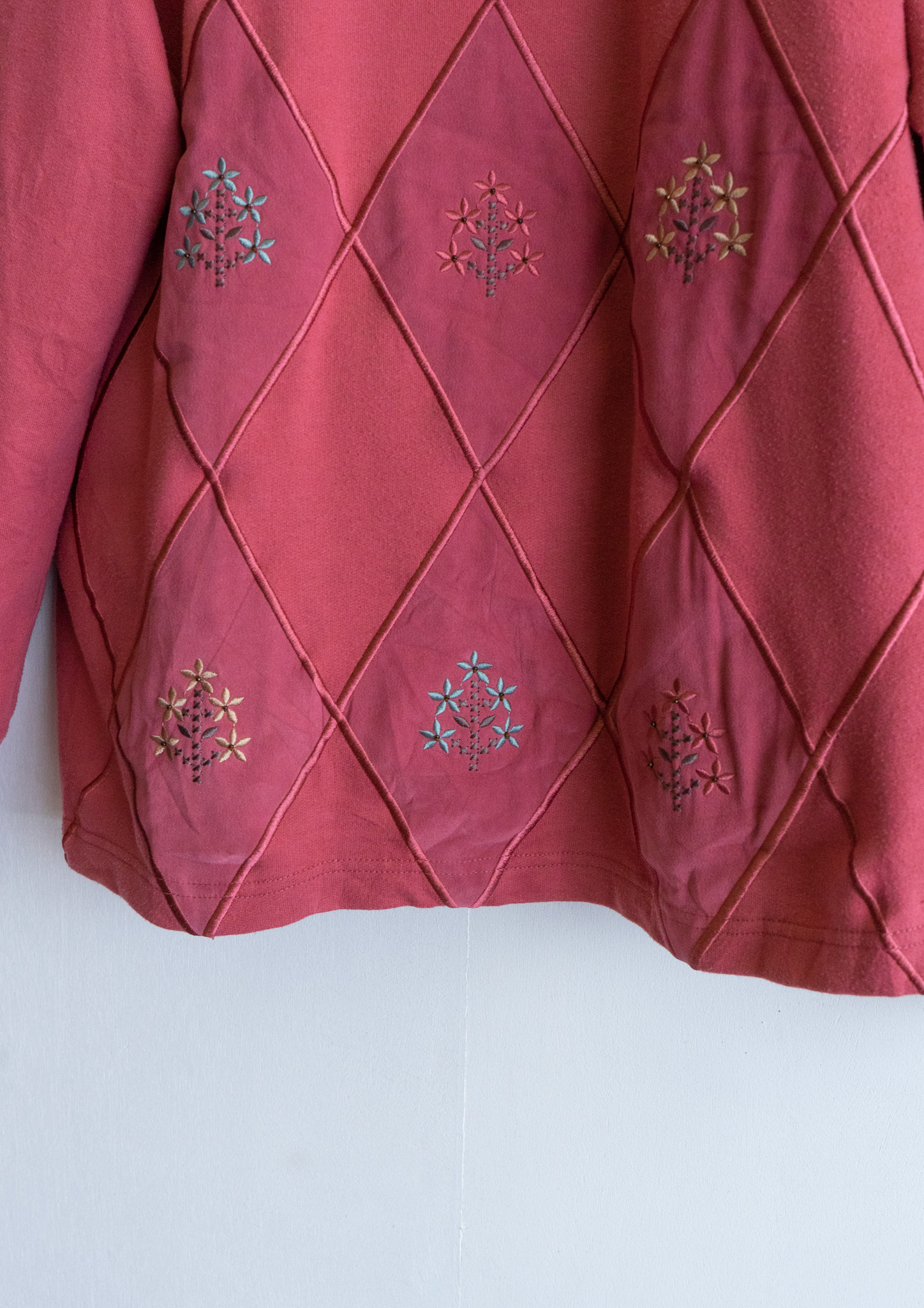 90's Diamond × Flower Embroidery Smoky Pink Swaet