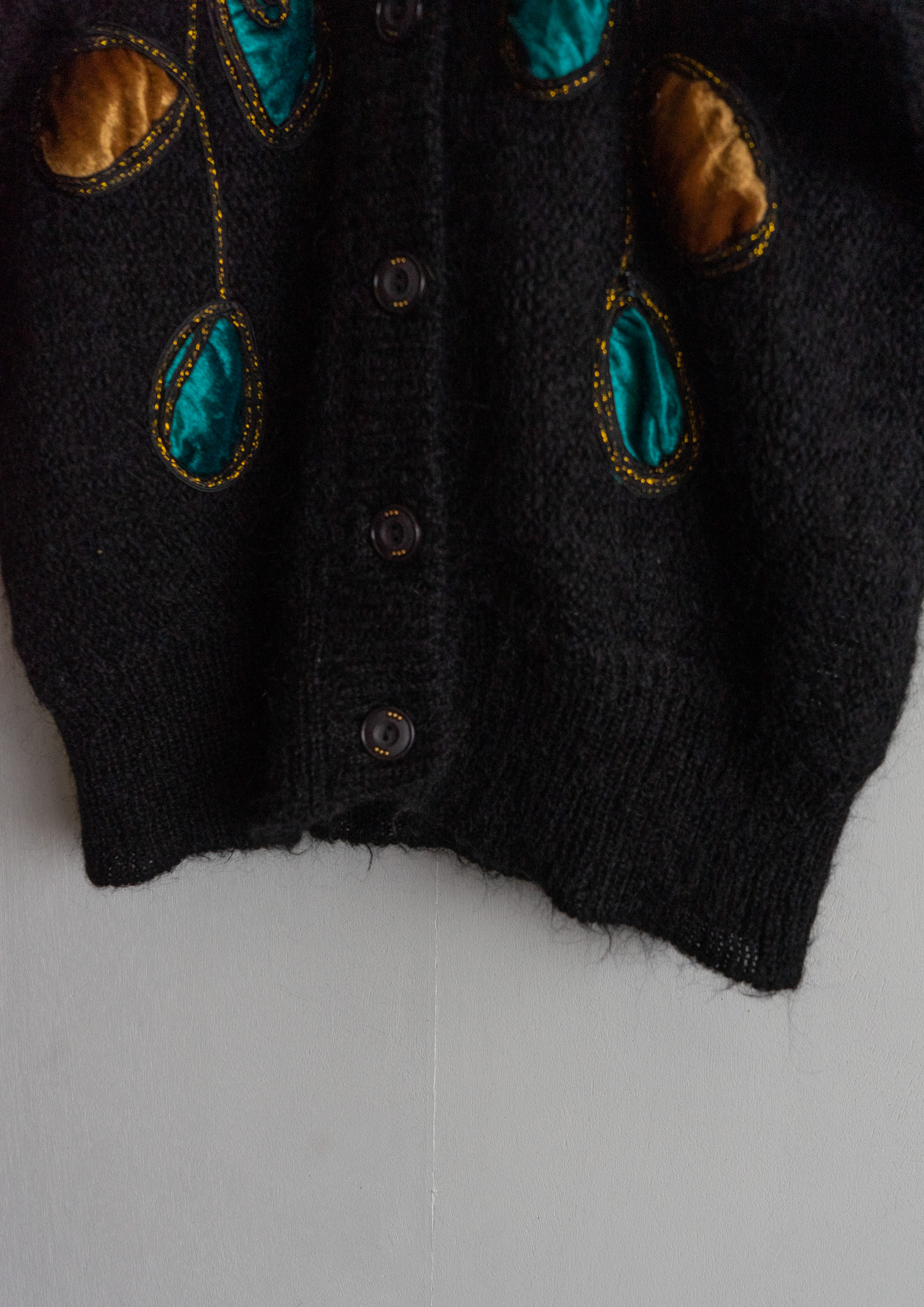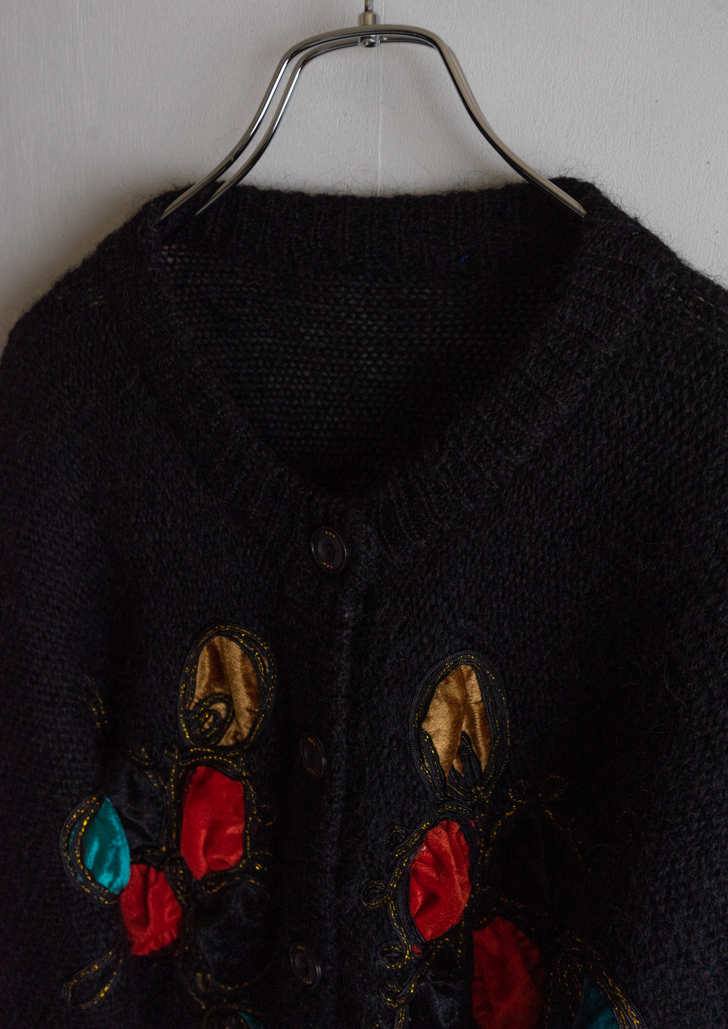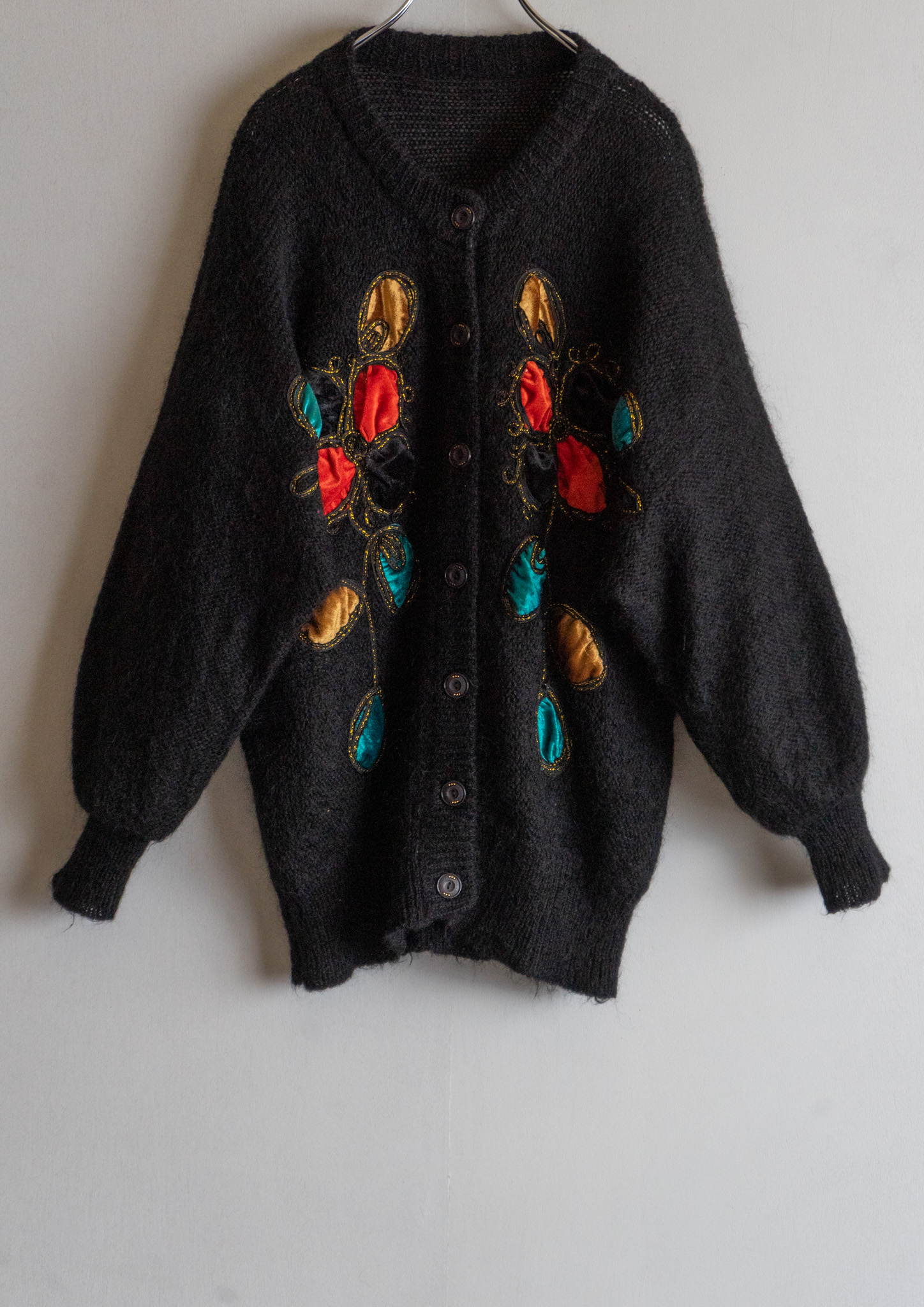80's Unique Velour Flower Design Black Cardigan