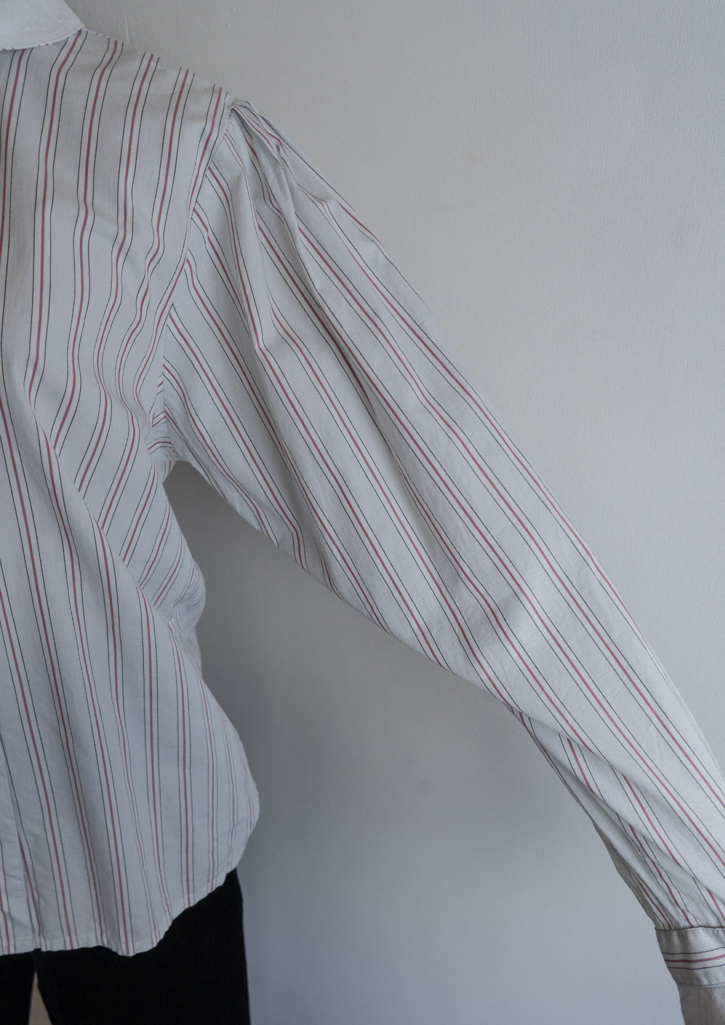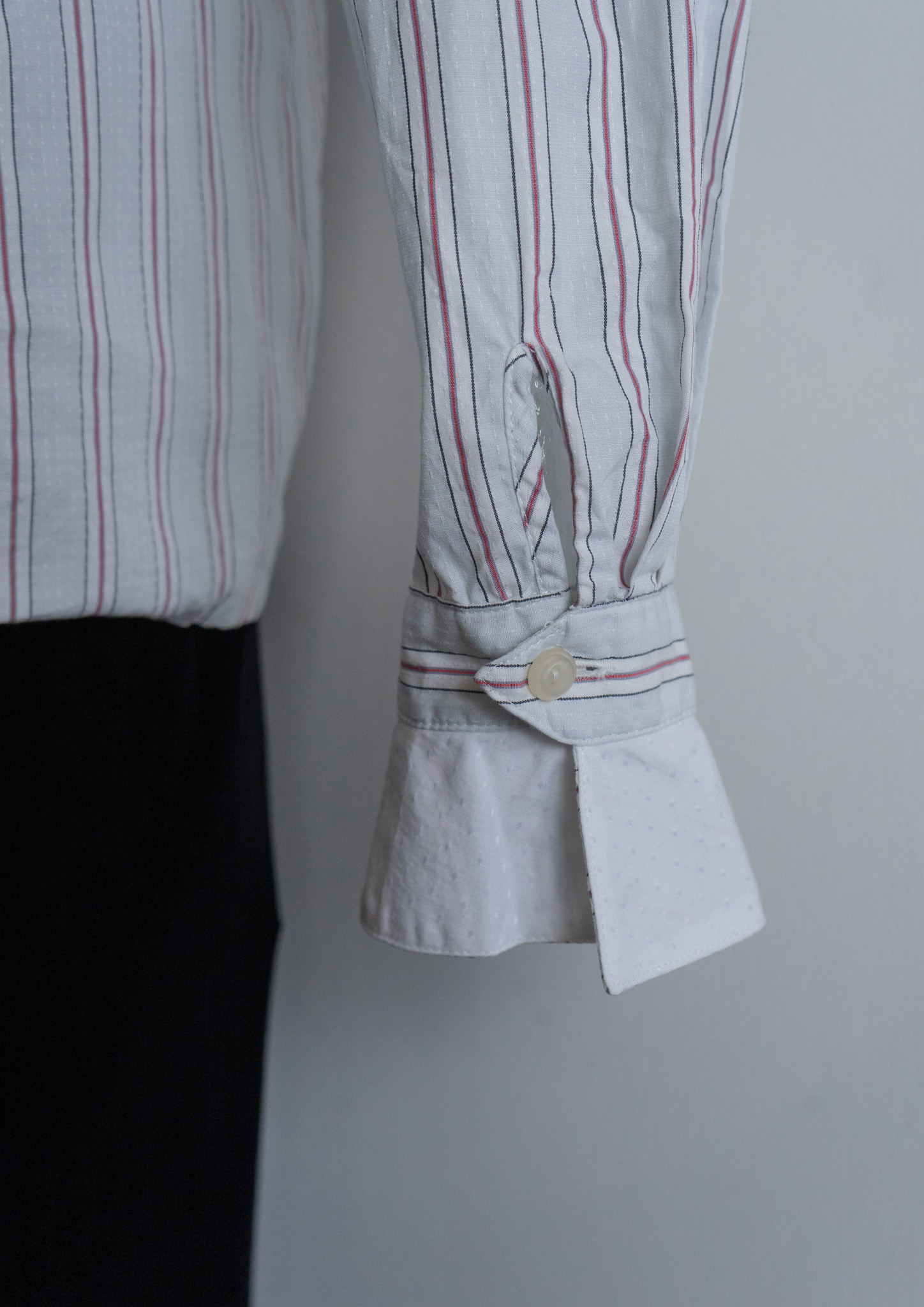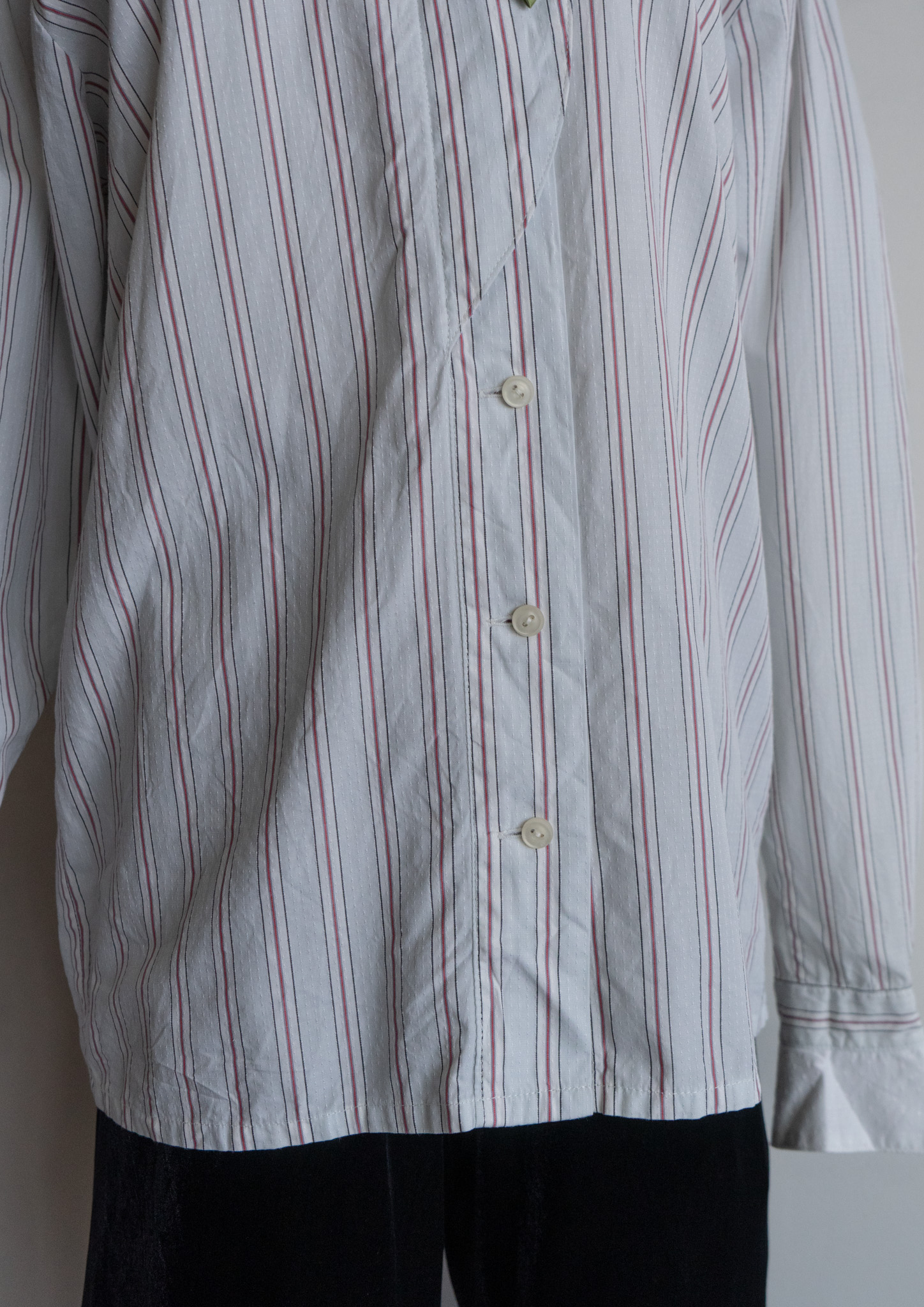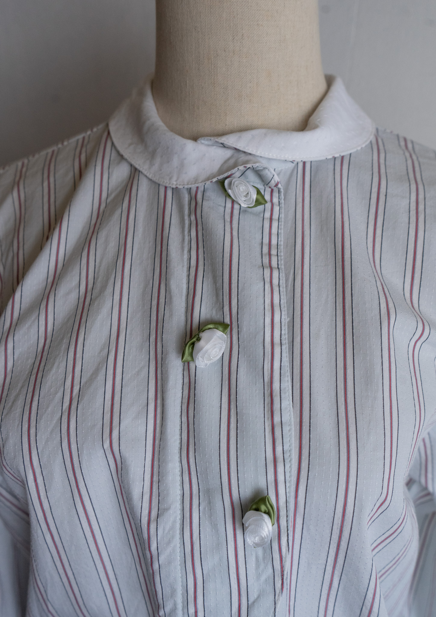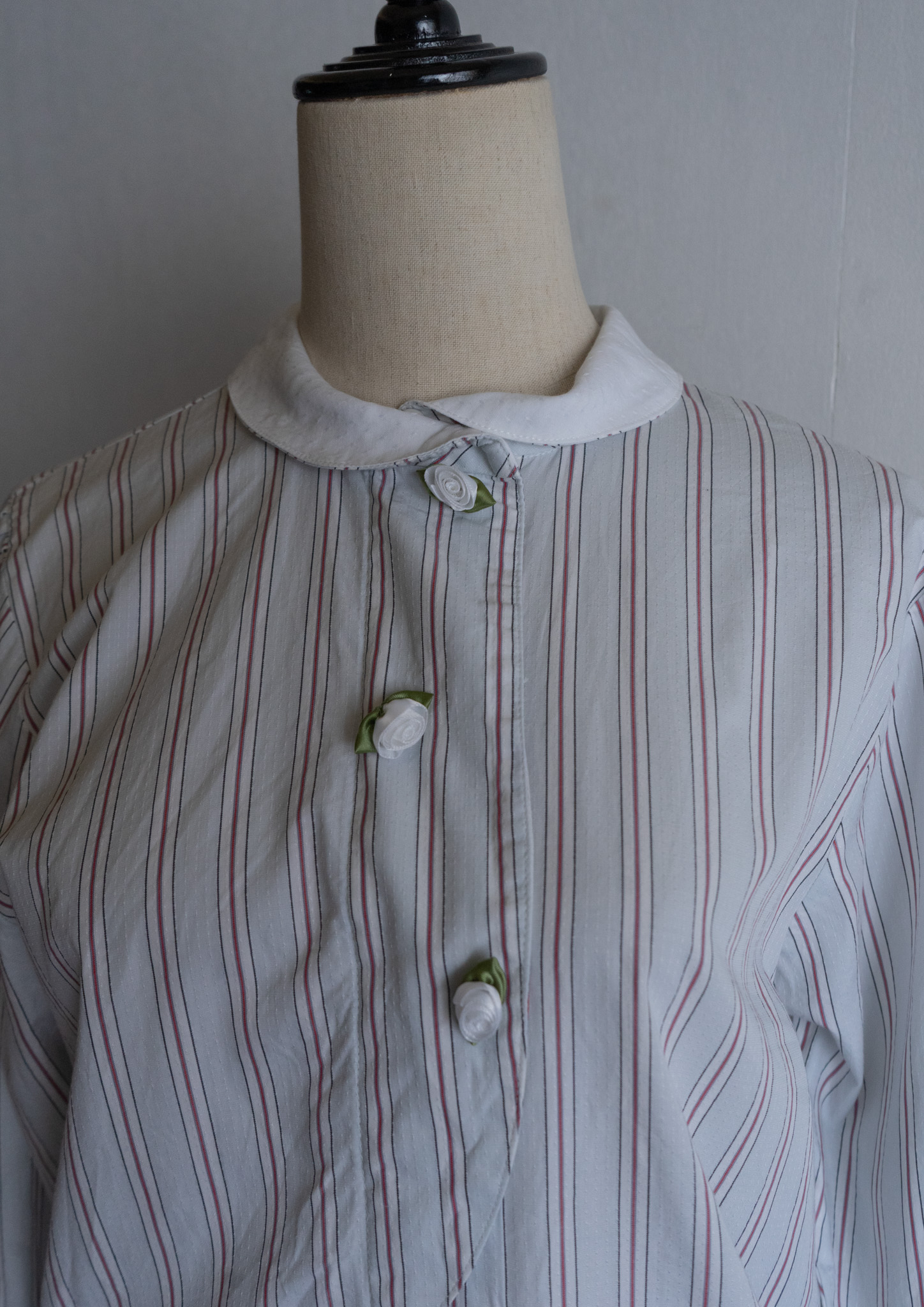 80~90's Point Rose Stripe Pattern Light Gray Blouse