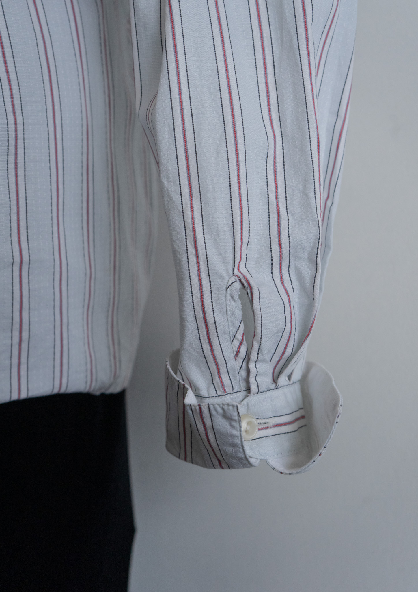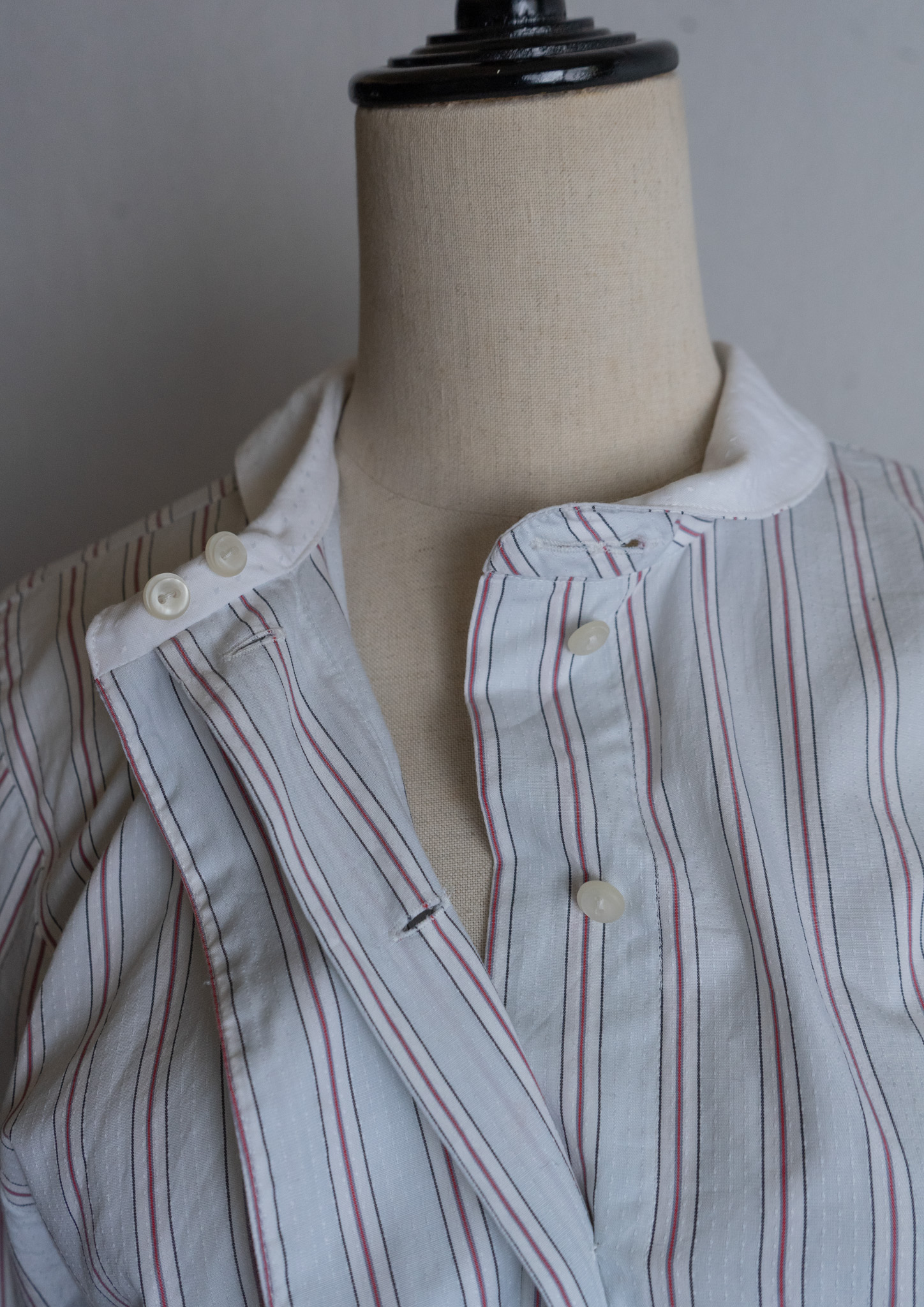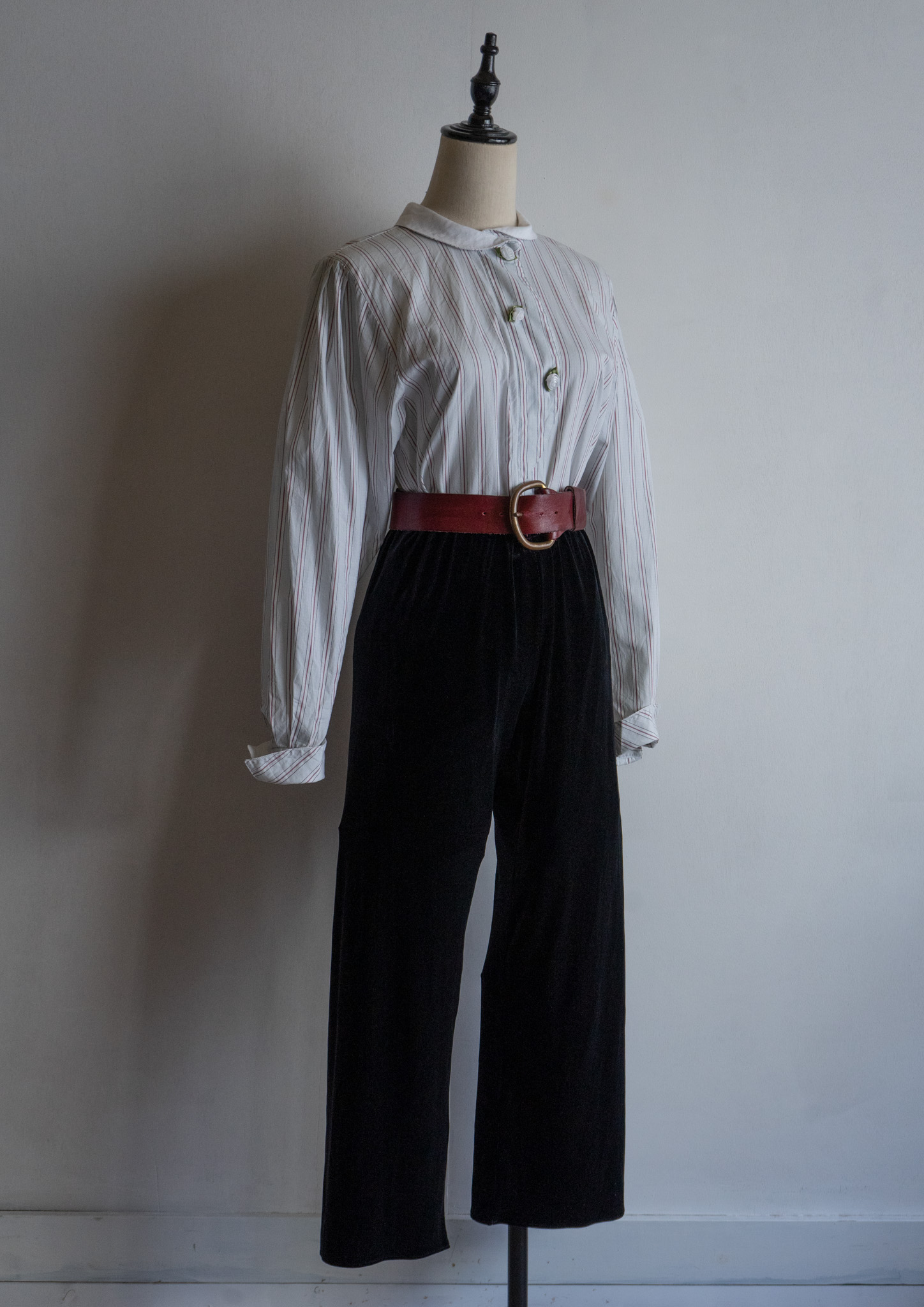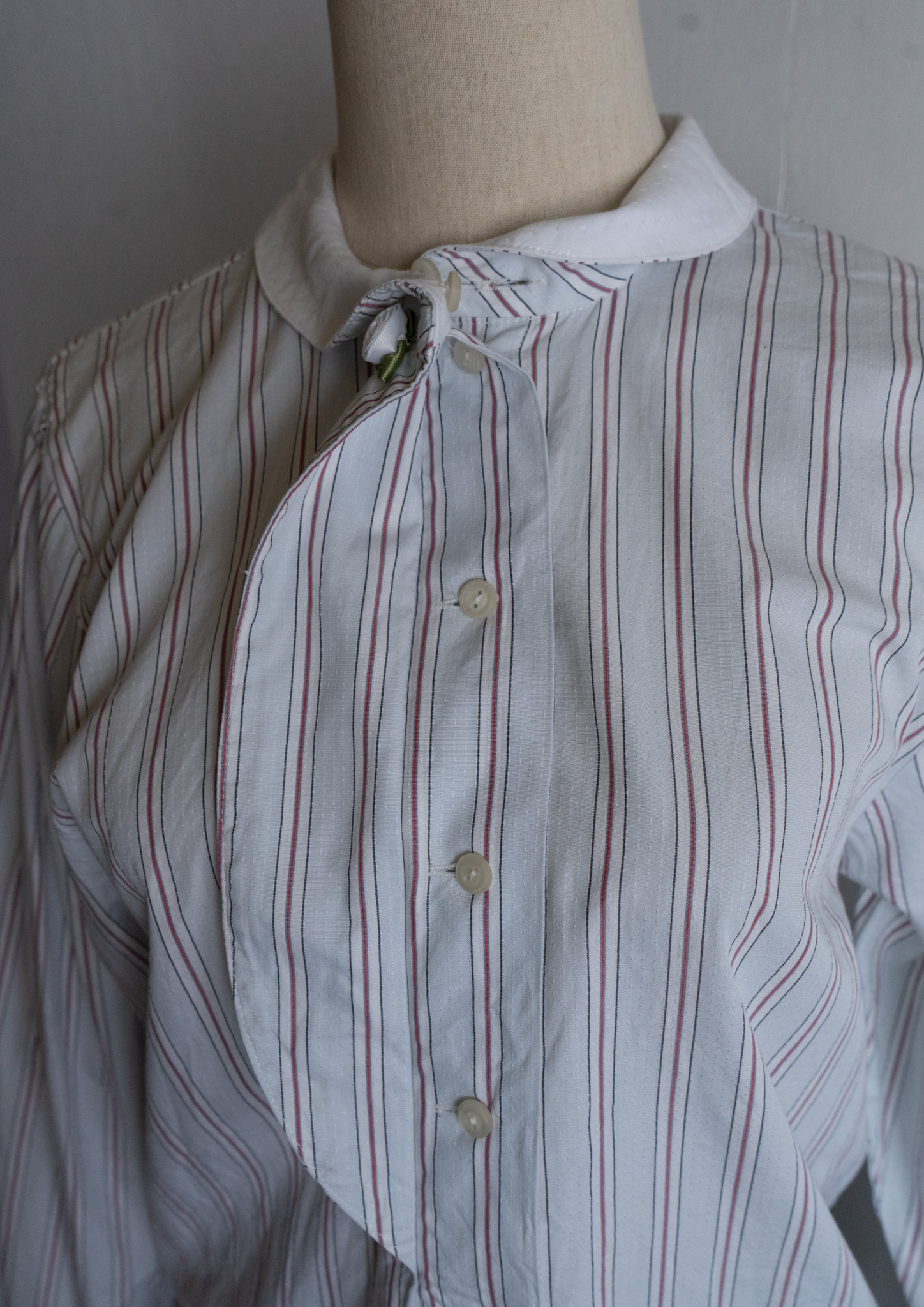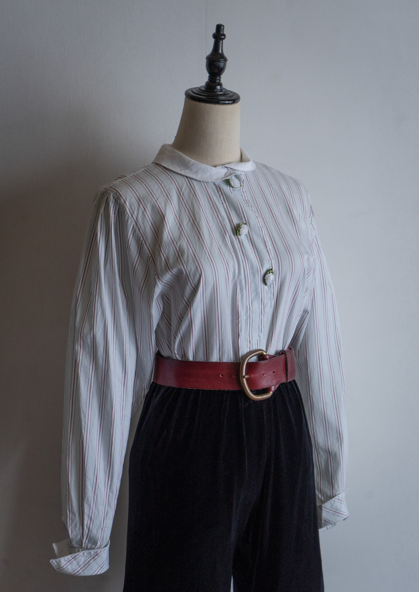 80~90's Point Rose Stripe Pattern Light Gray Blouse