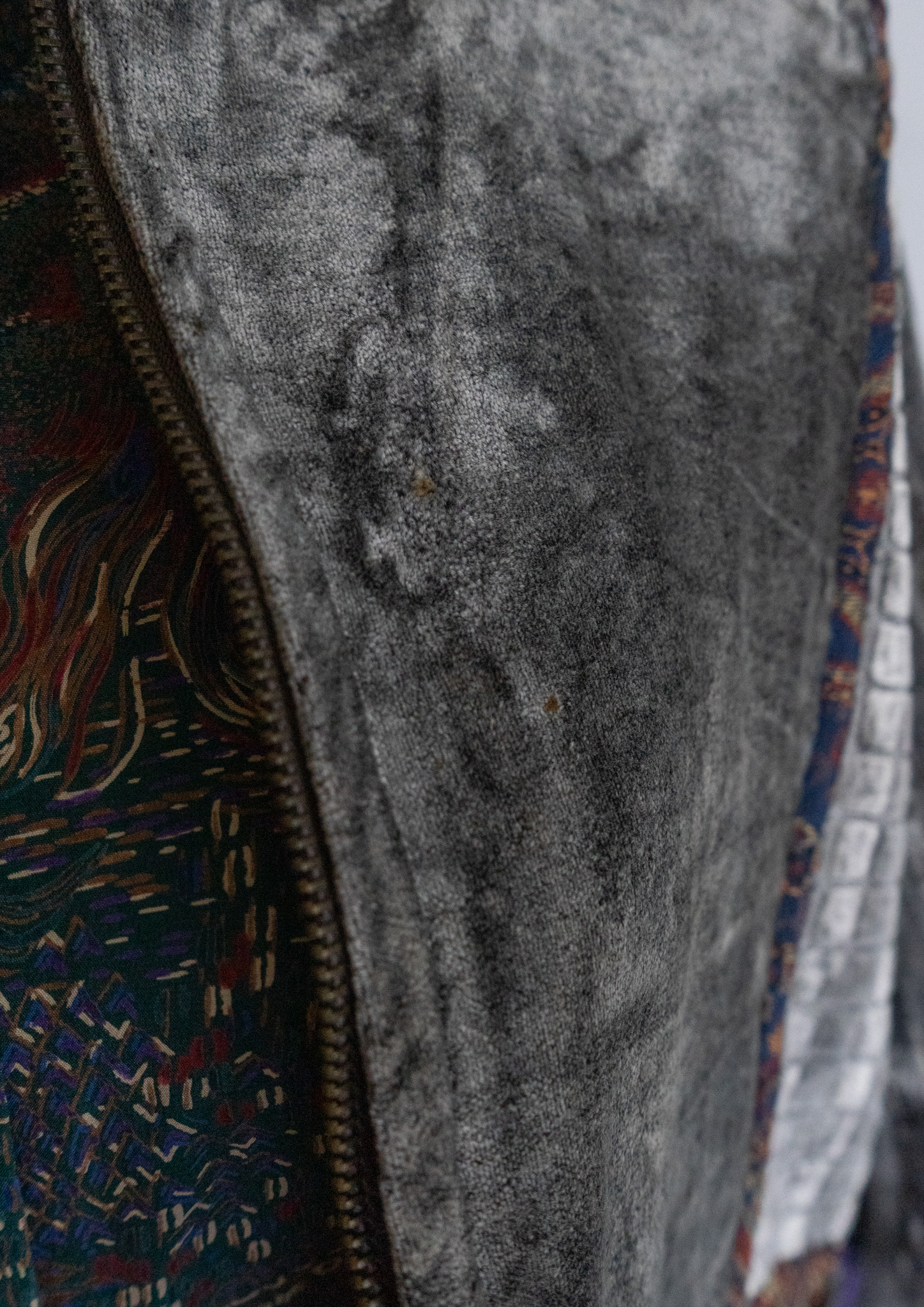 80's Double Pocket Design Point Leopard Pattern Black Wool Jacket
