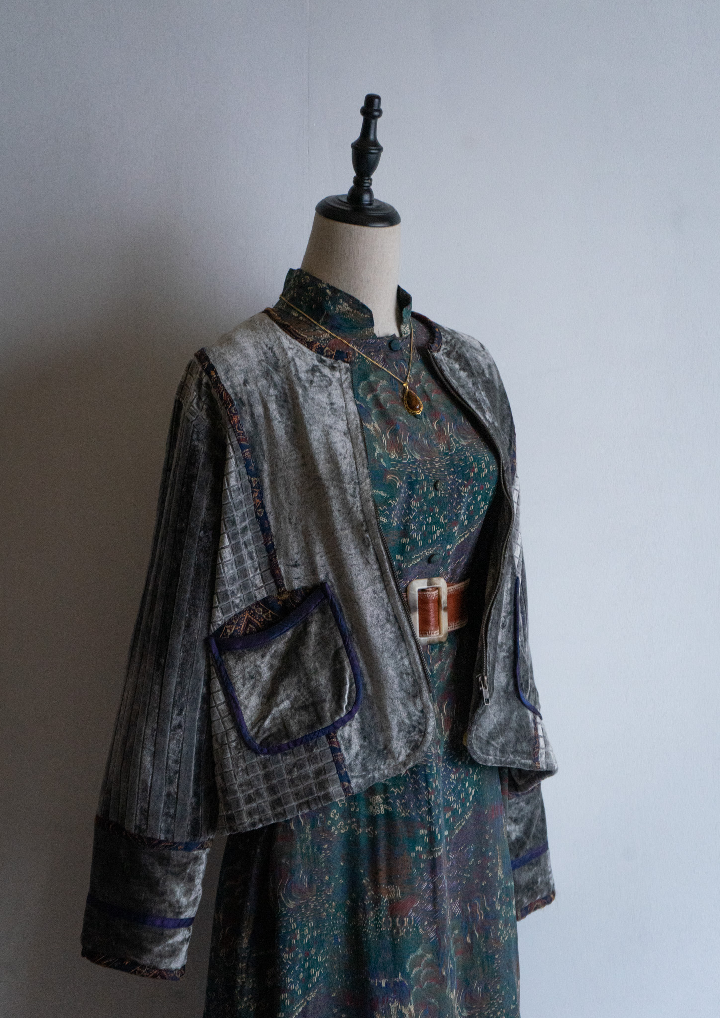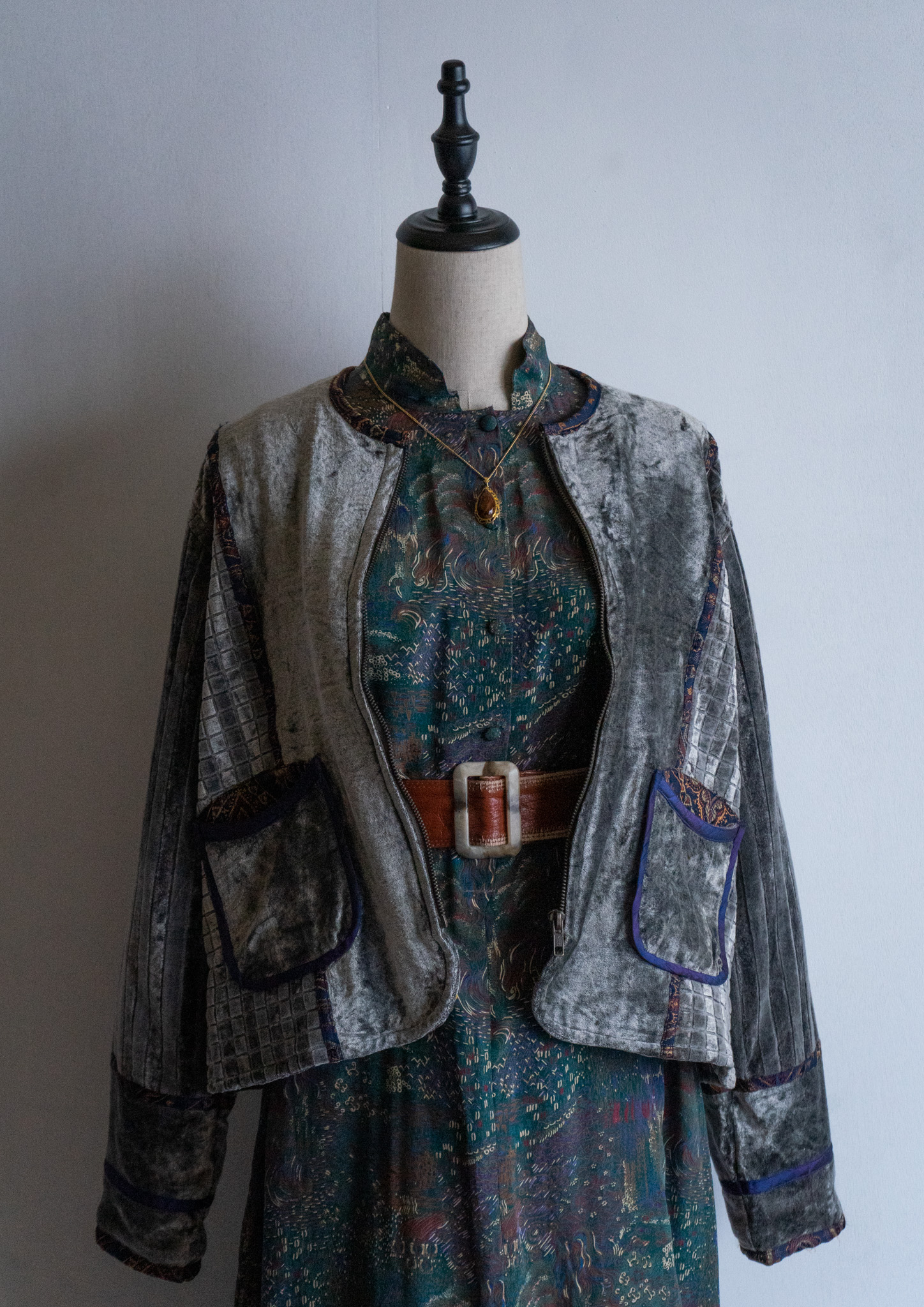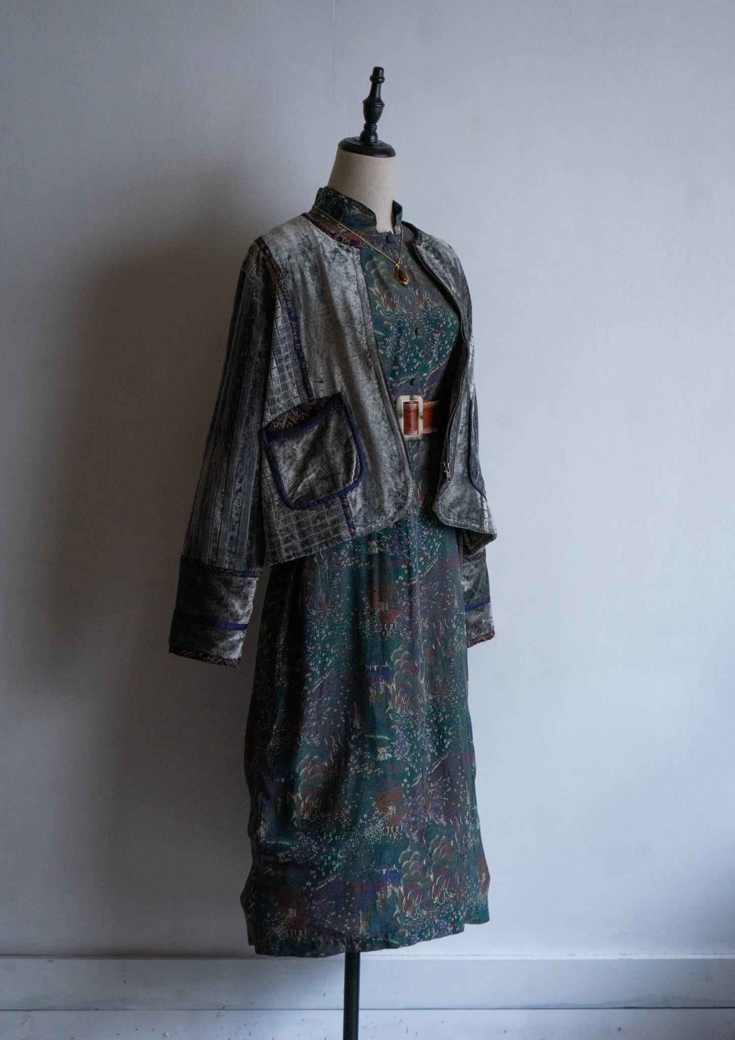 80's France Double Button × Double Pocket Design Olive Gray Napoleon Jacket