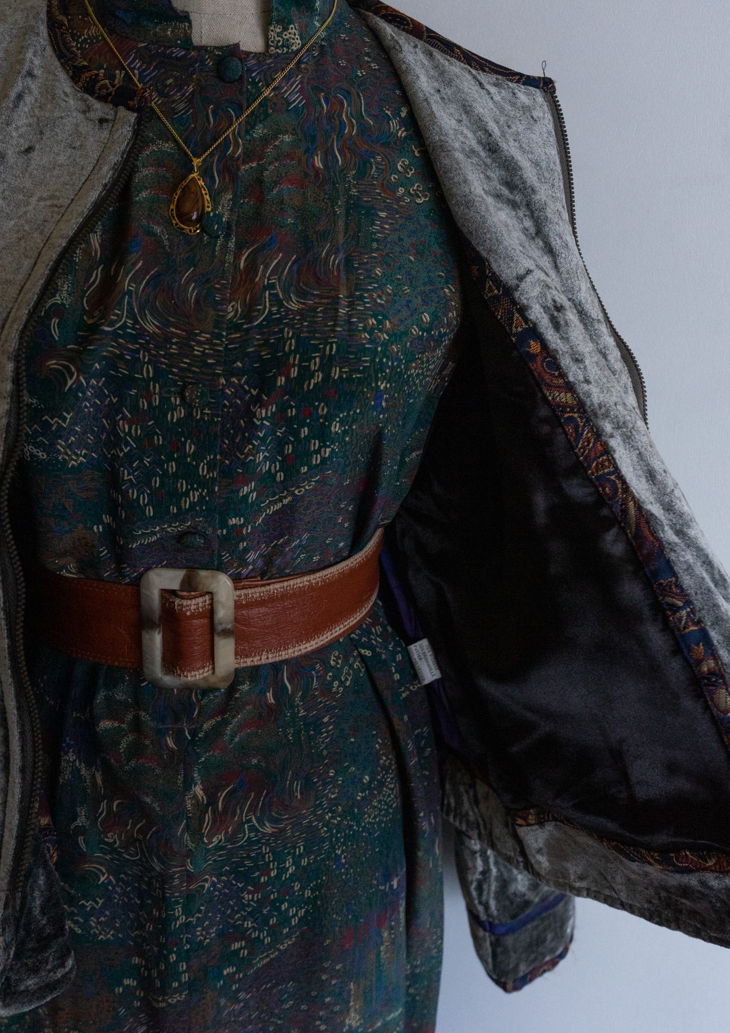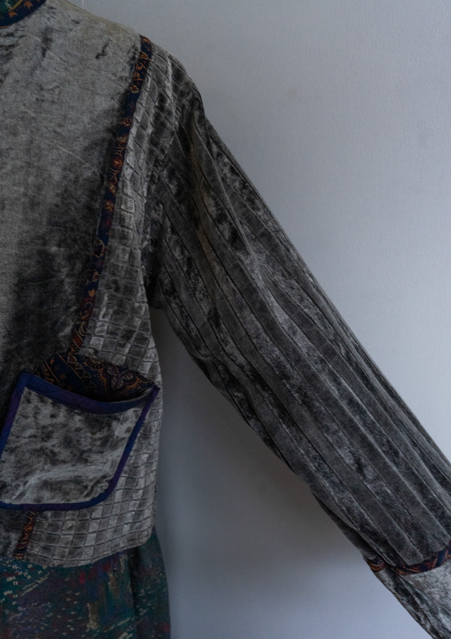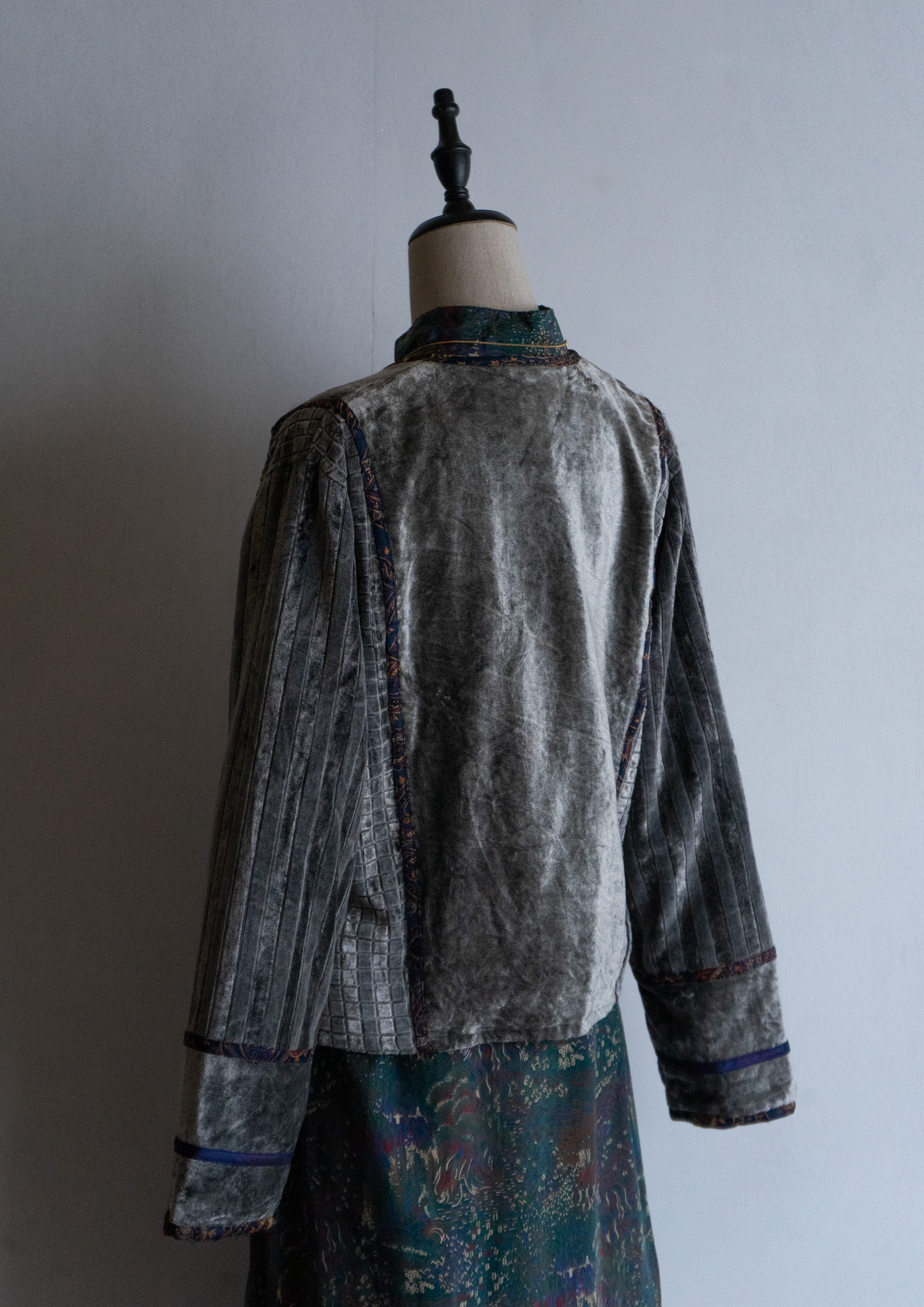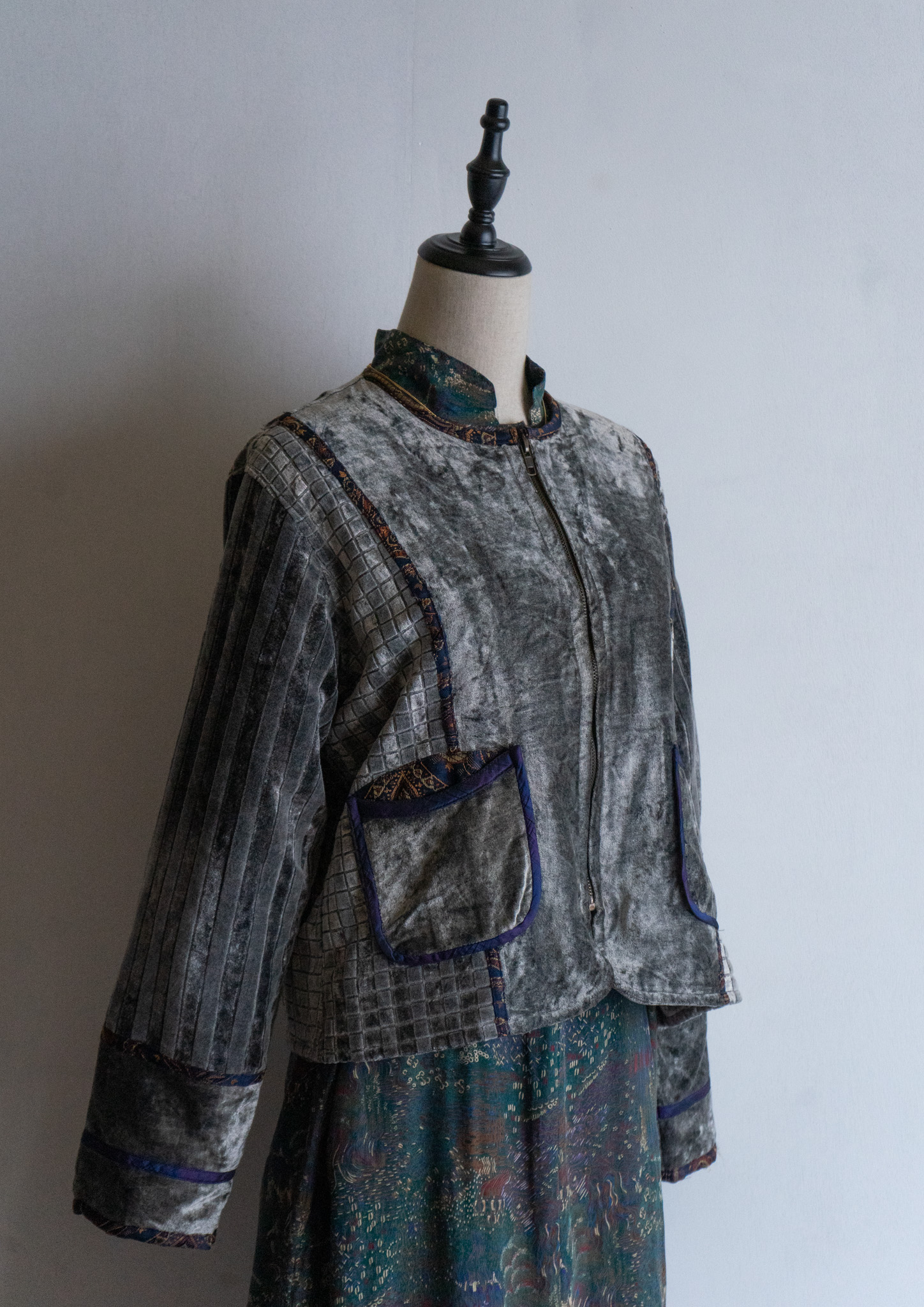 80's France Double Button × Double Pocket Design Olive Gray Napoleon Jacket