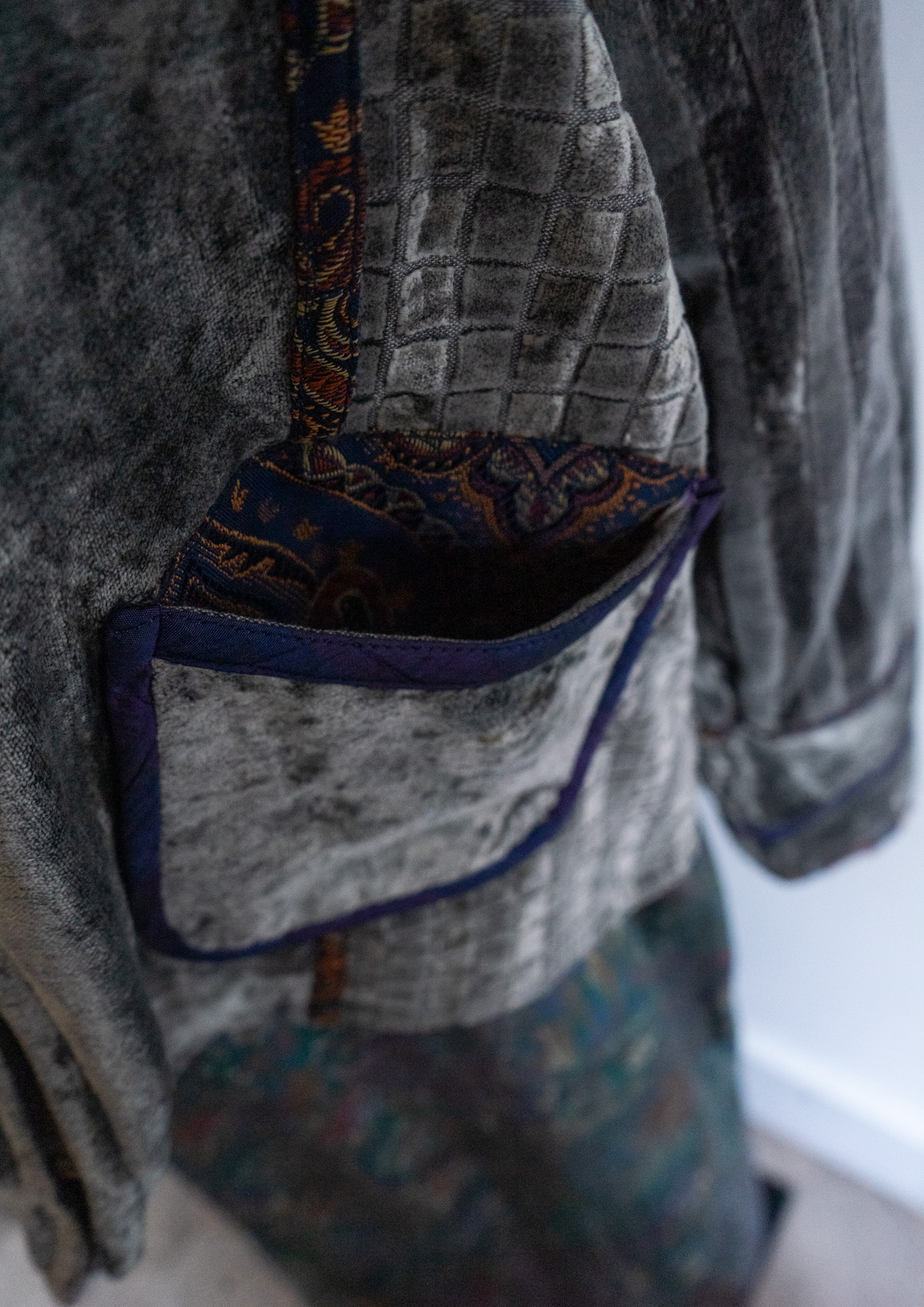 Leaf Embroidery × Double Pocket Design Point Corduroy Pattern Light Purple Boa Jacket