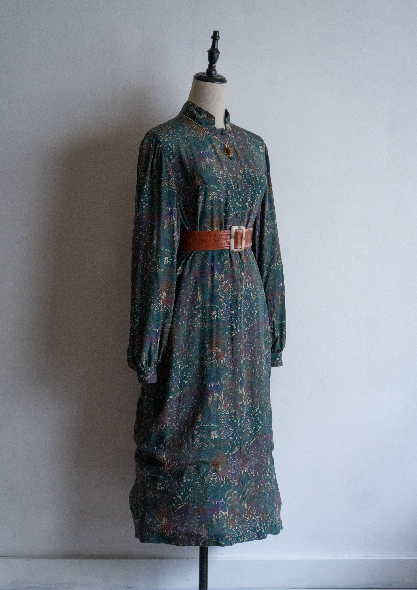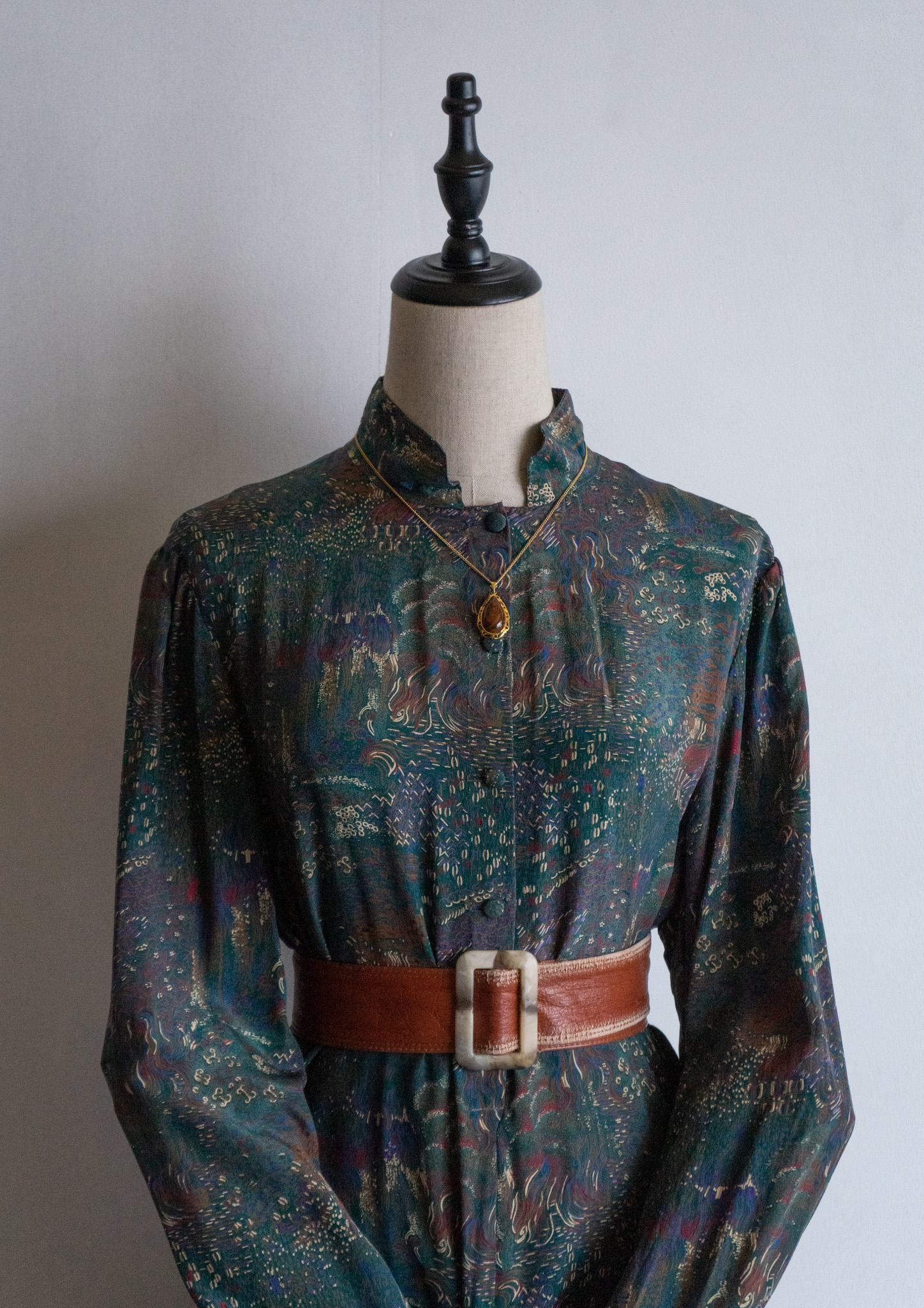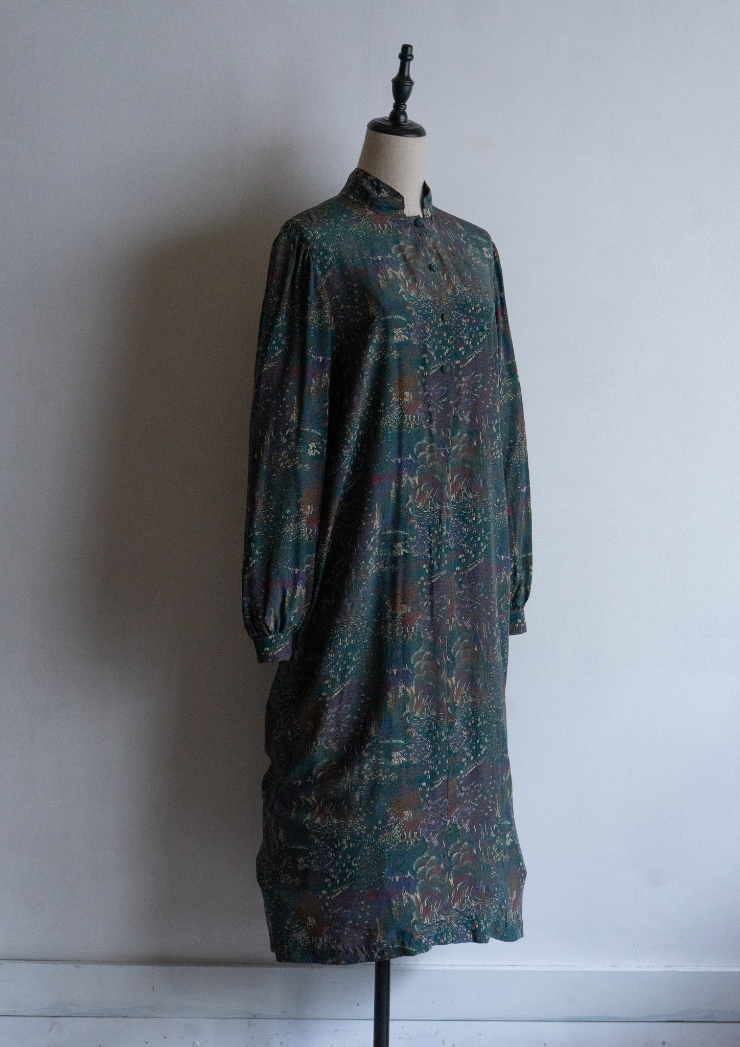 80's USA Houndstooth Pattern Velour Collar × Button Dress